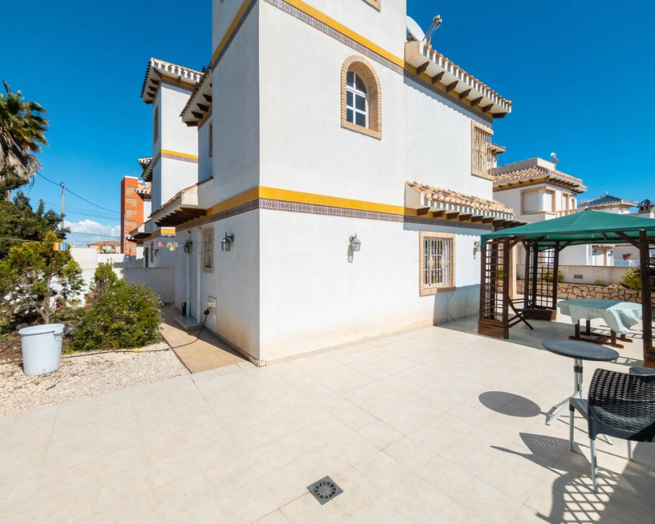 I present to you this wonderful detached villa in La Mata, one of the most sought-after areas of the Costa Blanca. It is located just 600m from La Mata beach, with beautiful open views of the Mediterranean Sea. The property offers a constructed area of 97 m2, distributed over two floors and a solarium on the third floor. It has a spacious furnished living room. A separate, fully furnished and equipped kitchen with appliances. It has 3 bedrooms, 2 bathrooms, and a bright terrace that brings plenty of natural light into the house. There is an 80m2 basement that could be converted into a habitable space. In addition, there is a separate enclosed garage of approximately 60m2 located in the basement. The property is being sold fully furnished, ready to move into. It has a well-maintained garden of approximately 225m2, perfect for outdoor leisure activities. Thanks to its south-facing orientation, the villa enjoys excellent natural light throughout the day. The property is located in a residential area, in a prime location with all amenities within easy reach: supermarkets, schools, shops, banks, and restaurants. Everything you need is just steps away. All the comforts to offer you an unparalleled quality of life in one of the most sought-after areas of the Costa Blanca. Don't wait any longer, come and see it!