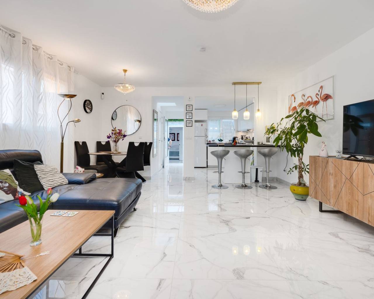 Magnificent home , just 350 m from Los Naufragos beach Superb home situated in one of the most peaceful and desirable areas of Torrevieja, just 350 meters from Los Naufragos beach. This property is perfect for use as a permanent residence, a holiday getaway, or as a tourist rental investment, as it features two separate entrances. Set in a tranquil environment surrounded by green spaces and parks, it is an ideal spot to enjoy the outdoors, nature, and the nearby sea. This semi-detached house is spread over two floors with a practical and comfortable layout. The fully renovated ground floor features a spacious living-dining area with an open-plan kitchen, one bedroom, a bathroom with a shower, and a covered porch leading to a private terrace—perfect for soaking up the Mediterranean climate. Upstairs, you will find three bedrooms (one double and two singles) and a second bathroom. The property is in excellent condition and includes a private garage, solar panels, and underfloor heating in the living room. Supermarkets, pharmacies, restaurants, public transport, and all necessary services are close by. The area is well connected to major roads, making it easy to reach other towns such as Alicante and Murcia.