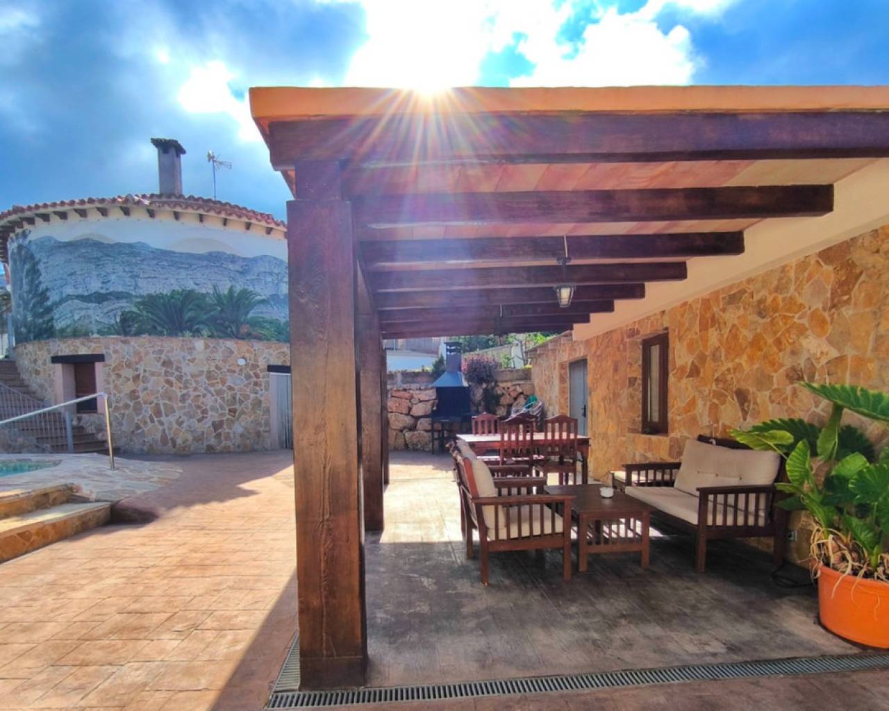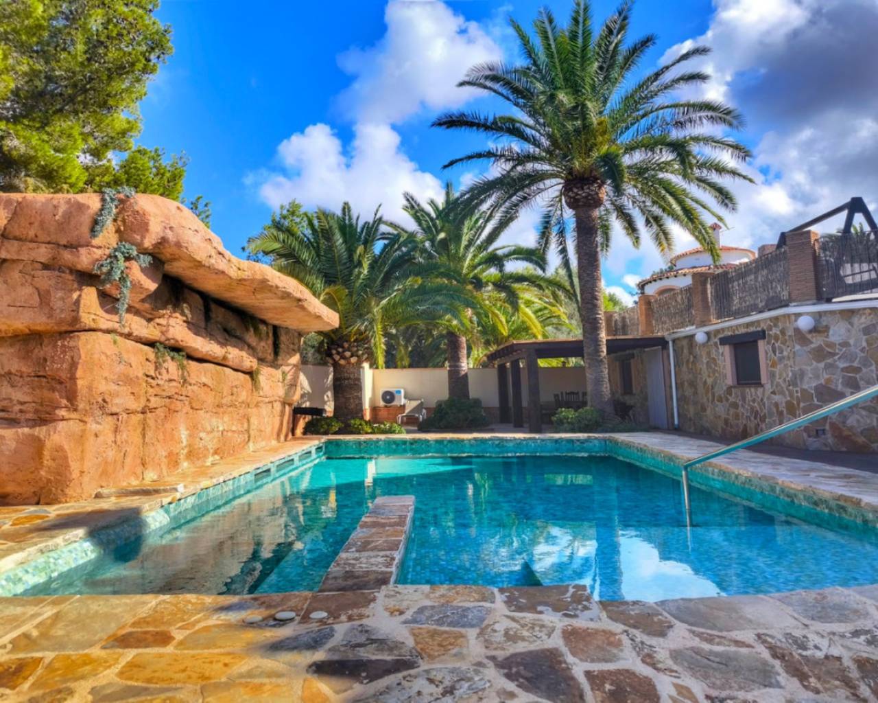 Unique opportunity for investors in the Montgó, Dénia! Just 5 minutes from the center of Dénia and located in a sunny area at the foot of the Montgó, is this magnificent villa that offers enormous potential for both private use and investment. This property is divided into 3 independent homes, making it an excellent choice for those looking for immediate profitability. The main house, located at the top of the plot, has its own private pool, barbecue area, a living room with kitchenette, 2 large bedrooms and 2 bathrooms. In addition, it has a circular terrace with arches that can be integrated into the living room, creating an even more spacious and bright space. On the lower part of the plot, there are two additional apartments, each with its own kitchenette, living room, bedroom and bathroom. Both share a spectacular outdoor area with a beach-style pool, natural waterfall, jacuzzi, waterbed and solarium. In addition, each apartment has a covered Mediterranean-style chill out area, ideal for relaxing and enjoying the surroundings. The property also offers the possibility to extend with a gym, spa or leisure area in an available space. Equipped with double glazing, air conditioning and central heating, this villa has everything to ensure maximum comfort for future owners or guests. In addition, this property has a tourist license. A profitable and safe investment in one of the most desirable areas of Dénia. Don't miss this opportunity! Contact us today to arrange a viewing.