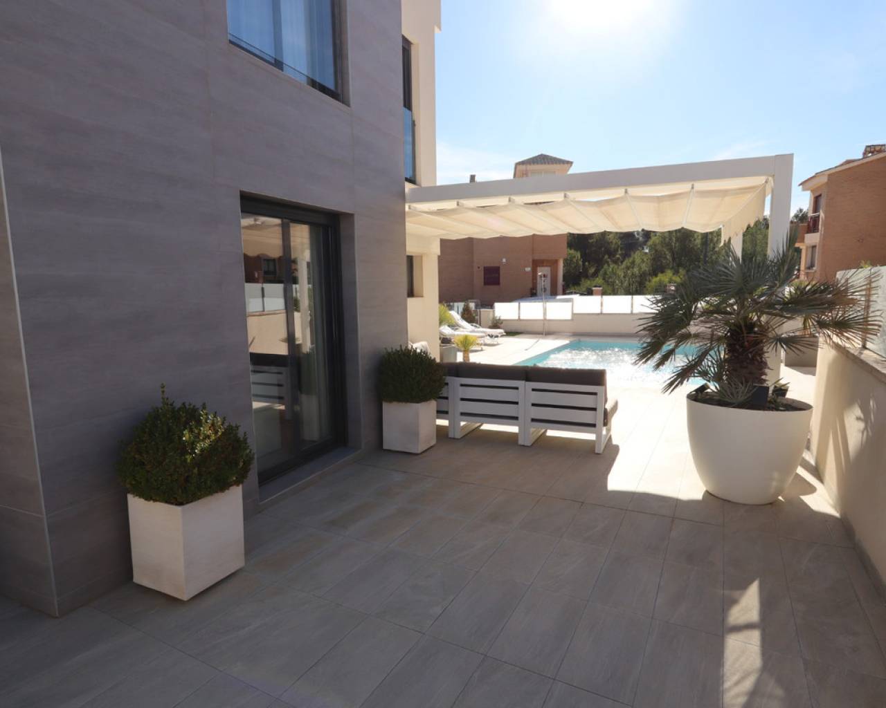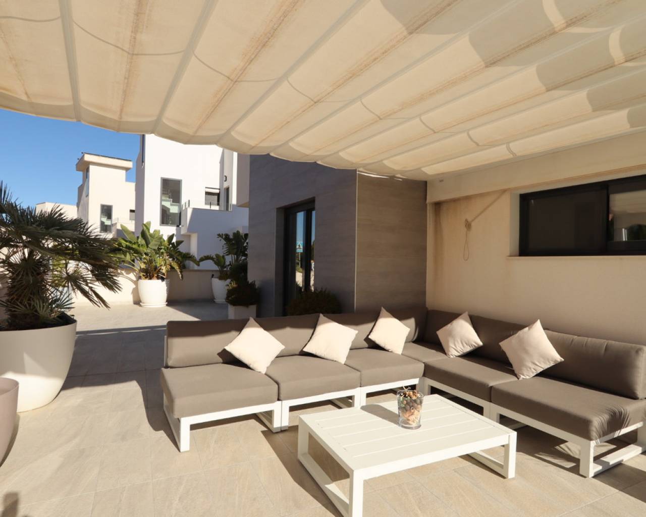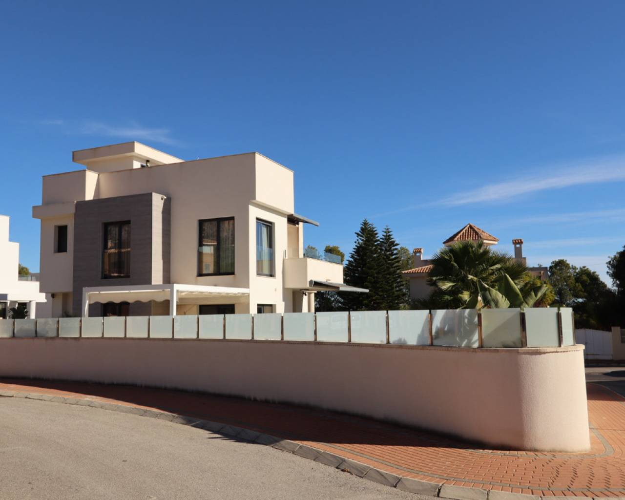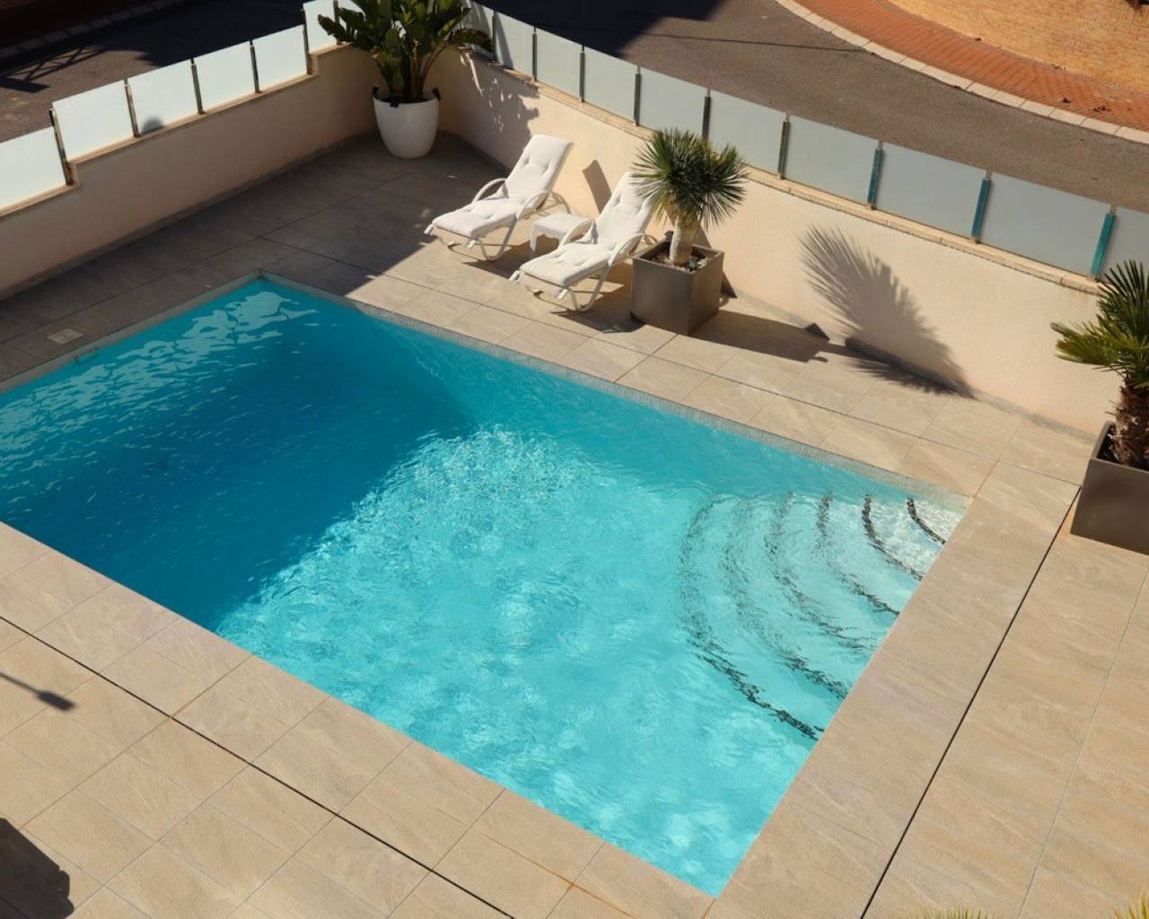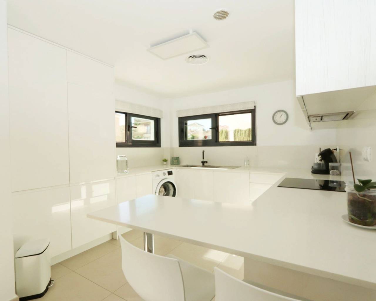 Discover this sophisticated contemporary villa located in the prestigious Coloma neighborhood of La Nucía. Built in 2019 and facing south, it offers a modern lifestyle surrounded by tranquility, with spectacular open views of the sea, mountains, and city. The property features 205 m² of living space and 233 m² built on a plot of 390 m². It has 3 spacious bedrooms and 3 elegant bathrooms, making it an ideal home for families or those seeking a modern residence with large, bright spaces. The heart of the house is its open-plan living room, connected to a fully equipped kitchen with Siemens and Bosch appliances. Large windows and terraces provide a fantastic connection to the outdoors, where a lovely garden and a private pool create the perfect atmosphere for relaxation and enjoying the Mediterranean climate. The home offers exceptional comfort year-round thanks to centralized air conditioning, shutters, double glazing, and security alarm. Additionally, it has pre-installation for a jacuzzi and outdoor kitchen, as well as the possibility of adding solar panels. One of the highlights is its large basement, a versatile space ideal for a gym, cinema room, or even an independent studio, as it can be created with a separate entrance. It also includes laundry room, pantry, walk-in closet, storage room, and private parking. Located in one of the most sought-after areas of La Nucía, the villa combines privacy and convenience. Shopping centers, schools, restaurants, and leisure spaces are just a few minutes away, and the beach is only 6.5 km away. Alicante Airport is approximately 60 km away. A modern, elegant property ready to enjoy: Mediterranean luxury at its finest. Would you like to visit? We are at your disposal to arrange a visit and show you every detail.