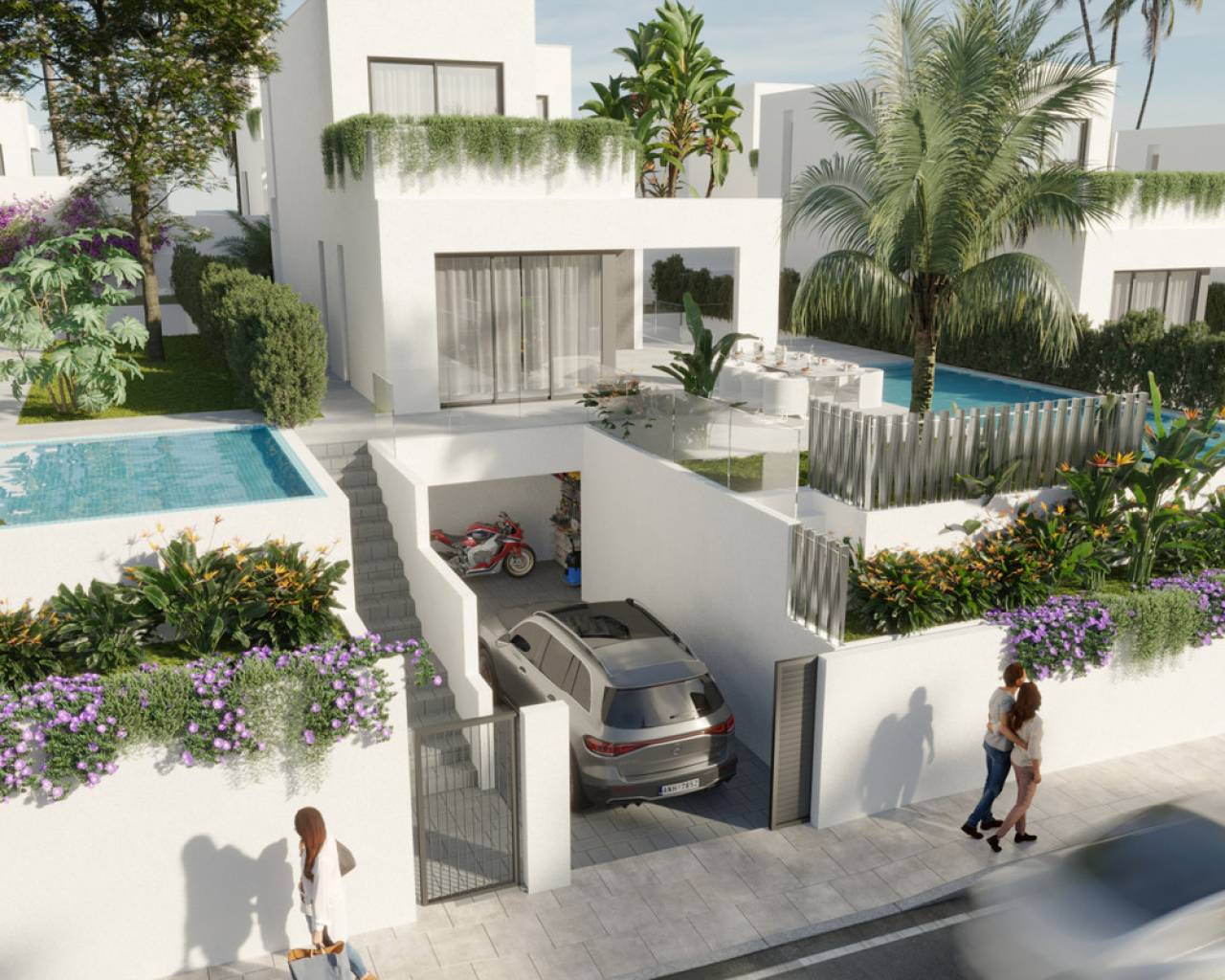 This is a new development of villas on landscaped plots with swimming pool. Its spacious homes have a modern and minimalist design. All have a closed garage. Life here combines luxury with a sense of well-being. Created for those seeking both a unique experience and a good investment.