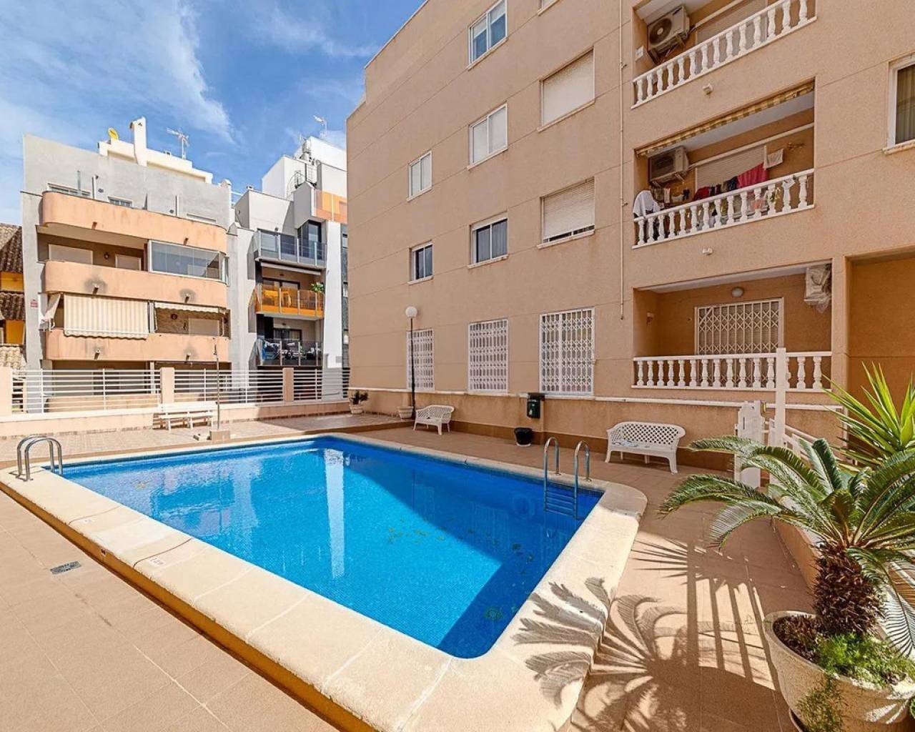 Unique opportunity!Live the dream in this home in Torrevieja, a place surrounded by amenities where everything is just minutes away.This incredible home has 2 spacious bedrooms and a bathroom, designed for your comfort.In addition, you'll enjoy an open-plan kitchen with a window and a beautiful terrace.The home also has communal areas and a beautiful communal pool where you can sunbathe in complete peace, all just a step away from Playa del Cura.Don't miss this opportunity! Contact us to discover how this exciting apartment could become your new home.Thinking about selling your property and acquiring this dream apartment? Our agency offers you a free valuation, with more than 20 years of experience in the sector and the most up-to-date sales data. We will help you achieve a quick and advantageous sale so you can start enjoying the life you've always wanted by the sea.Contact us now and take the first step toward your new life on the Costa Blanca!