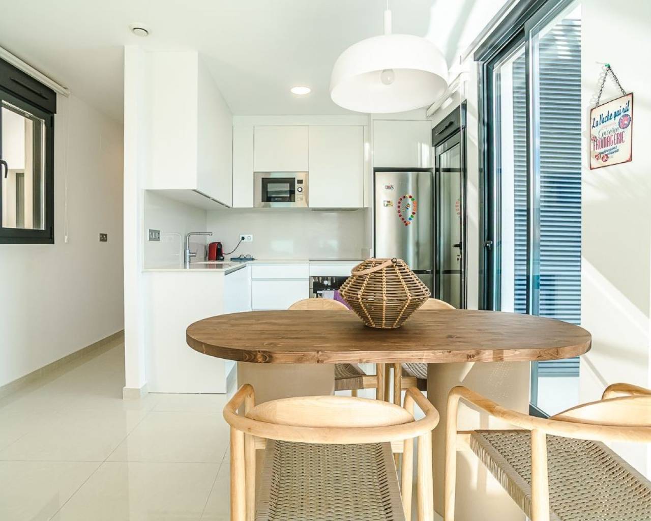 Modern 1-Bedroom Apartment with Terraces & Private Solarium This stylish 1-bedroom, 1-bathroom apartment is in excellent condition and located in a modern building constructed in 2022. Sold fully furnished with high-quality furniture, the property is ready to move into immediately. The bedroom features a built-in wardrobe and a bed with practical under-bed storage. The bright living room includes a comfortable sofa bed, ideal for guests or additional sleeping capacity. The fully equipped open-plan kitchen connects seamlessly to the living area, creating a spacious and functional layout. Adjacent to the kitchen is a separate utility room housing the water heater and offering extra storage space. Thanks to its excellent south-facing orientation, the living area enjoys abundant natural light throughout the day, creating a warm and comfortable atmosphere. The standout features of this property are the two terraces and the fully furnished private solarium—perfect for enjoying outdoor living and the Mediterranean lifestyle Spain is known for. The apartment also includes a private parking space, and the residence offers a communal swimming pool. In addition to being ideal for year-round living, this property represents an excellent rental investment thanks to its prime location—only 700 meters from the beaches of Playa del Cura and Cala de la Palangre. All amenities are within walking distance, including shops, restaurants, supermarkets, Torrevieja city centre, and the main bus station, making it highly attractive for both holiday and long-term rentals. Contact us today to arrange a viewing or request more information—properties in this location and condition are in high demand.