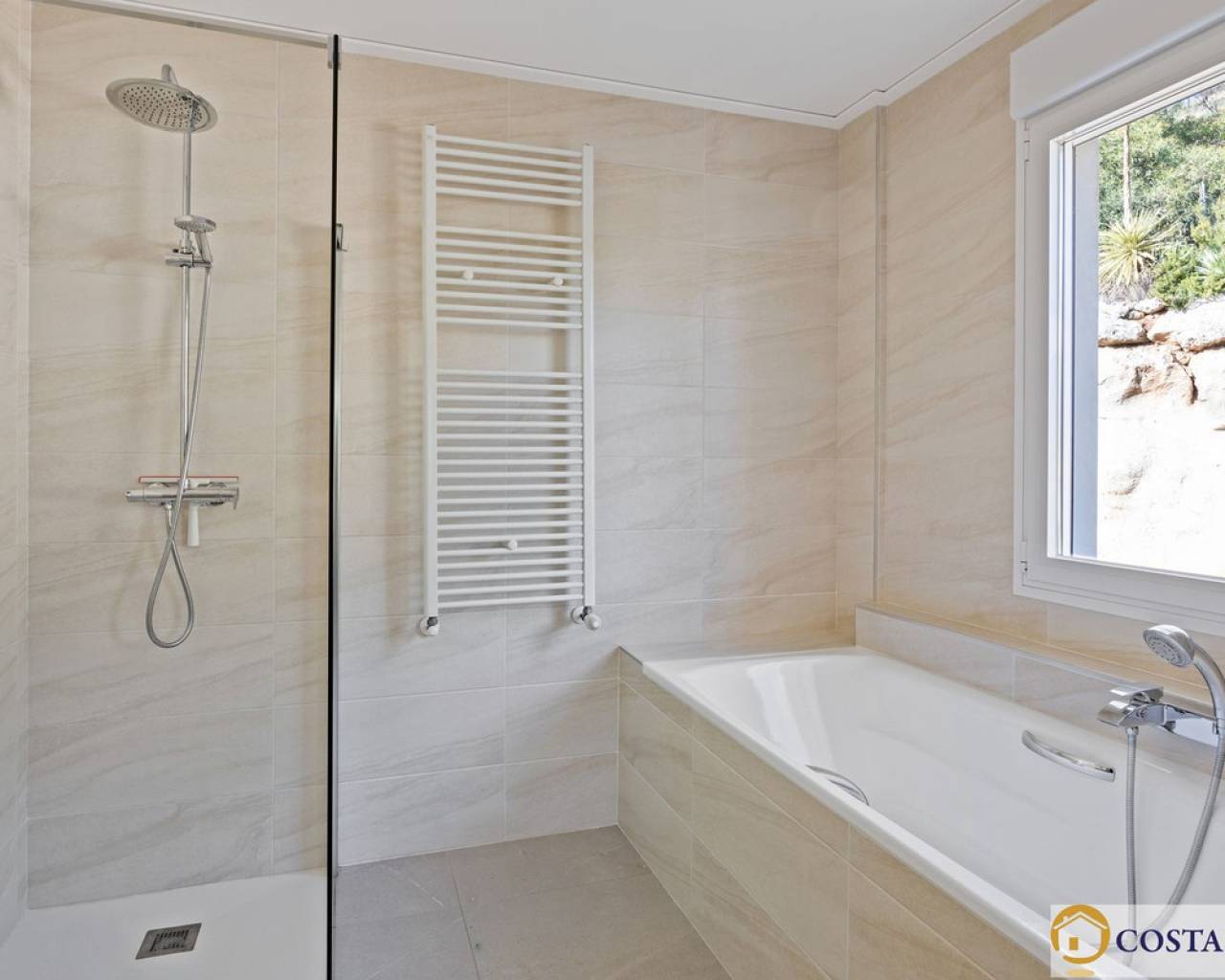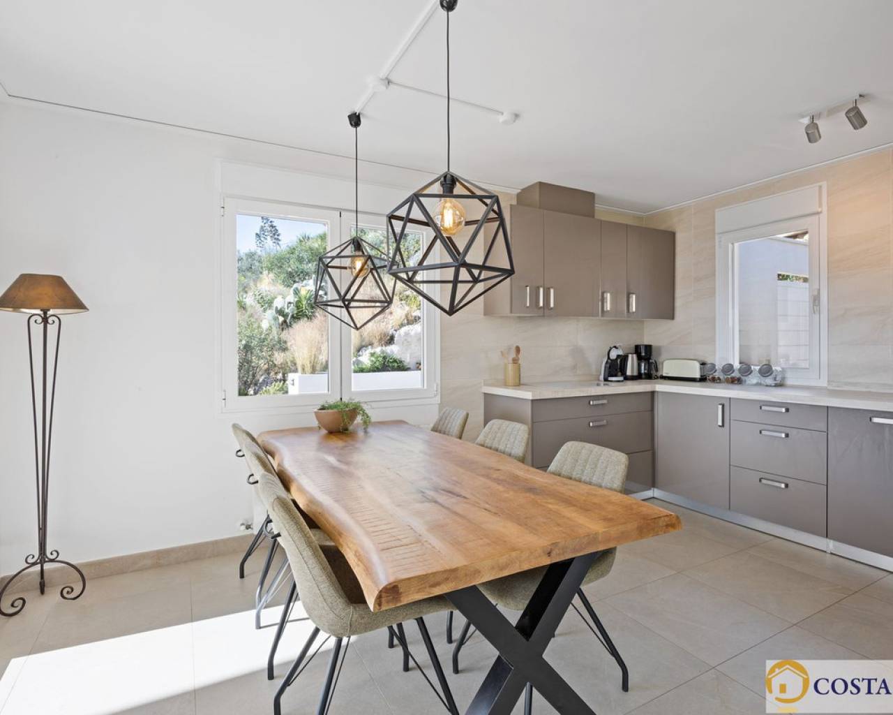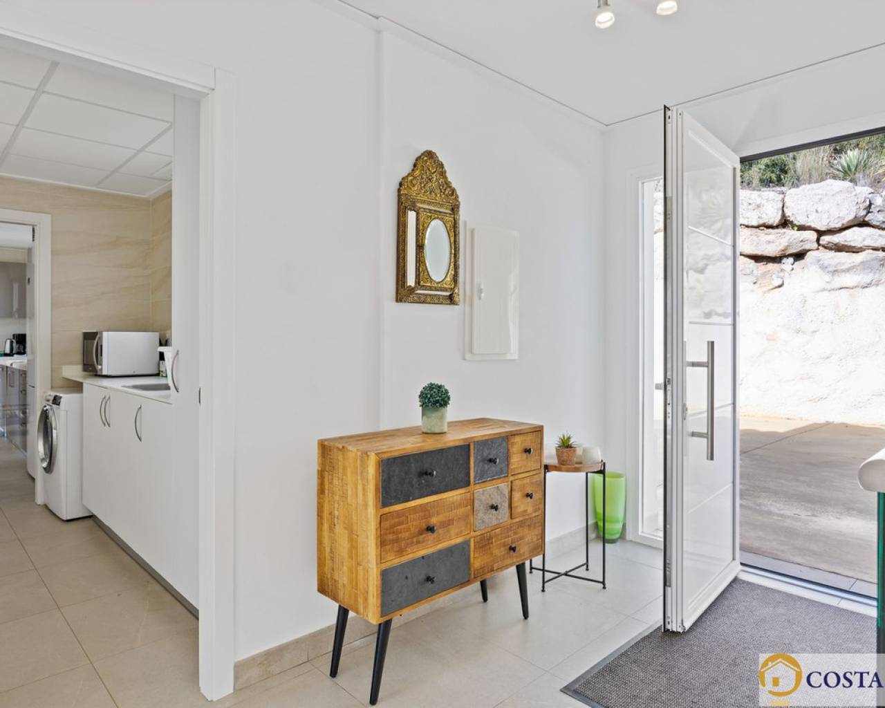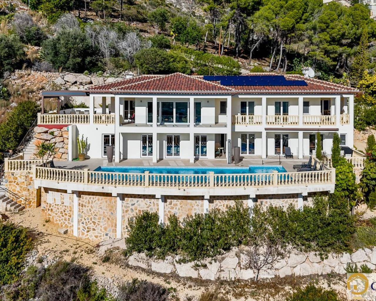 Unique, spacious villa with panoramic views in Alcalalí This beautiful, modern and elegant villa is located on a sunny, south-facing hill with a breathtaking panoramic view over the valley. Combining timeless luxury with exceptional space and light, the property is located a short walk from the amenities of the village. The beautiful beaches of Calpe can be reached in just 20 minutes by car. PLOT The asking price includes two plots: the main plot of 1,468 m² on which the villa stands, and an adjacent building plot of 844 m² where an additional house can be realized. In total, more than 2,300m2. For buyers who are only interested in the plot with the existing villa, we are open to consultation. LAYOUT - MAIN FLOOR Through an electric gate you reach spacious, secure parking and the stately entrance. The generous reception hall leads to an impressive open plan living and dining room of approx. 80 m² with large windows and direct access to a sun terrace. The luxurious, fully equipped kitchen connects to an attractive, covered naya/chill-out patio for al fresco dining. Adjacent is a practical utility room. On this floor there are also: a large master suite with fitted wardrobes, hot/cold air conditioning, private balcony and a spacious en-suite bathroom with walk-in shower; two additional bedroom suites with fitted wardrobes, hot/cold air conditioning and access to sun terraces; a separate guest toilet. POOL LEVEL - GUEST APARTMENT An internal lift or staircase connects to the pool level where there is a fully self-contained apartment. Here you will find an open plan living/dining kitchen of approx. 50 m² with three double patio doors leading out to the pool terrace. Furthermore: a spacious bedroom suite with en-suite shower, fitted wardrobes and direct access to the pool terrace; three double bedrooms, also with fitted wardrobes, hot/cold air conditioning and patio doors; a large family bathroom with walk-in shower, a guest toilet, utility room and a very spacious storage room. OUTDOOR LIVING The outside area is nothing short of spectacular: an 15 x 6.5 metre swimming pool, approximately 200 m² of sun terraces, an outdoor shower and beautifully landscaped, low-maintenance Mediterranean gardens—all designed to maximise the sun, privacy and views. COMFORT Electric underfloor heating via heat pump Full hot/cold air conditioning in all areas Electrically operated roller shutters Spacious, secure parking INVESTMENT The property has a tourist license, which can be renewed in the name of the new owner and is therefore excellent as a spacious family villa and as a high-quality investment opportunity. ALCALALI Alcalalí is a charming and authentic Spanish village in the beloved Jalon Valley (Marina Alta), known for its peace, nature and warm village atmosphere. In the historic center you will find cozy squares, local restaurants, cafes, a bakery, small shops and various basic amenities. The village is also known for its walking and cycling routes, the almond blossom in spring and the strong sense of community with both Spanish and international residents. A major plus of this villa is its exceptional location within walking distance of the village center. That means: walking to the bakery or a coffee in the square in the morning, dining in a local restaurant in the evening – without needing the car – while enjoying complete peace, privacy and spectacular views at home. This combination of free living with panorama, walking distance to amenities and a short drive to the beaches of Calpe makes the house particularly attractive for both permanent residence and (luxury) rental.
