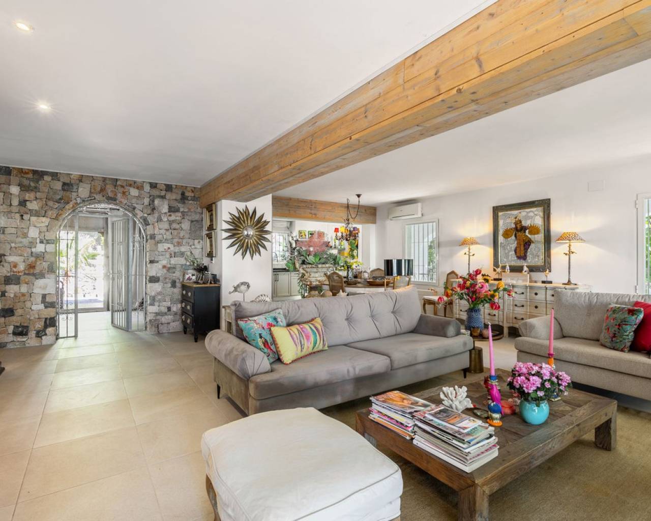 Stunning Villa with Panoramic Sea Views in La Galera de las Palmeras, Altea Located in the highly sought-after residential neighbourhood of La Galera de las Palmeras in Altea, this exceptional villa offers complete privacy and breathtaking, unobstructed views over the Mediterranean Sea. Set on a generous plot surrounded by nature and tranquillity, this property embodies the essence of luxury coastal living. Layout & Living Spaces: Main floor A spacious living room with an open-plan kitchen forms the heart of the villa. Large windows frame the magnificent sea views and allow natural light to fill the interior. Sliding doors give direct access to the covered terrace — the perfect setting for outdoor dining and long summer evenings. Outstanding outdoor living Adjacent to the covered terrace is a large open terrace with a fully equipped luxury outdoor kitchen, ideal for lounging and entertaining. The showpiece of the property is the impressive 20-metre heated pool, equipped with a heat pump, allowing you to swim comfortably throughout the year. Spectacular rooftop terrace The rooftop terrace is extremely private, partially covered, and offers breathtaking panoramic views of the sea and coastline. Multiple seating and lounge areas make this space one of the most unique and enjoyable parts of the home — a private sanctuary for complete relaxation. Guest accommodation — ideal for family, visitors or long-stay guests The lower level hosts the independent guest accommodation, featuring: spacious living room separate kitchen two generous bedrooms two bathrooms direct access to the landscaped garden and private terraces This setup allows guests to enjoy full comfort, independence and privacy. Features & Comfort: Electric entrance gate Stylish driveway and carport Alarm system Gas central heating 20 solar panels Pool heat pump — year-round swimming The Neighbourhood — secure, desirable and international La Galera de las Palmeras is renowned for its peaceful atmosphere, wide plots, privacy and high-quality residential environment. Many residents live here permanently or semi-permanently and come from all around the world. An active community association organises regular social events, creating a warm and welcoming social environment. Location & Distances: Altea town centre: approx. 5 km (about 8–10 minutes by car) Sea / Beaches (Altea & Playa de la Olla): just a few minutes' drive Alicante Airport: approx. 65 km — around 45 minutes by car The villa combines tranquillity and privacy with excellent accessibility.
