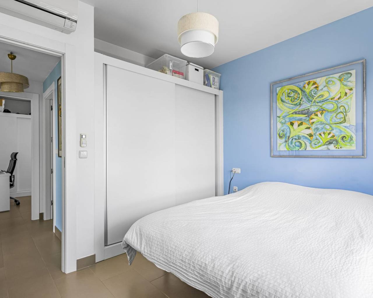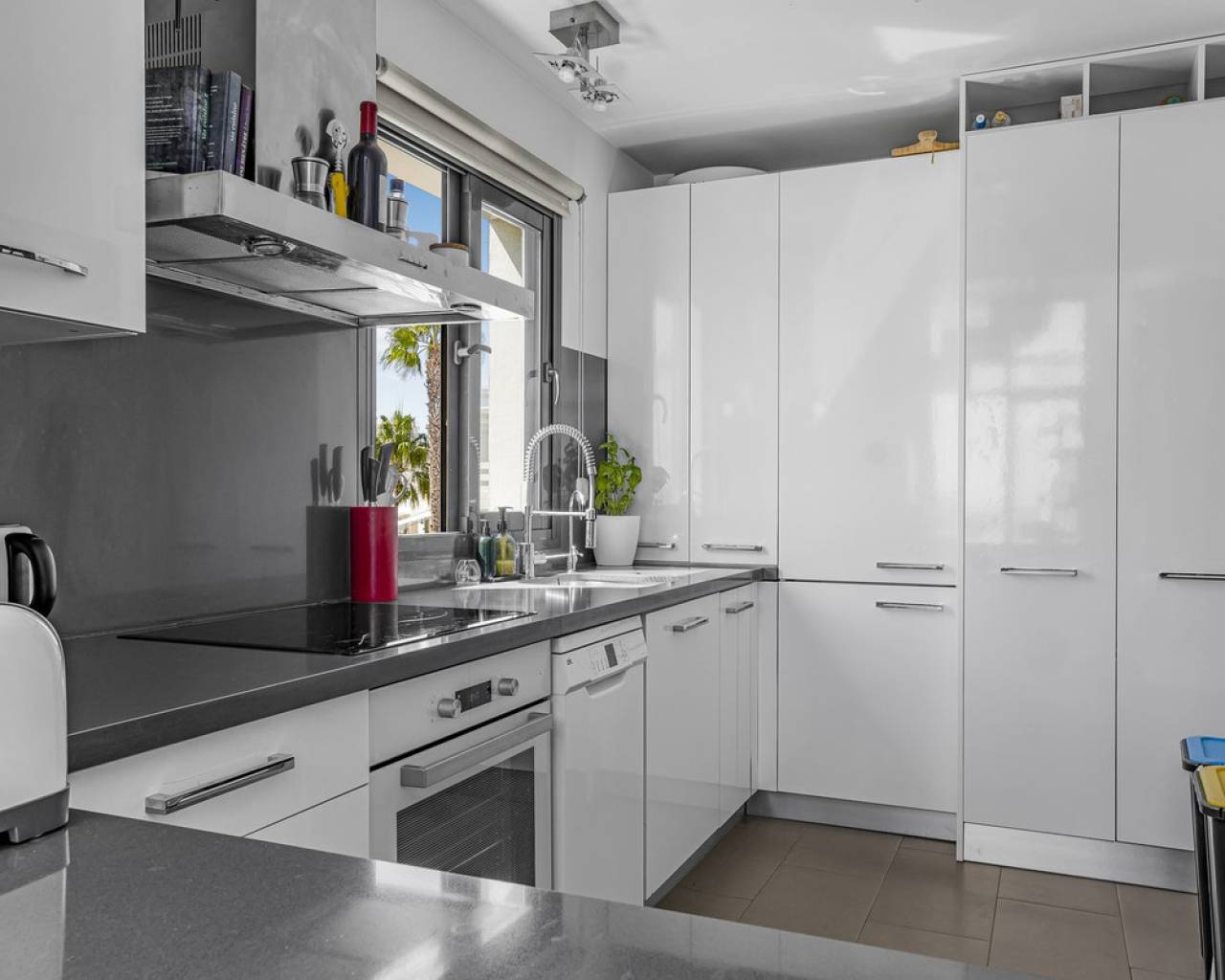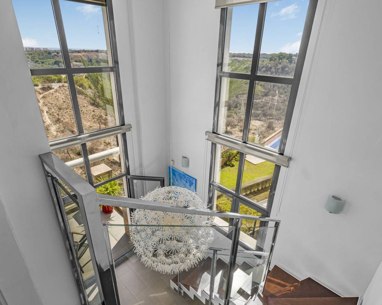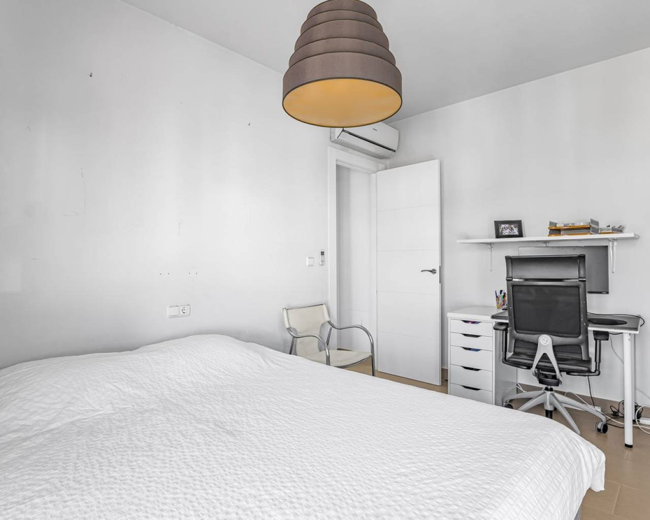 This home is situated on the first floor of the sought-after Danubio 1 complex in Las Ramblas and offers a total living space of 97.3 m² spread over two levels. On the main floor you are welcomed by a bright and generous living area with direct access to a charming terrace of almost 12 m². The floor also features a fully equipped kitchen, two well-lit bedrooms and a bathroom. An internal staircase leads to the upper level, which can easily be used as a third bedroom, home office or hobby room. From this level you access the impressive private roof terrace of 79 m², offering open views, sunshine throughout the day and ample space for relaxation, social gatherings and enjoyable barbecue evenings. The property is accessed via a shared entrance with staircases leading to the central part of the floor, ensuring both privacy and security. From the home you can enjoy beautiful views over green surroundings and the golf course, with the Mediterranean Sea visible on the horizon. The area is peaceful and scenic, with green spaces, walking paths and stunning views, while still being just minutes from the beaches of Campoamor and Cabo Roig. The popular La Zenia Boulevard shopping center, restaurants, services and good transport connections are also nearby. This is a rare opportunity to purchase a property in one of the most desirable areas of Orihuela Costa, ideal as a permanent home, holiday residence or investment.