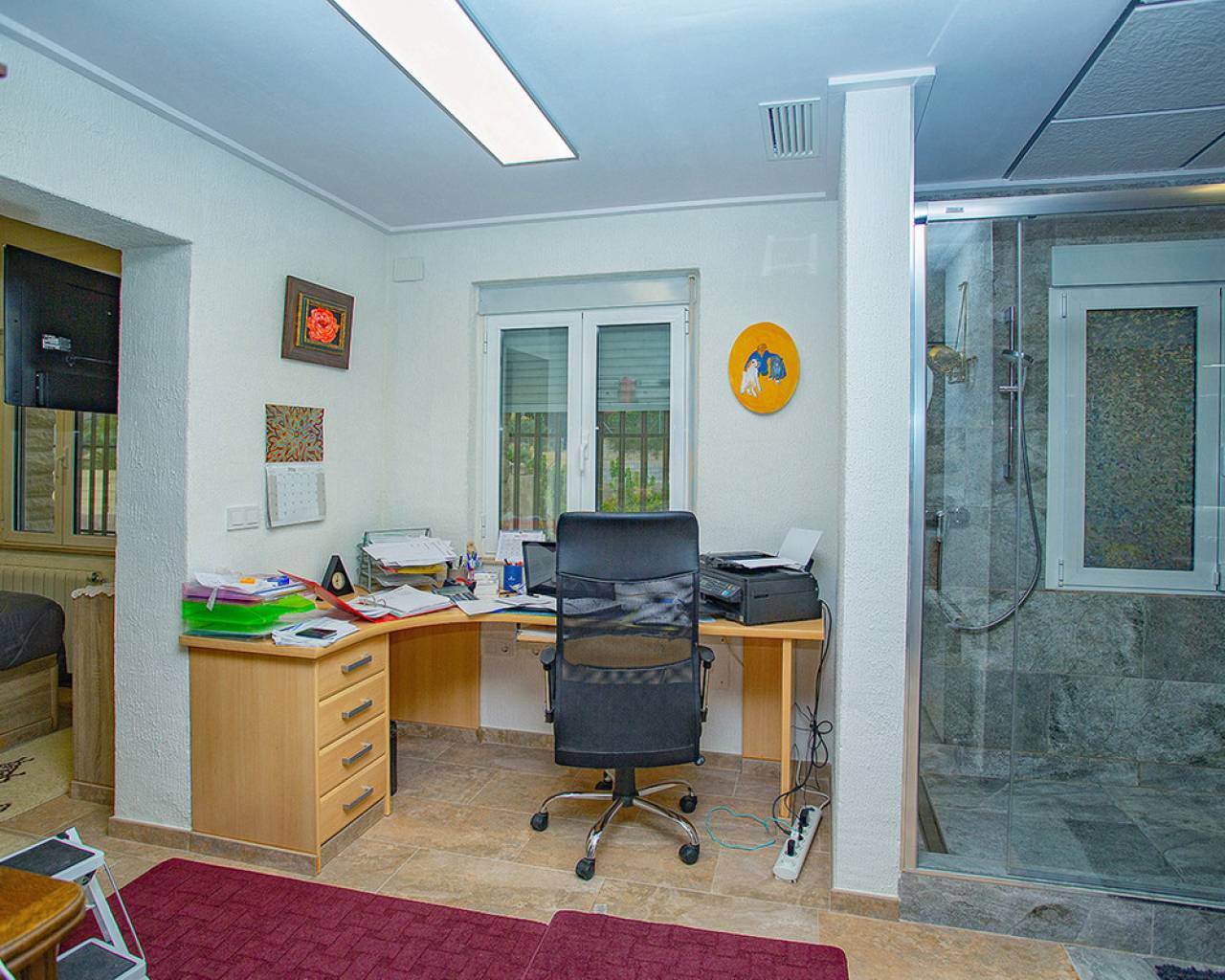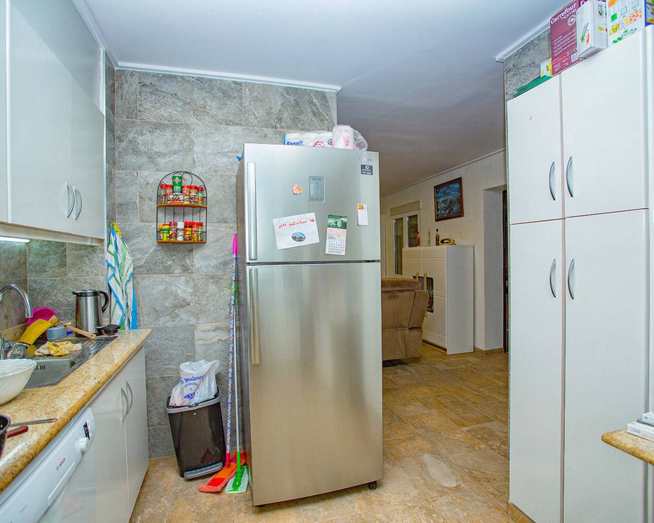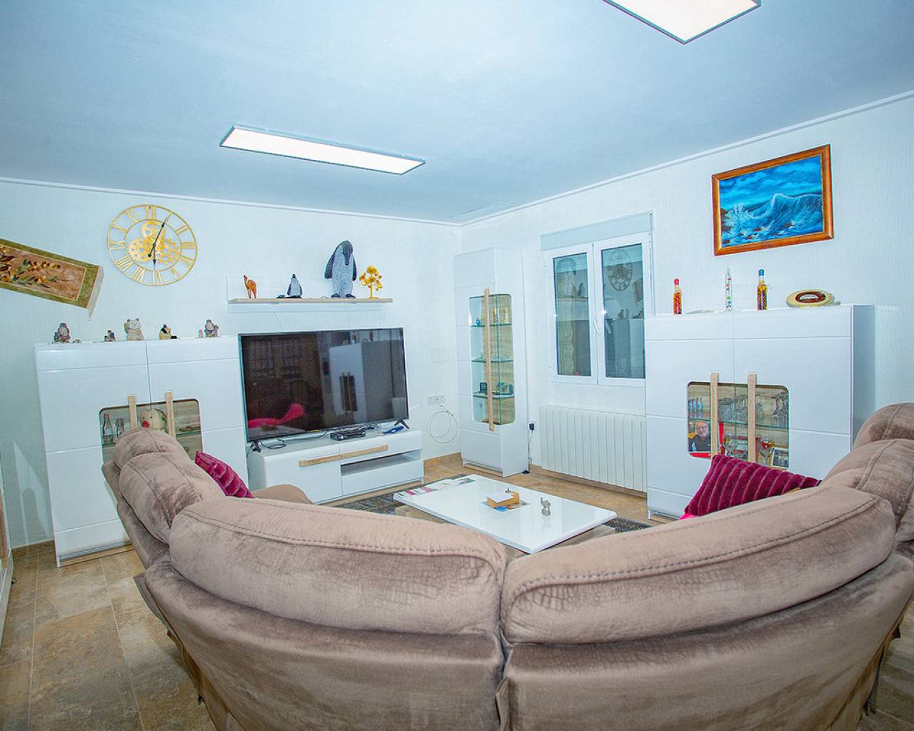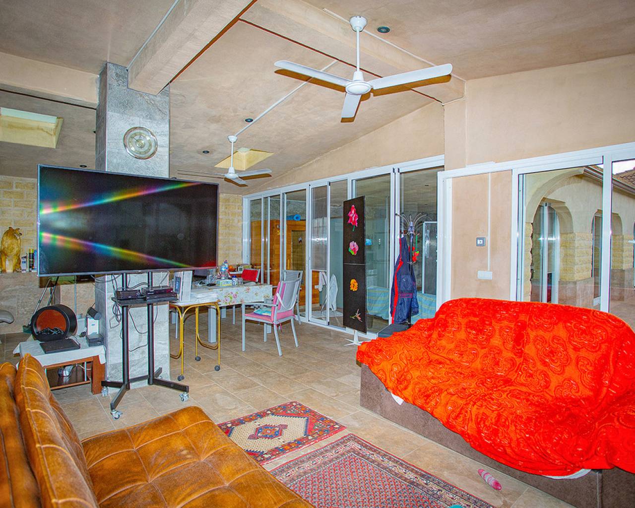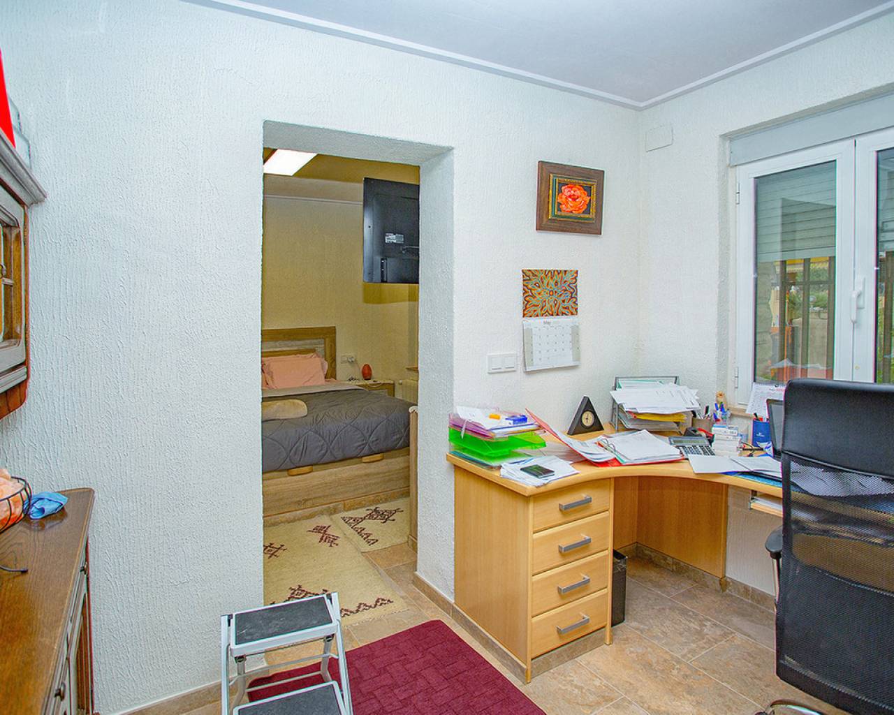 We are very proud to can present you this unique country house recently renovated to a high standard level to live all year round without any missing amenities also during the winter months just a 15 min drive to the Alicante airport and just a 5 minutes drive to the beautiful city of Elche which is famous for its UNESCO world heritage "Largest palm grove in Europe". Only two years ago the complete property which consists of a main building, a guest house, an indoor pool area and a garage was extensively renovated, including all electricical installation and the water pipes. The house was isolated with a layer of EPS which was covered with an additional layer of bricks. Also a central heating system with the latest heat pump technology was installed throughout the complete building. Not to forget to mention the large covered and glassed former terrace which serves now as an extension of the main building and goes around almost half of the house fronts. Due to its massive roof structure and the installed heating system it could also be converted in any additional separate rooms.  The indoor pool which can be accessed both from the guest house and from the main building with its large southwest facing glass front is heated also via its own heating pump. In the pool area can also be found a shower, a toilet and an infrared sauna. Beside the few steps up the entrace of the house it can be easily accessed also via a ramp. A central air conditioning system is pre-installed in the main building, which just need to be connected. The guest house it is already equipped with its own air conditioning. What it makes that house even more unique and which gives you a more spacious feeling is that there are no doors built inside the main building - it is indeed a "must-see" and "must-feel" house. You will definitely note that the owner thought on every little and technical detail by doing that renovation. Main building: You enter the 234 m2 main builing via the porche in the living area. On the left hand side you will find an eating area, a kitchen area and on the opposite side you enter the office area from where you get into the sleeping room and a bathroom area with a huge shower.  Currently there is only one sleeping room in the main building. But e.g. the eating room could be transformed back into one additional sleeping room (as it was before the renovation) or you could open a wall and extend it to the newly created additional living area. Guest house: You enter it via the open living room and its kitchen. There is one sleeping room and a bathroom also with a large shower installed. The air conditioned independetn flat measures 61m2 in total. The external large garage with 70 m2 provides space for 3 cars. On the left hand side there is a separated storage and workshop room. In the centre of the all walled and private plot of 1463 m2 is a small garden and a small house for dogs. On the other corner of the plot is a small open building which could be used as an outside kitchen and barbecue area. On the left hand side of the entrance to the plot is currently a small cactus garden. That means that the complete plot and its garden is very easy to maintain. The house also do have an alarm system and on the different corners on the plot are installed lamps with motion detectors. And,if you do not want to take the car, a bus stop is just a few meters away to get easily e.g. to Elche. The sum it up: You will find with that property almost every comfort which you might already have and which you do not want to miss in your future home on the Costa Blanca. If you have any questions in regards to that property or to any other house on our website, please don't hesitate to contact us.