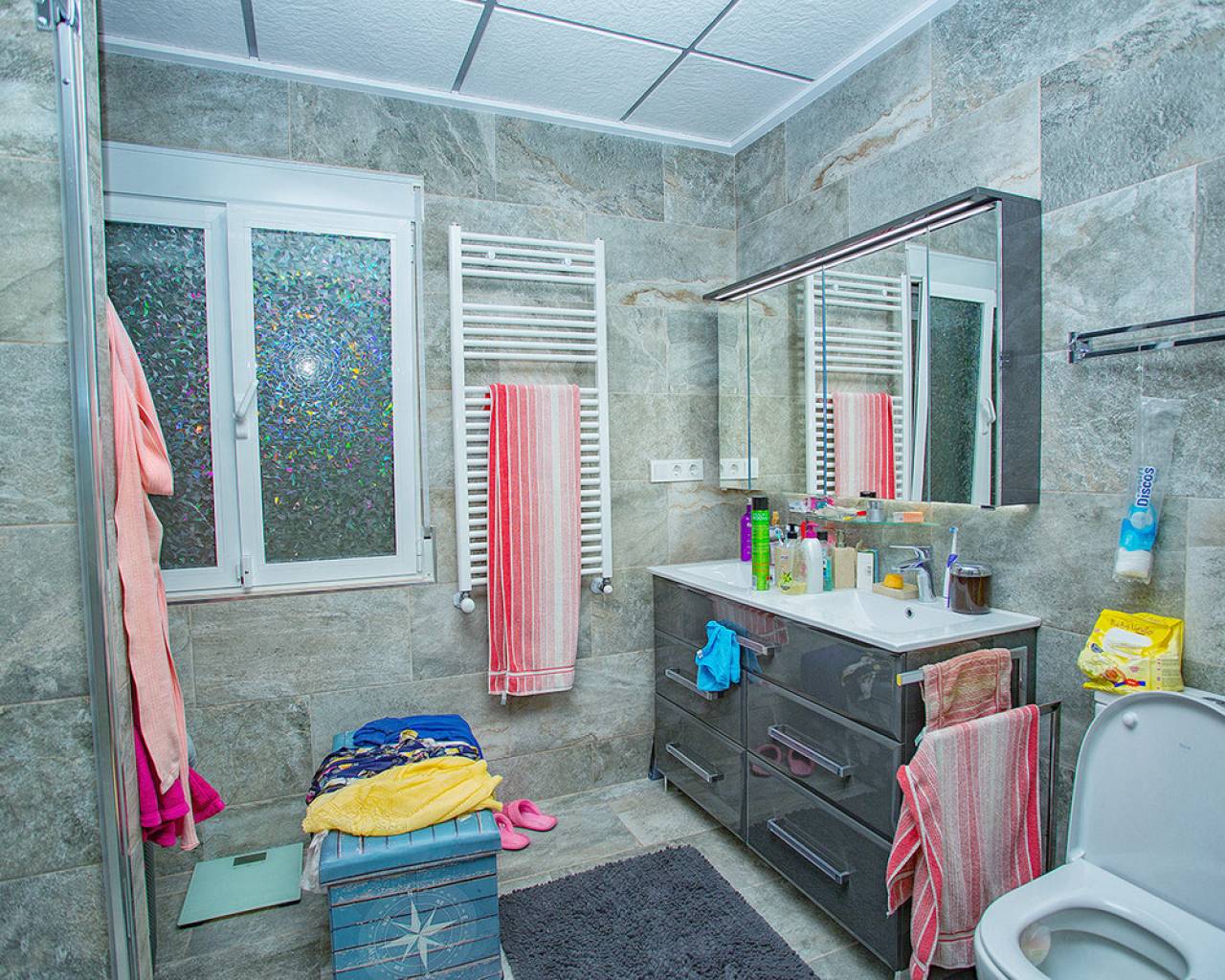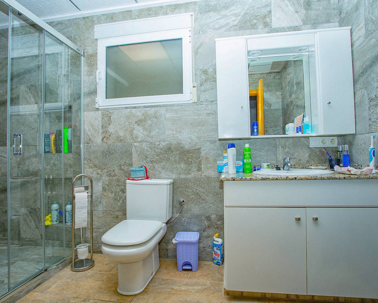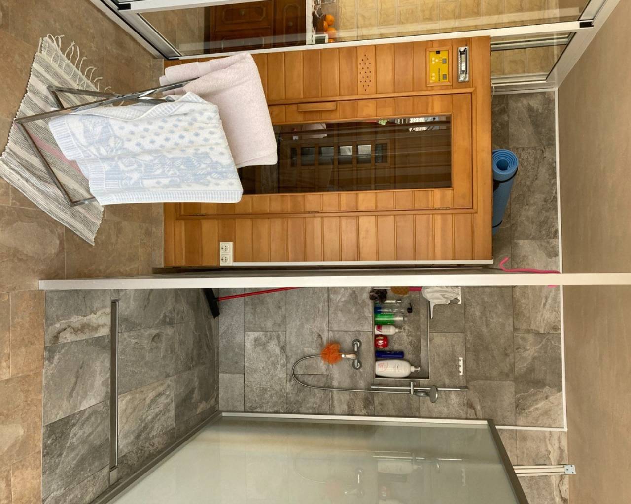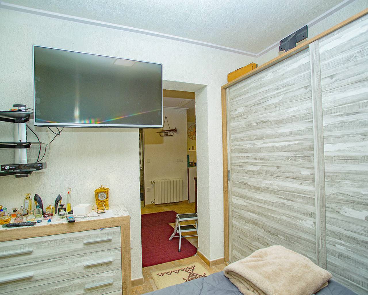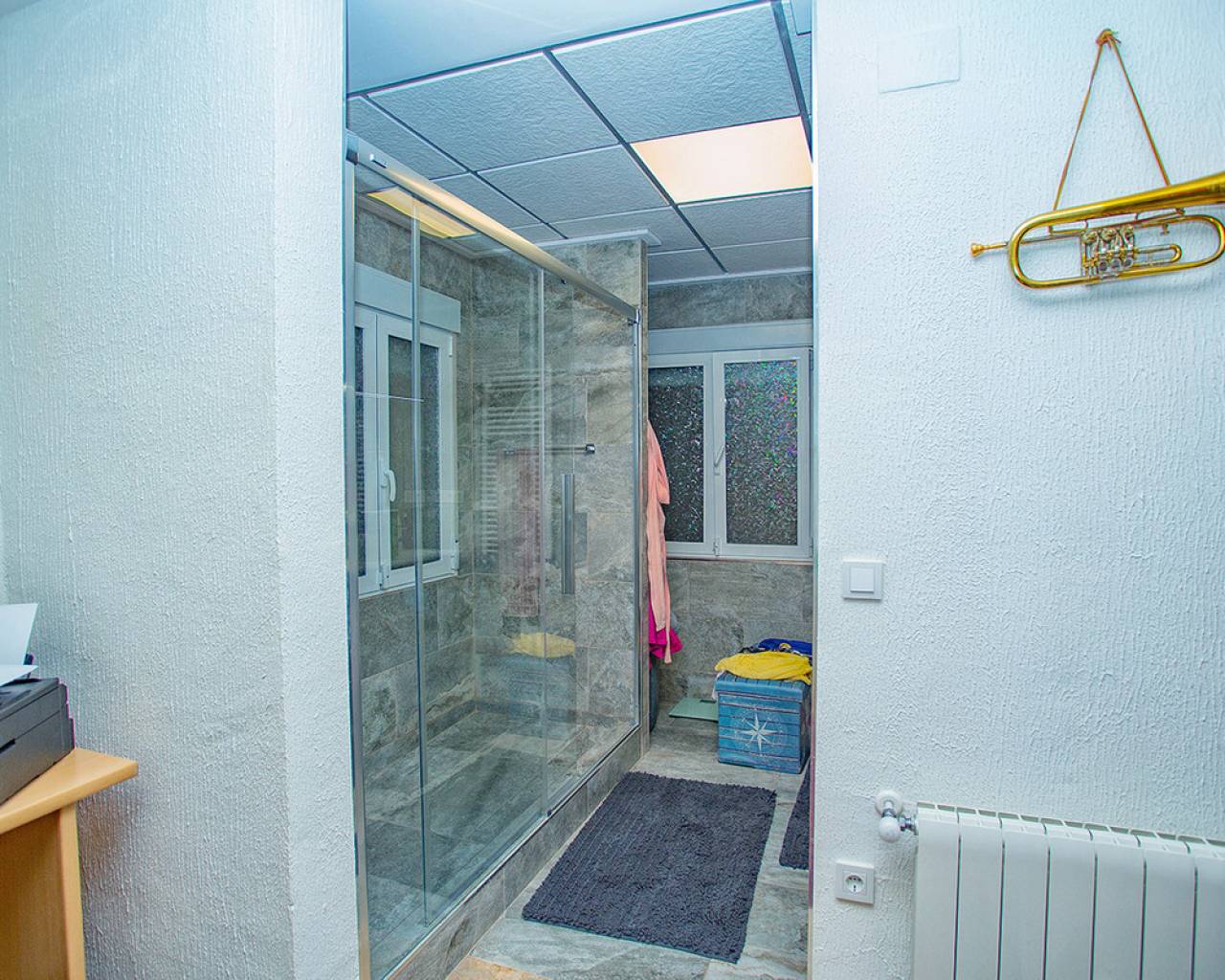 We are very proud to can present you this unique country house recently renovated to a high standard level to live all year round without any missing amenities also during the winter months just a 15 min drive to the Alicante airport and just a 5 minutes drive to the beautiful city of Elche which is famous for its UNESCO world heritage "Largest palm grove in Europe". Only two years ago the complete property which consists of a main building, a guest house, an indoor pool area and a garage was extensively renovated, including all electricical installation and the water pipes. The house was isolated with a layer of EPS which was covered with an additional layer of bricks. Also a central heating system with the latest heat pump technology was installed throughout the complete building. Not to forget to mention the large covered and glassed former terrace which serves now as an extension of the main building and goes around almost half of the house fronts. Due to its massive roof structure and the installed heating system it could also be converted in any additional separate rooms.  The indoor pool which can be accessed both from the guest house and from the main building with its large southwest facing glass front is heated also via its own heating pump. In the pool area can also be found a shower, a toilet and an infrared sauna. Beside the few steps up the entrace of the house it can be easily accessed also via a ramp. A central air conditioning system is pre-installed in the main building, which just need to be connected. The guest house it is already equipped with its own air conditioning. What it makes that house even more unique and which gives you a more spacious feeling is that there are no doors built inside the main building - it is indeed a "must-see" and "must-feel" house. You will definitely note that the owner thought on every little and technical detail by doing that renovation. Main building: You enter the 234 m2 main builing via the porche in the living area. On the left hand side you will find an eating area, a kitchen area and on the opposite side you enter the office area from where you get into the sleeping room and a bathroom area with a huge shower.  Currently there is only one sleeping room in the main building. But e.g. the eating room could be transformed back into one additional sleeping room (as it was before the renovation) or you could open a wall and extend it to the newly created additional living area. Guest house: You enter it via the open living room and its kitchen. There is one sleeping room and a bathroom also with a large shower installed. The air conditioned independetn flat measures 61m2 in total. The external large garage with 70 m2 provides space for 3 cars. On the left hand side there is a separated storage and workshop room. In the centre of the all walled and private plot of 1463 m2 is a small garden and a small house for dogs. On the other corner of the plot is a small open building which could be used as an outside kitchen and barbecue area. On the left hand side of the entrance to the plot is currently a small cactus garden. That means that the complete plot and its garden is very easy to maintain. The house also do have an alarm system and on the different corners on the plot are installed lamps with motion detectors. And,if you do not want to take the car, a bus stop is just a few meters away to get easily e.g. to Elche. The sum it up: You will find with that property almost every comfort which you might already have and which you do not want to miss in your future home on the Costa Blanca. If you have any questions in regards to that property or to any other house on our website, please don't hesitate to contact us.