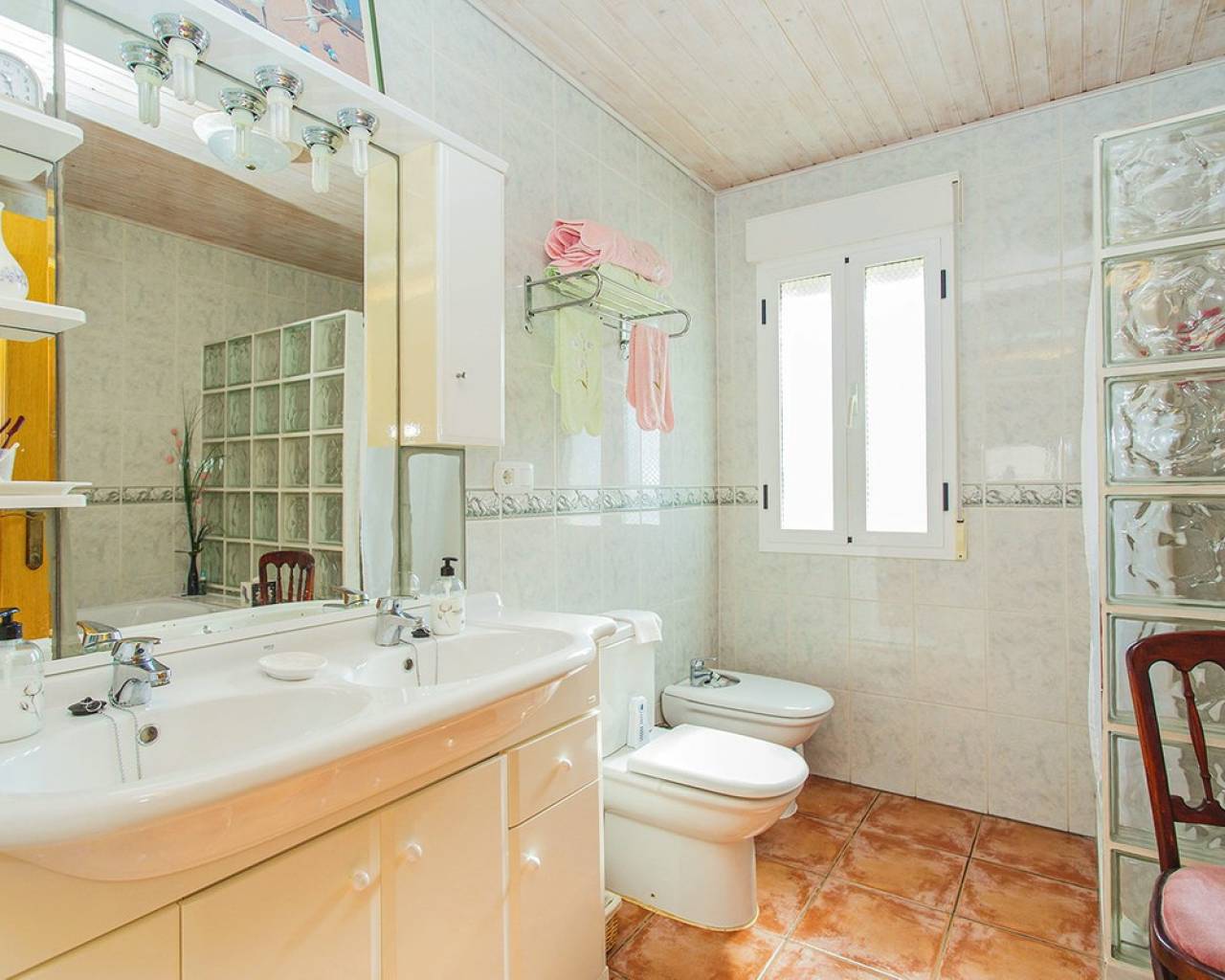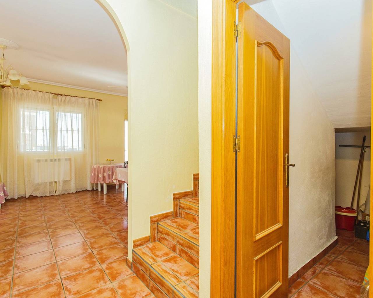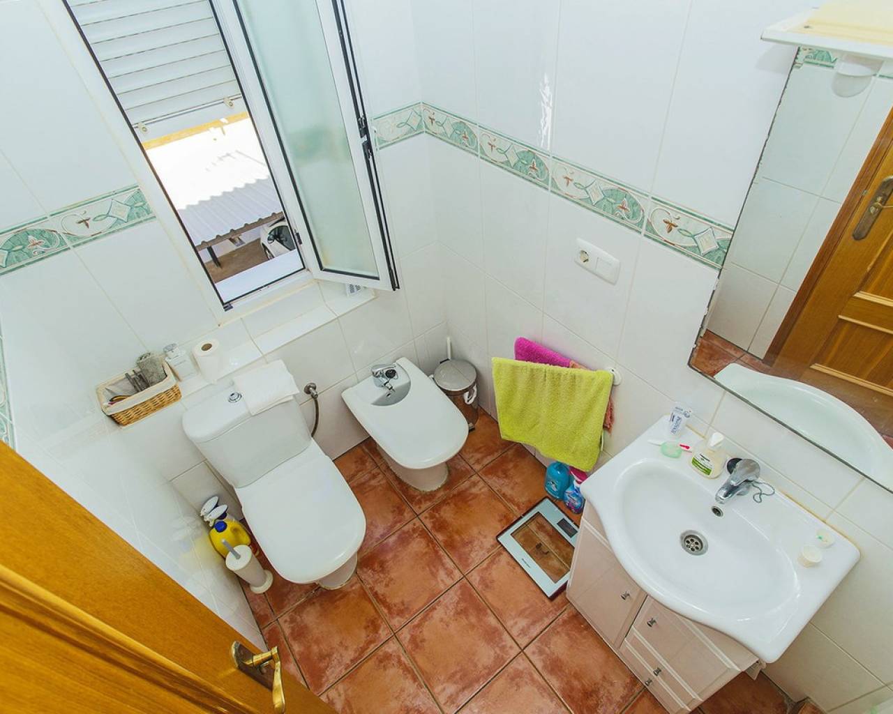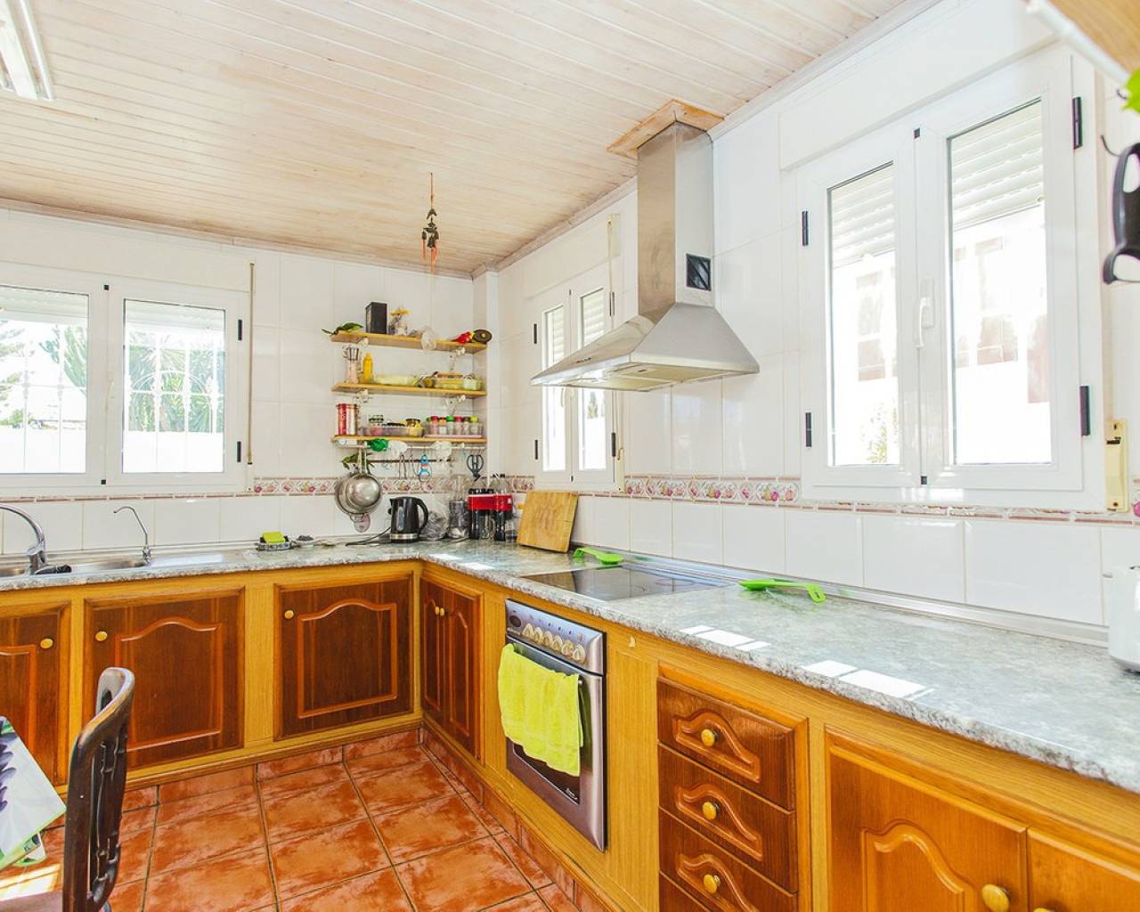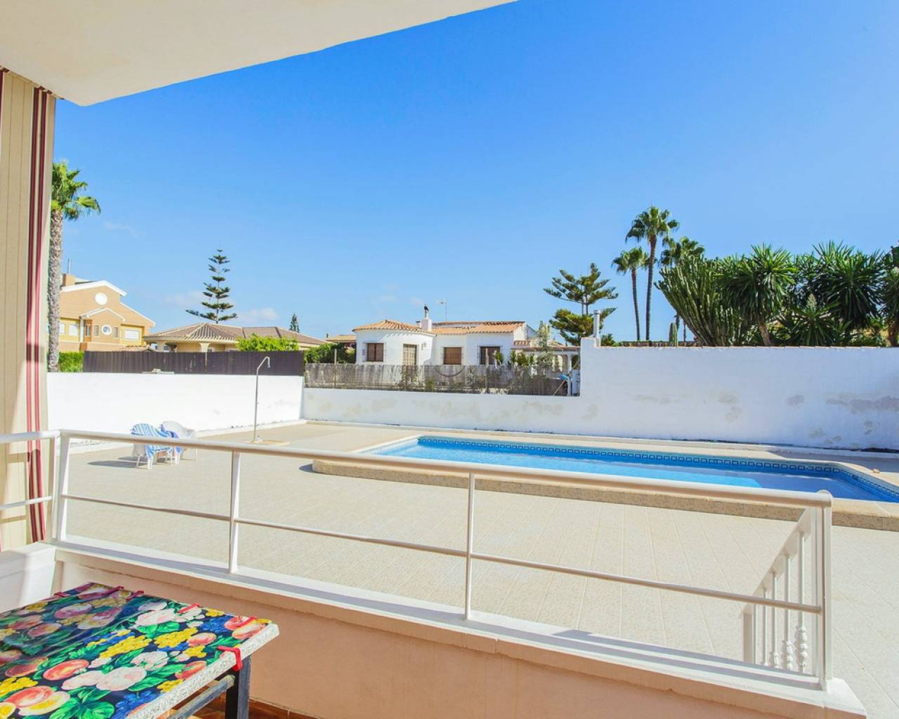 Sunny villa with pool and parking for 5 cars for sale in Aguas Nuevas, Torrevieja. The 220 m2 villa is distributed as follows: on the first floor there is a spacious living-dining room with a 20 m2 porch, an independent equipped kitchen with a gallery and access to an open terrace with views of the pool, a bedroom with built-in wardrobe, a complete bathroom with a shower tray. On the second floor there are four bedrooms with fitted wardrobes. All bedrooms have a balcony with different orientations. Also one of the rooms has a suite bathroom. Surface of the plot about 816 m2. On the plot around the house there is a private pool with barbecue area and planted trees. Chalet is located next to all services such as shops, cafes, restaurants, pharmacy and supermarkets. If you want a virtual tour or a plan of the house, do not hesitate to contact us. It will also be a very good investment and we advise you with our successful seasonal rental service.