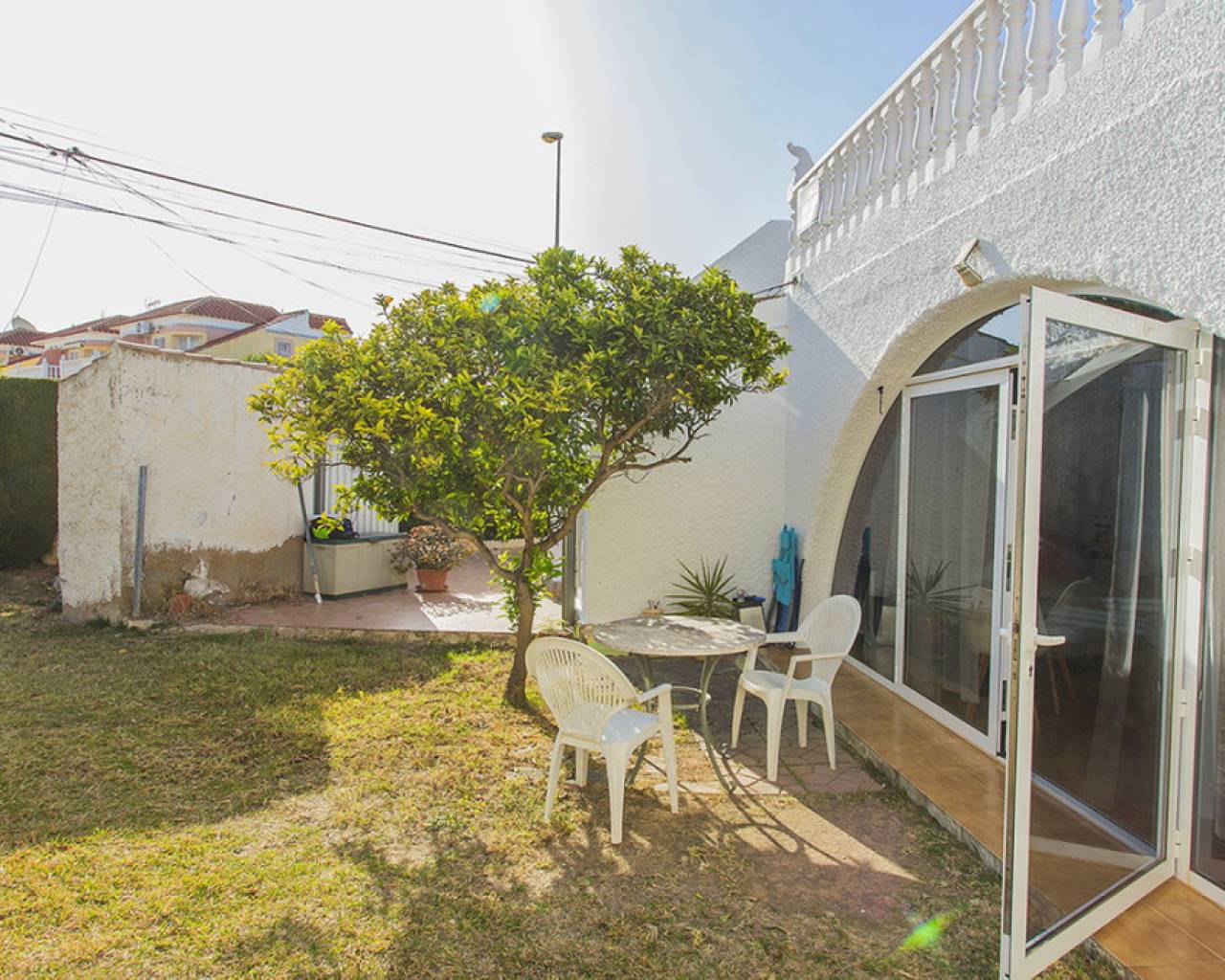 This cozy bungalow in Playa Flamenca, Orihuela Costa, features a private solarium and a spacious terrace overlooking lush green communal areas. Located in a peaceful, green residential neighborhood, the property offers two bedrooms, including one with an en-suite bathroom and terrace access. The open-plan living-dining room connects directly to a 15m² terrace, perfect for relaxing or entertaining while enjoying views of the communal gardens. The bungalow sits on a generous 55m² plot, providing ample outdoor space.The property is ideally situated close to La Zenia Boulevard and Habaneras shopping centers, offering convenience for daily needs and leisure. It is just meters from Mar Azul Beach, La Veleta, and Cala Ferris, with other popular beaches like Punta Prima, La Zenia, Playa Flamenca, and Cabo Roig nearby. The N-332 road provides easy access to Alicante and Cartagena, connecting to the AP-7 Mediterranean motorway. Golf enthusiasts will appreciate the proximity to top courses such as Las Ramblas, Campoamor, Las Colinas, and Villamartín.This bungalow is perfect both as a comfortable home and a potential investment, with the option to rent it seasonally. We invite you to visit the property in person or request a virtual tour and floor plans. Contact us today to explore this charming bungalow and discover its many benefits.