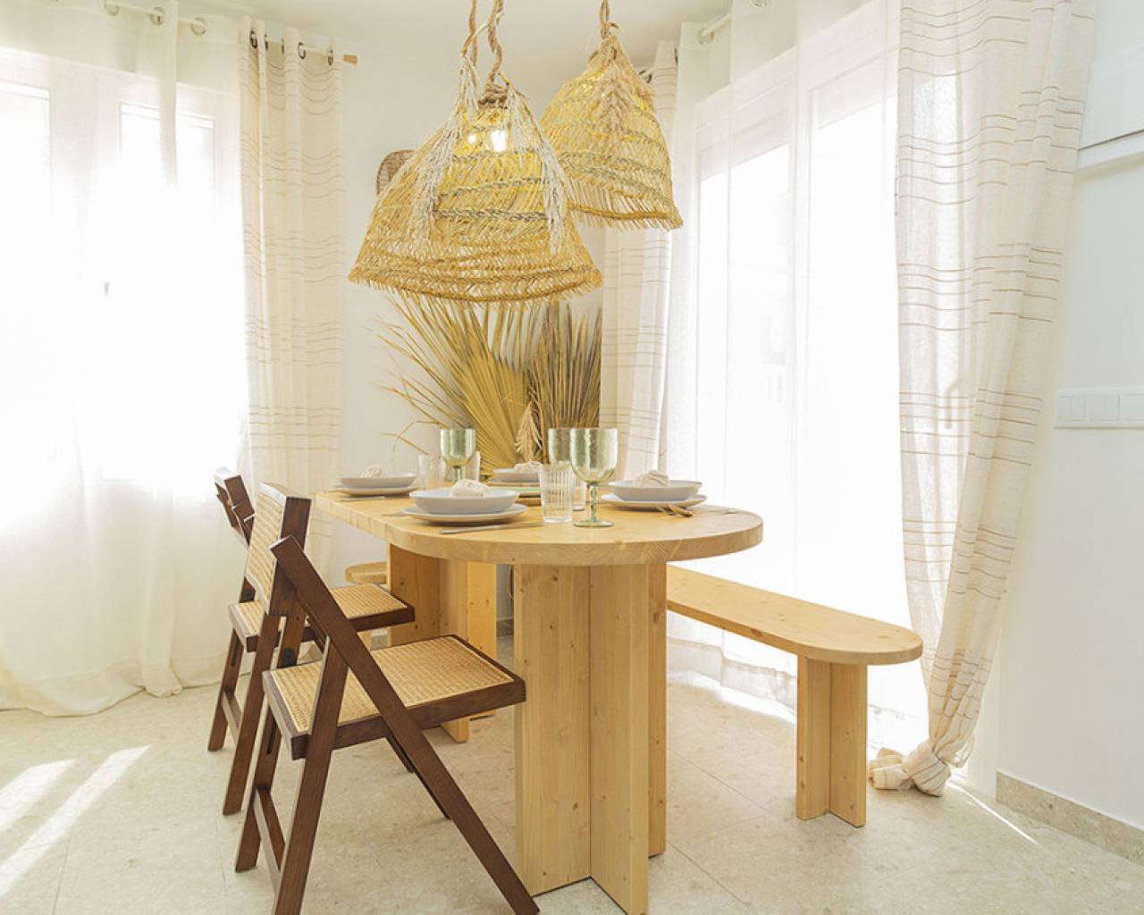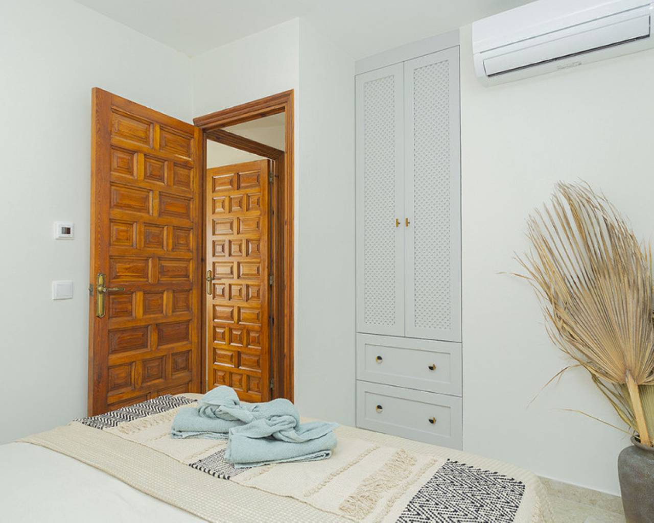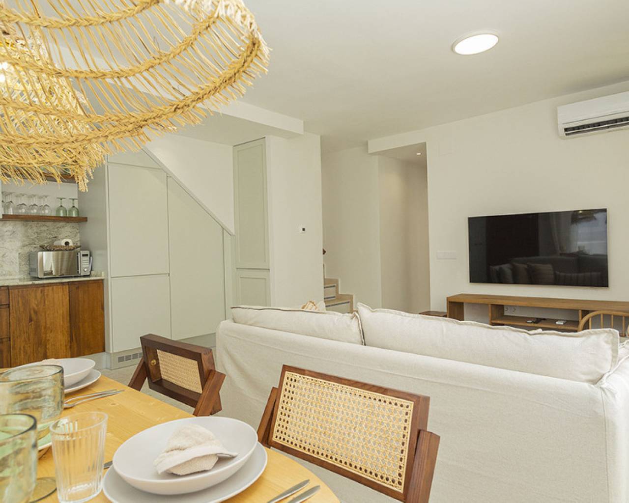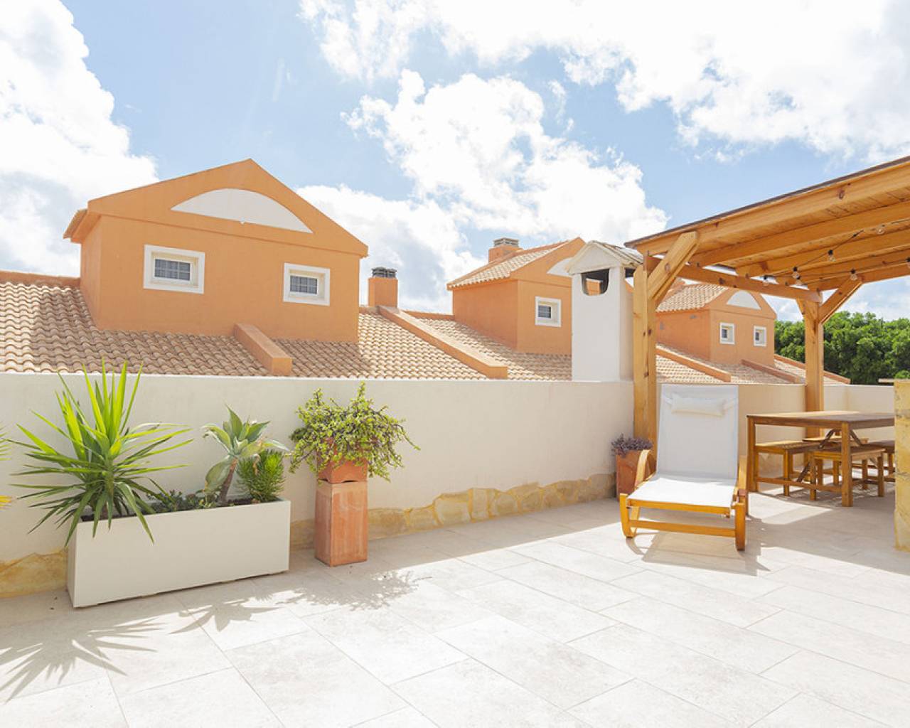 Welcome to your new home by the sea! This spectacular top floor bungalow is located in the European area in La Mata, just 30 meters from the beach. With a luxury renovation and the best materials, this property offers comfort, style and an unbeatable location. This home offers you a premium location: second line from the sea, just 30 meters from La Mata beach and very close to the center, with access to all essential services such as supermarkets, pharmacies, restaurants, cafes and bus stations. The size of the house is also impressive: 109 useful square meters and a further 45 square meters of solarium, apart from the spacious entrance terrace. The very spacious solarium is divided into a covered barbecue area, with solid wood pillars and roof, and a lounge area perfect for enjoying the sun. Distribution and details of the house: The entrance is through a charming terrace. This gives access to the living room: Spacious and bright living room, with large windows that provide plenty of natural light. It includes a dining area and a cozy lounge with a high-quality comfortable sofa and television for relaxing with the family. It has several practical pieces of furniture for storage that also add unique style to the room. Open kitchen: uniquely designed and fully equipped with rock countertops and oak furniture. High-end equipment from the Balay brand, with plenty of storage space and a functional layout. Bedrooms: Three bedrooms, all with air conditioning, wardrobes and large windows with electric shutters. It should be noted that all rooms are equipped with mattresses from an exclusive international brand, used by the best hotels around the world, which offer maximum quality and comfort with adjustable hardness. Modern bathroom: Bathroom with a shower tray from one of the best brands on the market, spacious and comfortable, with underfloor heating and a storage closet, all designed in a bohemian style. The renovation carried out with luxury materials and finishes, adding many extras that provide unmatched comfort in the bungalow. It was completely renovated with eco-friendly and luxury materials, including solid wood and stone. The equipment is also high-end: Kitchen equipped with Balay brand appliances and the bathroom with high-end products from the Villeroy & Boch brand. Air conditioning in all rooms and underfloor heating throughout the house, and in the bathroom. The bungalow is a unique experience, but it is also located in one of the most sought-after areas of La Mata, because in addition to the wonderful beach it has nearby services such as supermarkets, pharmacies, restaurants and cafes just a few minutes away, providing comfort and ease in the day to day. In addition to easy access public transportation. On the other hand, just two minutes away are the nearby parks and recreational areas to enjoy outdoor activities. Don't miss the unique opportunity to live in this spectacular top-floor bungalow with private solarium in La Mata. Contact us today for more information and to arrange a visit. We are here to help you find your ideal home by the sea!