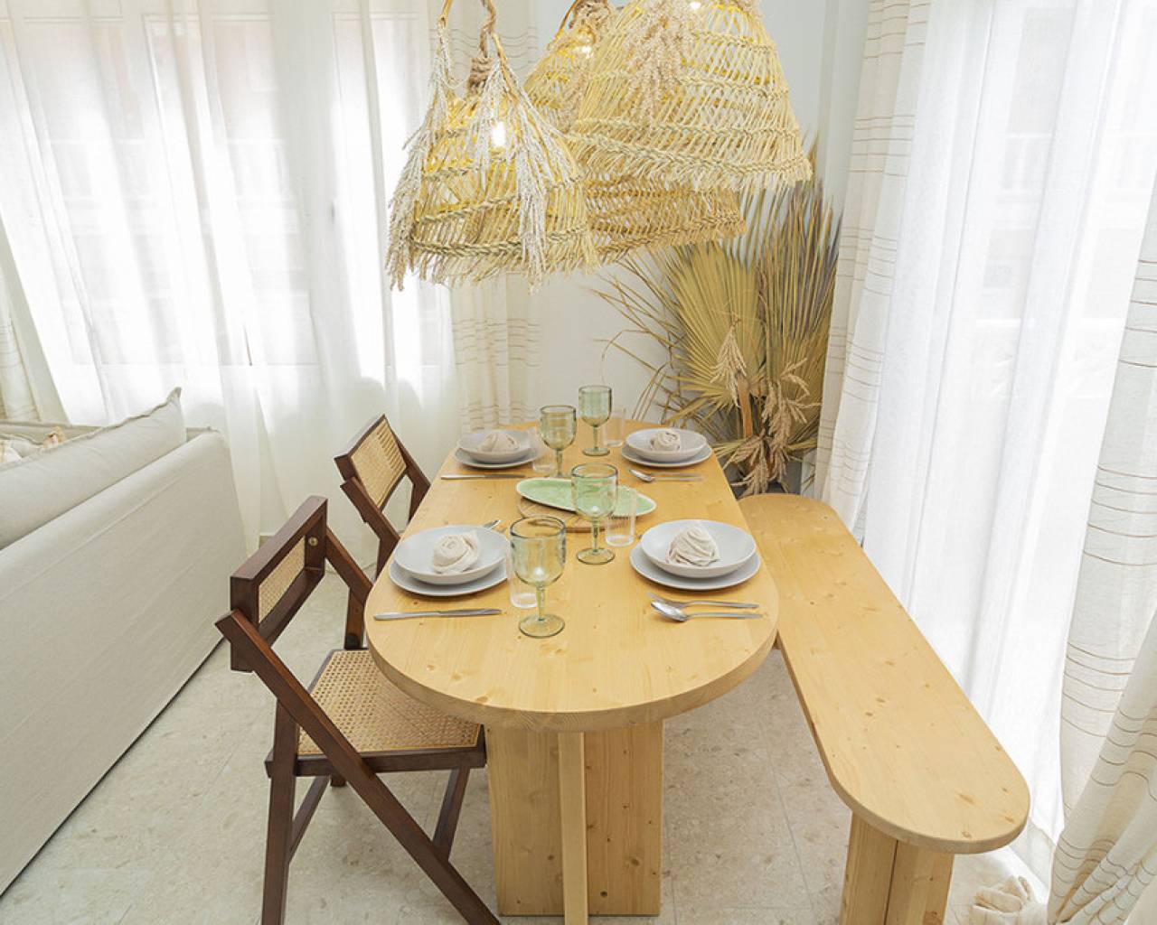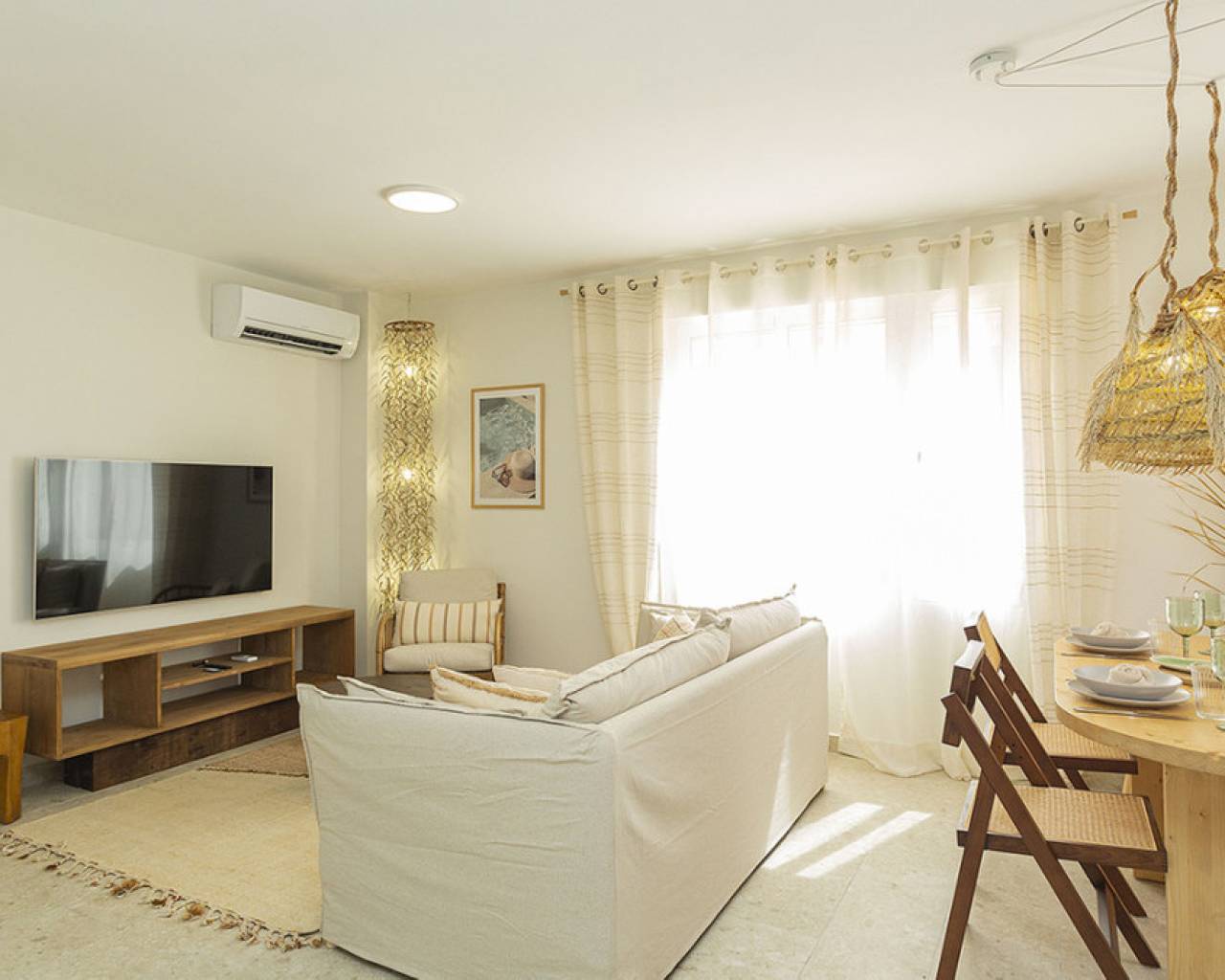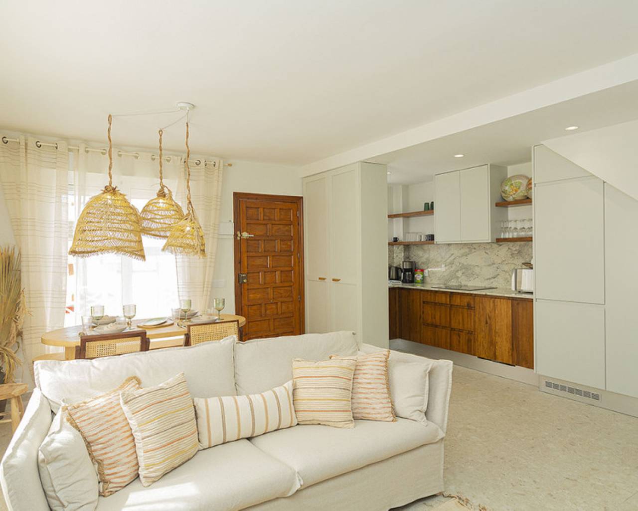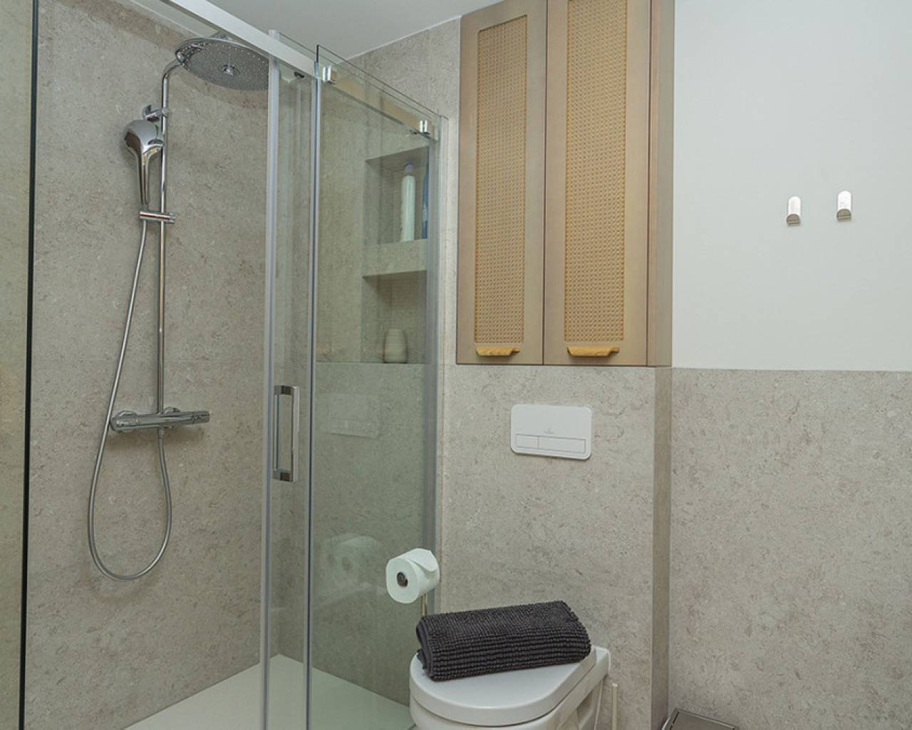 Welcome to your new home by the sea! This spectacular top floor bungalow is located in the European area in La Mata, just 30 meters from the beach. With a luxury renovation and the best materials, this property offers comfort, style and an unbeatable location. This home offers you a premium location: second line from the sea, just 30 meters from La Mata beach and very close to the center, with access to all essential services such as supermarkets, pharmacies, restaurants, cafes and bus stations. The size of the house is also impressive: 109 useful square meters and a further 45 square meters of solarium, apart from the spacious entrance terrace. The very spacious solarium is divided into a covered barbecue area, with solid wood pillars and roof, and a lounge area perfect for enjoying the sun. Distribution and details of the house: The entrance is through a charming terrace. This gives access to the living room: Spacious and bright living room, with large windows that provide plenty of natural light. It includes a dining area and a cozy lounge with a high-quality comfortable sofa and television for relaxing with the family. It has several practical pieces of furniture for storage that also add unique style to the room. Open kitchen: uniquely designed and fully equipped with rock countertops and oak furniture. High-end equipment from the Balay brand, with plenty of storage space and a functional layout. Bedrooms: Three bedrooms, all with air conditioning, wardrobes and large windows with electric shutters. It should be noted that all rooms are equipped with mattresses from an exclusive international brand, used by the best hotels around the world, which offer maximum quality and comfort with adjustable hardness. Modern bathroom: Bathroom with a shower tray from one of the best brands on the market, spacious and comfortable, with underfloor heating and a storage closet, all designed in a bohemian style. The renovation carried out with luxury materials and finishes, adding many extras that provide unmatched comfort in the bungalow. It was completely renovated with eco-friendly and luxury materials, including solid wood and stone. The equipment is also high-end: Kitchen equipped with Balay brand appliances and the bathroom with high-end products from the Villeroy & Boch brand. Air conditioning in all rooms and underfloor heating throughout the house, and in the bathroom. The bungalow is a unique experience, but it is also located in one of the most sought-after areas of La Mata, because in addition to the wonderful beach it has nearby services such as supermarkets, pharmacies, restaurants and cafes just a few minutes away, providing comfort and ease in the day to day. In addition to easy access public transportation. On the other hand, just two minutes away are the nearby parks and recreational areas to enjoy outdoor activities. Don't miss the unique opportunity to live in this spectacular top-floor bungalow with private solarium in La Mata. Contact us today for more information and to arrange a visit. We are here to help you find your ideal home by the sea!