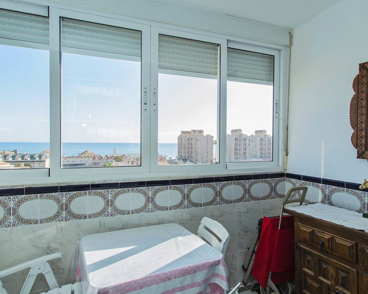 Discover this charming apartment in the European area of La Mata, a privileged location that combines tranquility with direct access to all services. Located on the 4th floor of a building with a lift, this property offers frontal sea views that will take your breath away. You are welcomed by a spacious and practical hallway, ideal for leaving your belongings. The apartment, measuring approximately 50m2, has two comfortable bedrooms, a fully equipped independent kitchen, a modern bathroom with a shower and a bright living-dining room that opens onto a beautiful terrace, perfect for relaxing and enjoying the panoramic views of the Mediterranean. In the common areas, you will find well-kept gardens, a picnic area for outdoor leisure moments, and outdoor showers, ideal for cooling off when returning from the beach. Located just 200 metres from La Mata beach, you will have the sand and the sea at your fingertips, in a natural setting that will make every day feel like a holiday. This apartment is an excellent opportunity for both investors and those looking for a unique place to live, in one of the most magical areas of the coast and with unparalleled views. Don't miss the opportunity to discover this wonderful space and make it your new home by the sea!