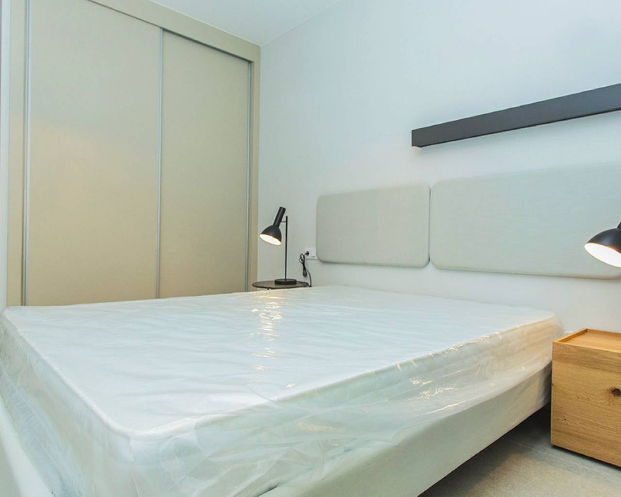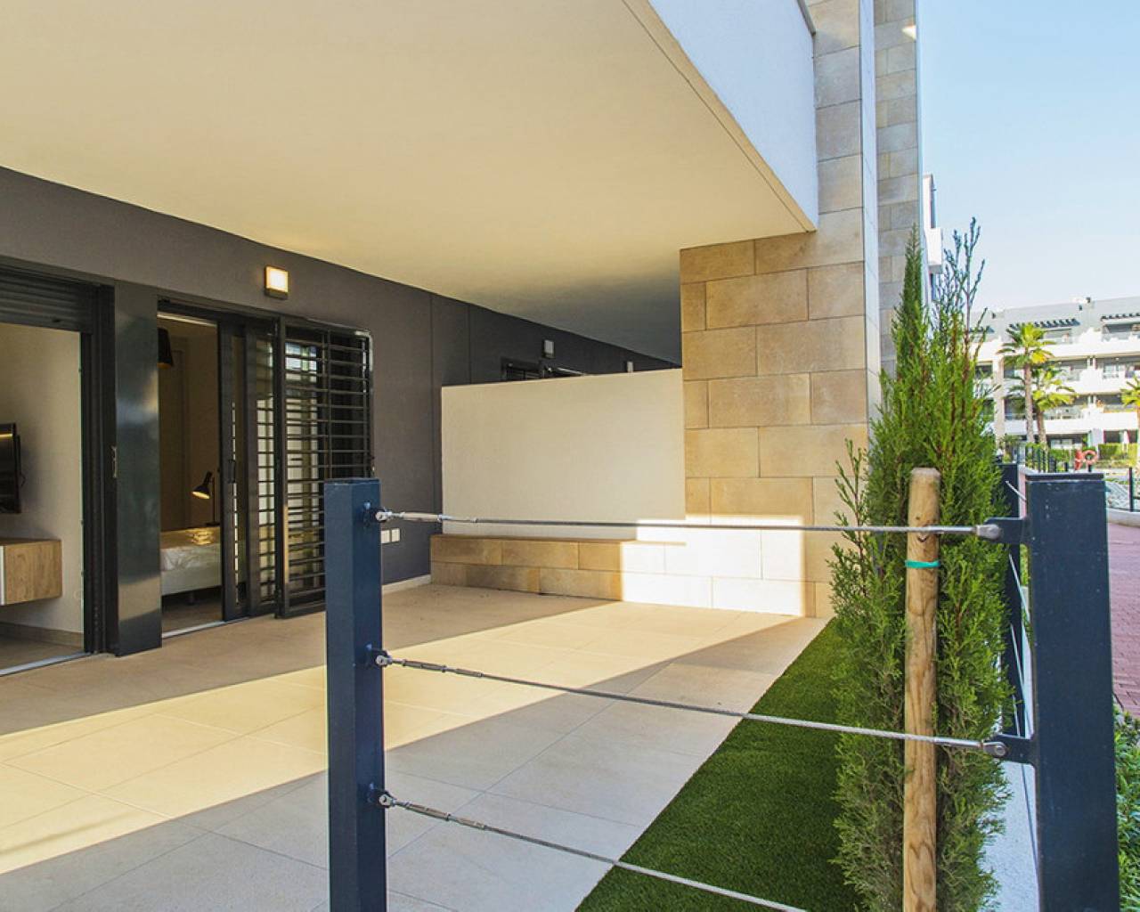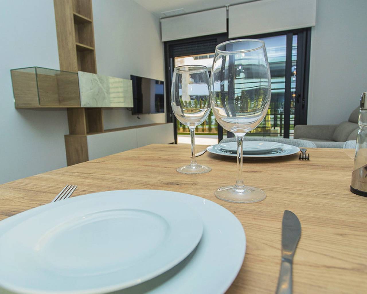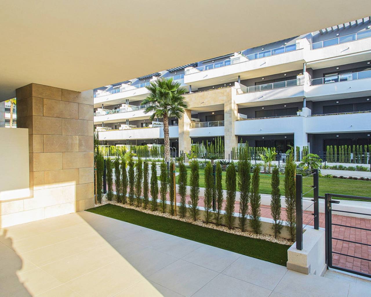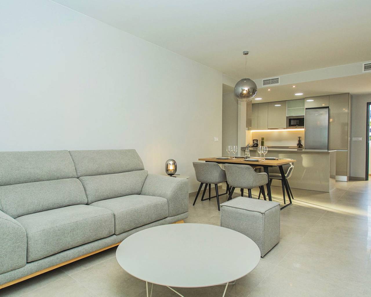 Spacious ground floor apartment with a large terrace in the exclusive Flamenca Village development. It consists of two bedrooms and two bathrooms, a living-dining room with an open kitchen. It is sold furnished and the apartment includes an underground parking space plus 1 parking space for guests within the complex. Phase 3 was built in 2023 and the property has never been used, meaning it is practically considered a new build. Central air conditioning, modern kitchen with all top brand appliances, designer furniture, large terrace to enjoy the Mediterranean climate. The Flamenca Village residential complex offers several swimming pools, one of which is heated. Spa and gym, a poolside snack bar in the central pool area with a good atmosphere, 24-hour concierge area. Security patrolling within the complex, etc. The proximity of the Playa Flamenca shopping centre offers you all services on foot. Mercadona, restaurants, shops, cafes etc. and just 5 minutes from the famous La Zenia Boulevard shopping centre. You can walk to the beautiful Playa Flamenca beach, the distance to the sea is 500 meters. Don't hesitate to arrange a viewing! It's a unique opportunity to get an attractive home in one of the most sought-after residential areas on the coast.