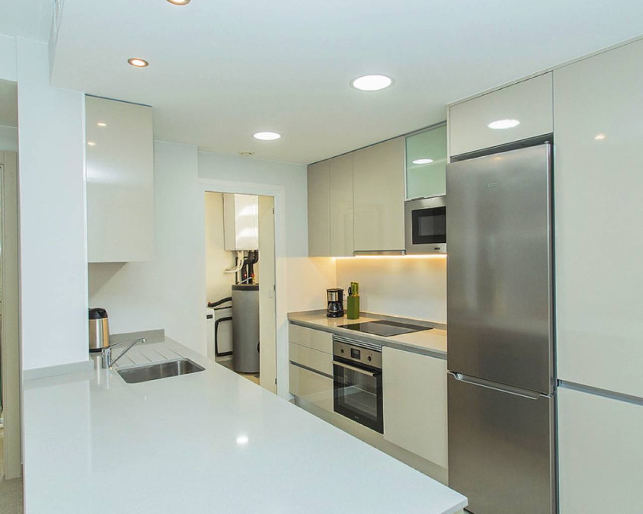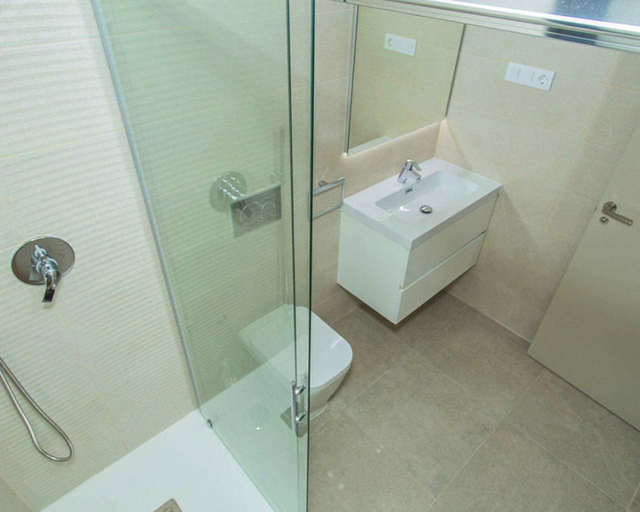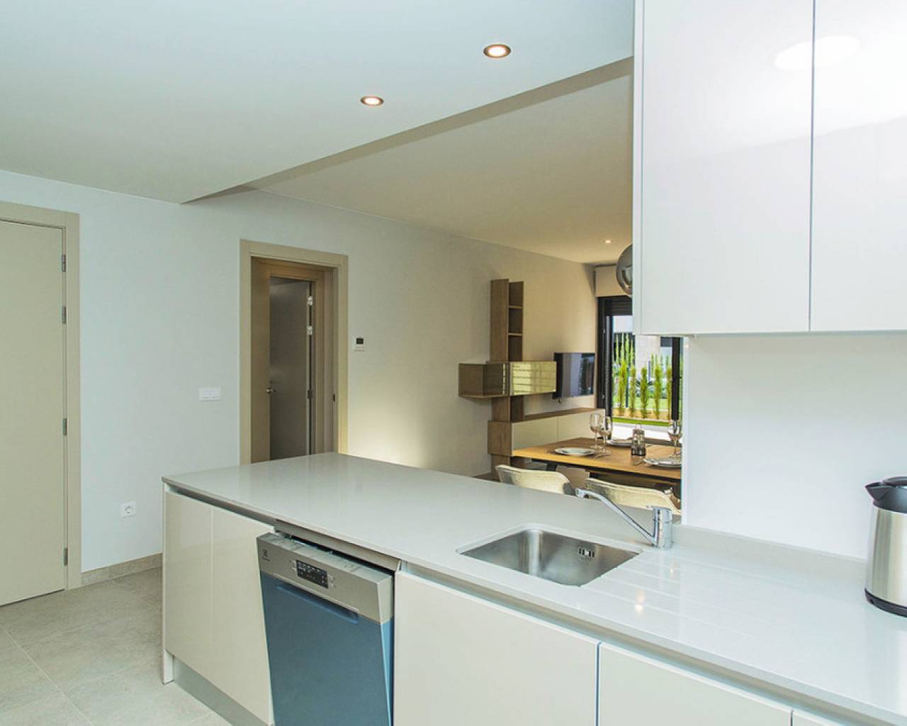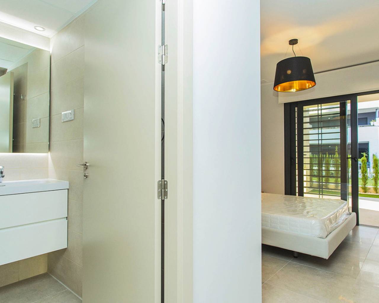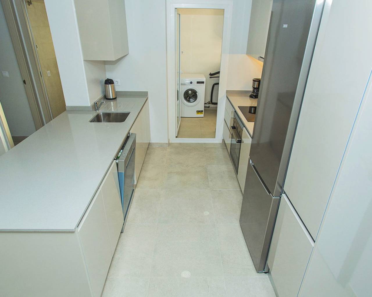 Spacious ground floor apartment with a large terrace in the exclusive Flamenca Village development. It consists of two bedrooms and two bathrooms, a living-dining room with an open kitchen. It is sold furnished and the apartment includes an underground parking space plus 1 parking space for guests within the complex. Phase 3 was built in 2023 and the property has never been used, meaning it is practically considered a new build. Central air conditioning, modern kitchen with all top brand appliances, designer furniture, large terrace to enjoy the Mediterranean climate. The Flamenca Village residential complex offers several swimming pools, one of which is heated. Spa and gym, a poolside snack bar in the central pool area with a good atmosphere, 24-hour concierge area. Security patrolling within the complex, etc. The proximity of the Playa Flamenca shopping centre offers you all services on foot. Mercadona, restaurants, shops, cafes etc. and just 5 minutes from the famous La Zenia Boulevard shopping centre. You can walk to the beautiful Playa Flamenca beach, the distance to the sea is 500 meters. Don't hesitate to arrange a viewing! It's a unique opportunity to get an attractive home in one of the most sought-after residential areas on the coast.