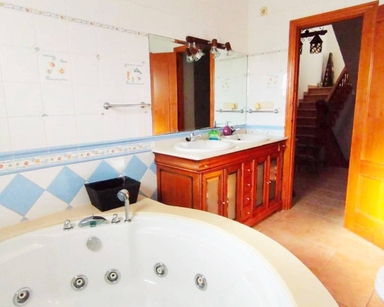 This two-storey villa with basement and private solarium in the Torreta 2 area, Torrevieja, offers an excellent layout and plenty of space on a plot of approximately 600 m². The constructed area of the house is approximately 375 m². The layout is detailed below. The ground floor is distributed as follows: Large living-dining room of approximately 33 m². Fully equipped independent kitchen with all appliances. Laundry room . Bedroom suite of approximately 22 m² with full bathroom. Additional guest bathroom . First Floor (accessible by external staircase): Five bedrooms with built-in wardrobes. Three full bathrooms with showers, one of them with a jacuzzi. The property also has a private solarium with views of the lake, ideal for enjoying the climate of Torrevieja, and a large basement with a full bathroom that offers more space for different uses. The villa has an excellent layout that makes it a perfect home for large families or for those looking for comfort and space. This villa is situated in a very convenient location, close to a wide range of amenities, making it an excellent choice for those seeking comfort and accessibility. Nearby amenities include: Habaneras Shopping Centre , offering a variety of shops, restaurants and entertainment options. Nearby pharmacies to meet health needs. Well-known supermarkets such as Mercadona and Lidl, ideal for daily shopping. Bus stops , facilitating public transport to other areas of Torrevieja and surrounding areas. Call us to arrange a viewing! If you would like a virtual tour or a floor plan of the property, please do not hesitate to contact us. It will also be a very good investment to rent it out with our successful seasonal rental service. Contact us for more information.