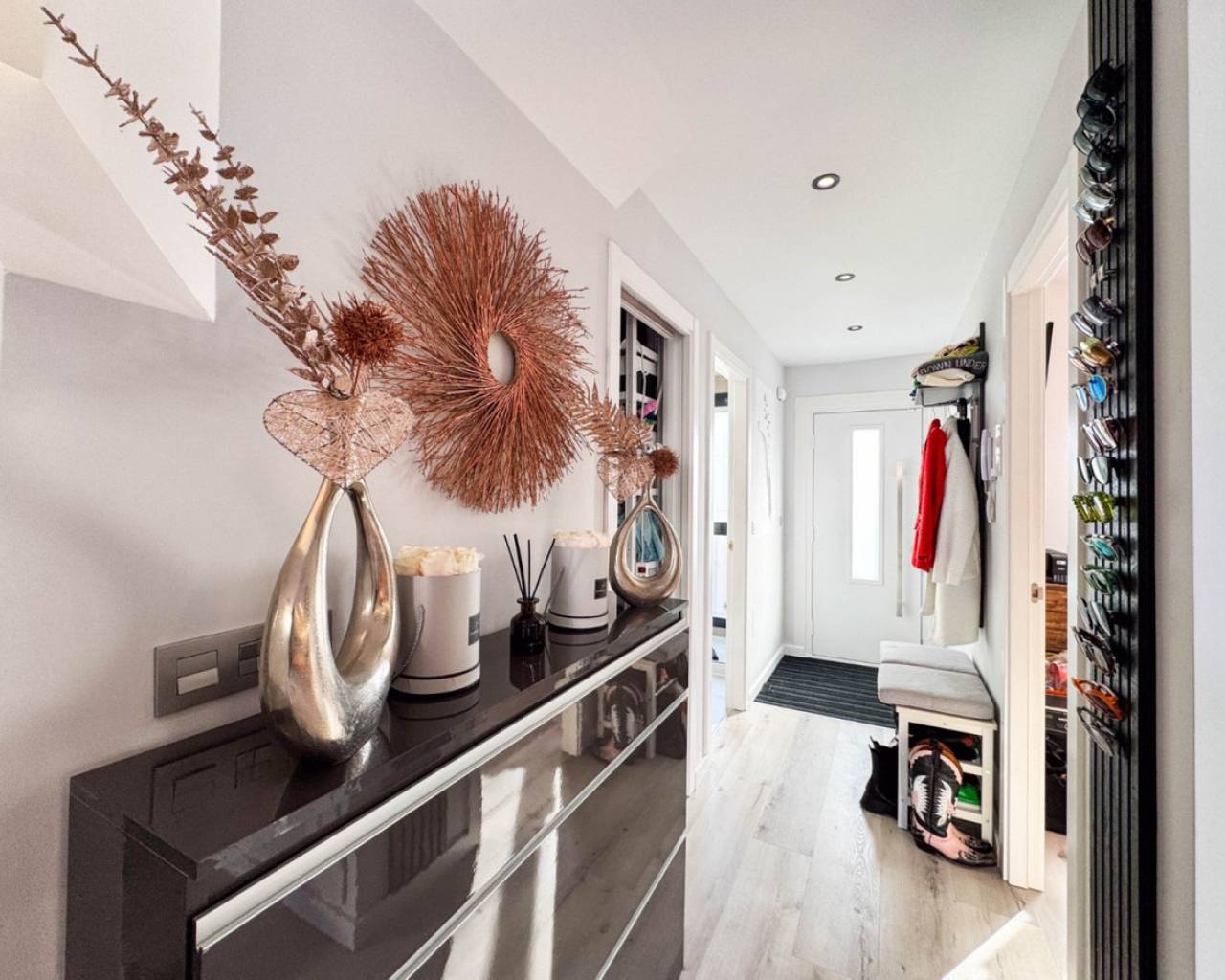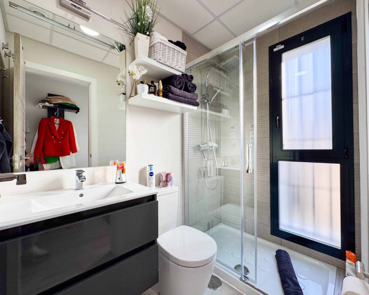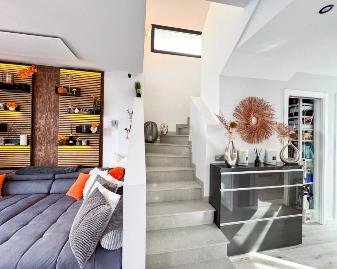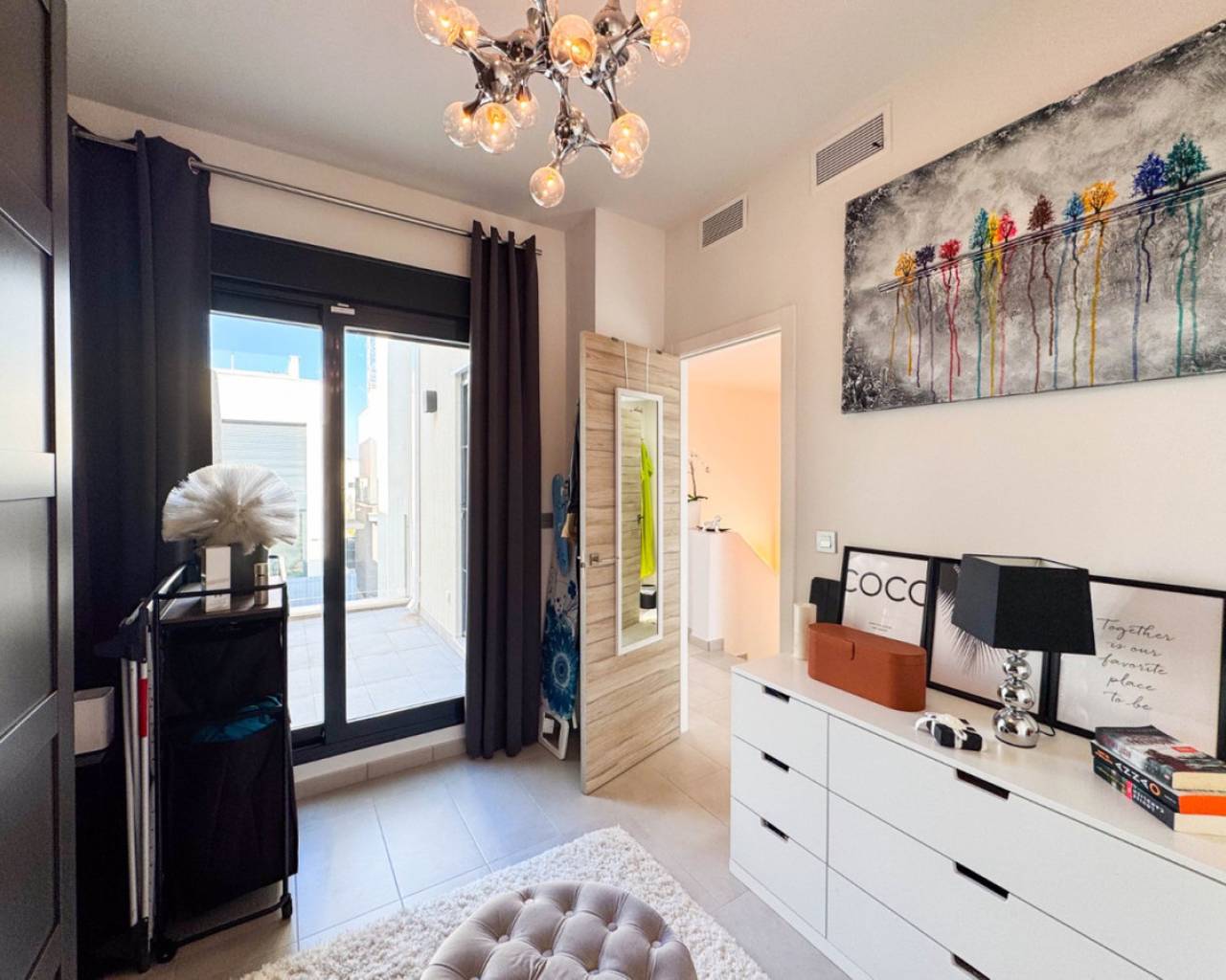 We present this spectacular 2-storey independent house with a private solarium, located in the exclusive and quiet PAU 26 area of Orihuela Costa, in the Residencial Entregolf urbanization. A modern and recently built home (2020), ideal for those seeking comfort, quality and proximity to all services. With 103 m² built on a 142 m² plot, this property stands out for its top quality finishes and its spacious spaces, designed for your comfort. On the ground floor, you will enjoy a spacious living room that connects to a charming terrace with a private 12 m² pool, accessible directly from the living room, creating a perfect environment to relax or enjoy social gatherings. The kitchen is modern and sophisticated, with a recent renovation that gives it functionality and style. In addition, it has a full bathroom, a bedroom and a pantry equipped with a washing machine and a water heater, offering convenience in everyday life. At the back of the plot, you will find an additional storage room, built by the owners, ideal for storing tools and other items. There is also a parking space at the front of the plot, with capacity for a small car. Going up to the first floor, there are 2 large bedrooms, with built-in wardrobes and pleasant views of the outdoor area. The floor is completed with another full bathroom with a modern and functional design. From this floor, you access a spectacular private solarium of 37 m², with a dining area, a pergola that will provide shade and a recently installed summer kitchen, perfect for enjoying sunny days and evenings outdoors. Additional features: Underfloor heating in the bathrooms, ensuring optimal comfort all year round. Large windows that bring light to each space and provide excellent ventilation. Electric blinds, for greater comfort and control of natural light. Infrared heating, an efficient and modern system to keep your home pleasant during the colder months. The house has 2.8 kW solar panels, which provide greater energy efficiency and reduce electricity consumption. The property is sold furnished and with high-quality appliances, ready to move into without the need for renovations or improvements. The property is located within the quiet and well-kept Residencial Entregolf development, which has a communal pool to enjoy refreshing swims in summer and communal parking for residents. Its location is unbeatable, with quick access to the motorway and just 1 km from the Lidl supermarket and 2 km from the Zenia Boulevard shopping centre, where you will find a wide variety of shops, restaurants and entertainment. In addition, the beach is only 2 km away, allowing you to enjoy the Mediterranean coast in just a few minutes. Take advantage of the opportunity to live in a modern house, in a quiet area, surrounded by nature and close to all services. This is your chance to live the way you've always dreamed!