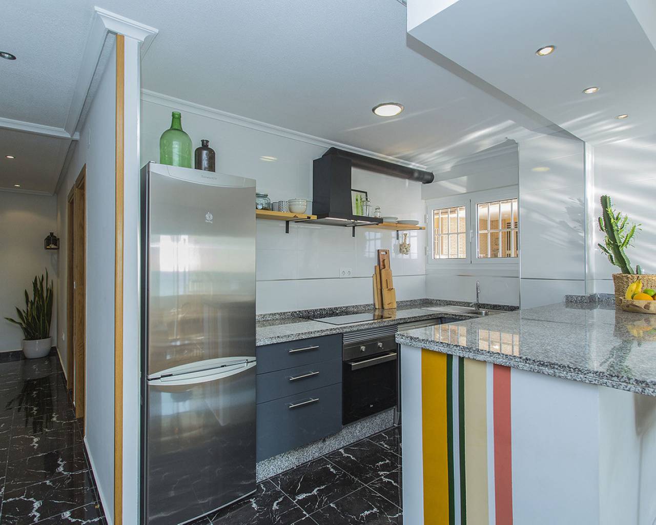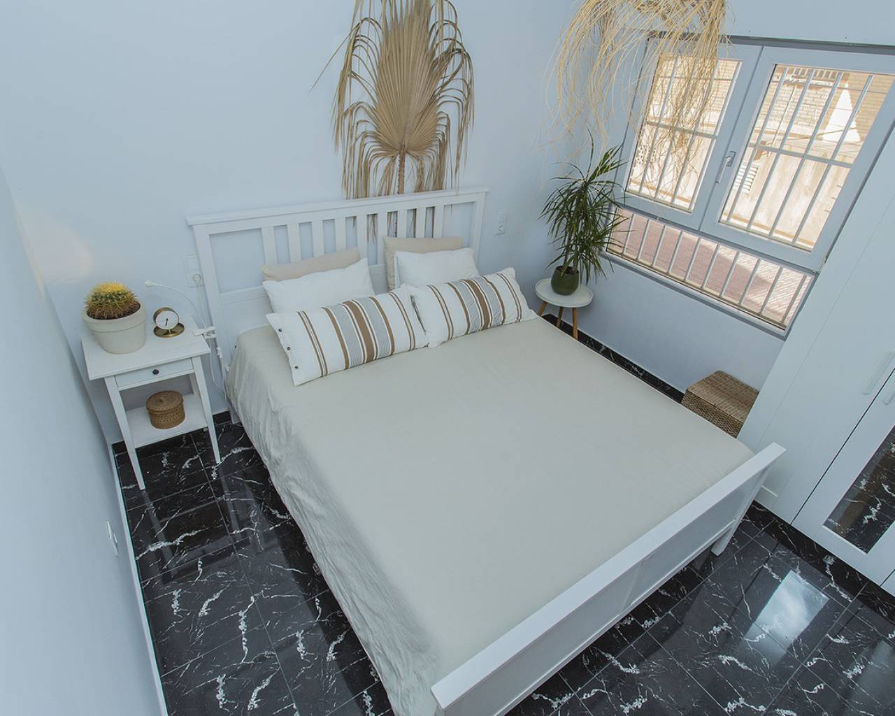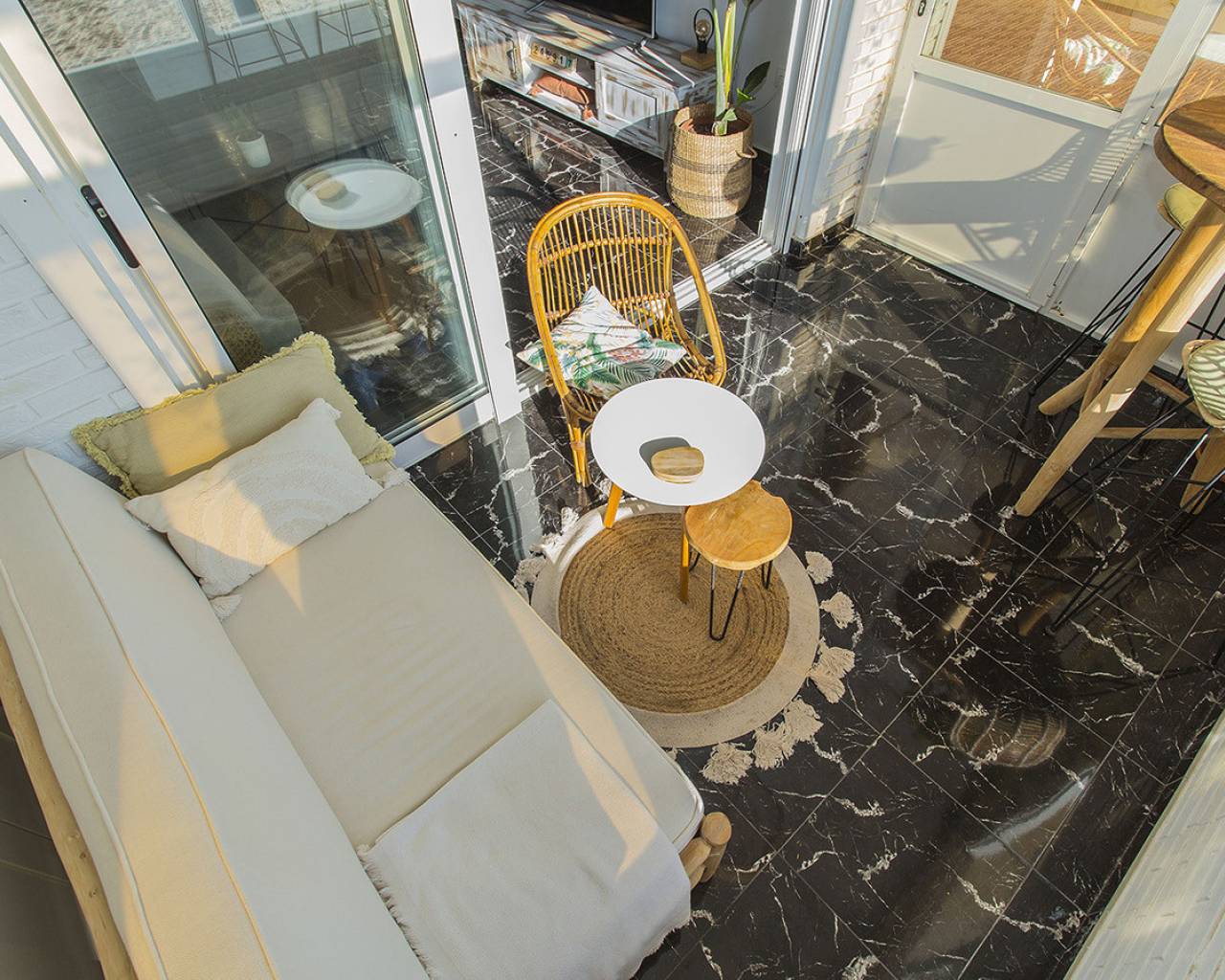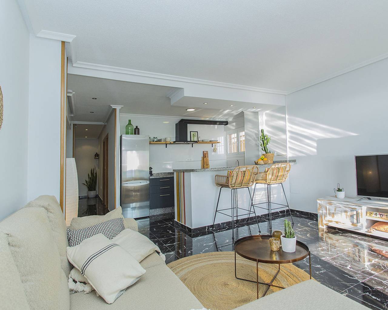 In the most exclusive location of La Mata in Torrevieja you will find this 2 bedroom apartment with fantastic sea views! Practically above the beach with direct access to the sand from the balcony. It is a ground floor, recently renovated. You just have to open the windows and you can hear the sound of the waves. Tastefully renovated and ready to move in! It consists of two bedrooms, a bathroom and a large living room with an open kitchen. Quality appliances and inverter type air conditioning. It is being sold fully furnished and is already being rented out through our successful holiday rental service. It generates good income. It has beautiful marble floors and the apartment is on a corner which allows for lots of light. I invite you to visit this apartment that has views and qualities that are very rare. Call us to arrange a visit!