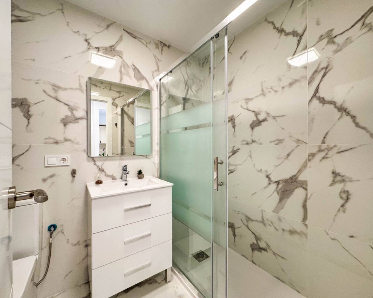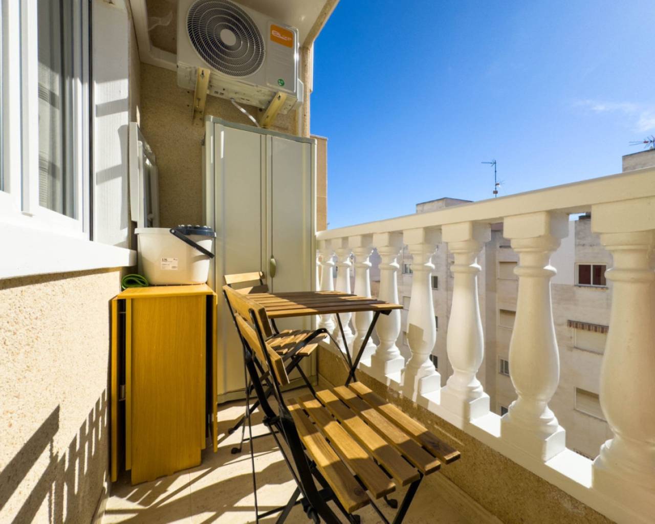 Fully renovated penthouse in Playa del Cura. This spacious apartment has been renovated from the ground up, with a complete redesign of the layout to optimise the apartment to the maximum. The entire electrical system has been completely updated according to current regulations, using high-quality materials that guarantee safety, efficiency and long-term durability. In addition, the plumbing system has been completely replaced with state-of-the-art pipes, ensuring optimal water flow and maximum reliability. Soundproofing around the perimeter provides exceptional tranquillity. The building has an elevator. It is distributed as follows: living-dining room with access to the terrace, open kitchen, fully equipped and with appliances, two full bathrooms, two large bedrooms. The complex has a communal pool. This penthouse is in impeccable condition, ready to move into. Unbeatable location, as it is close to the sea and just less than 300 m from Playa del Cura. Necessary services such as supermarkets, restaurants, pharmacies, bus stops are all very close. Call us to arrange a visit! If you would like a virtual tour or a floor plan, please do not hesitate to contact us. It will also be a very good investment and we help with our successful seasonal rental service. Contact us for more information.