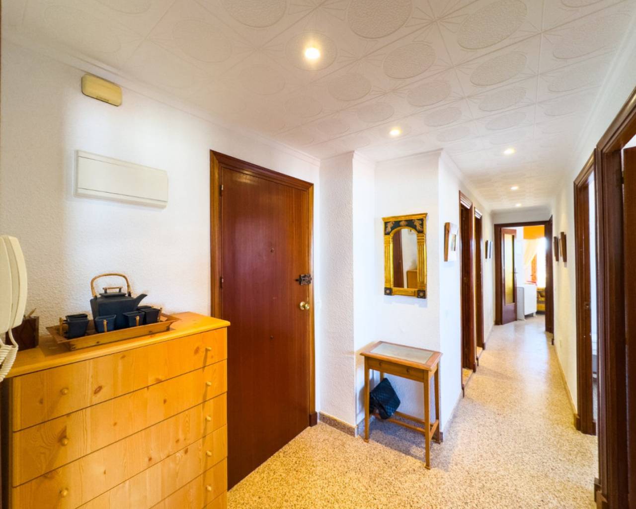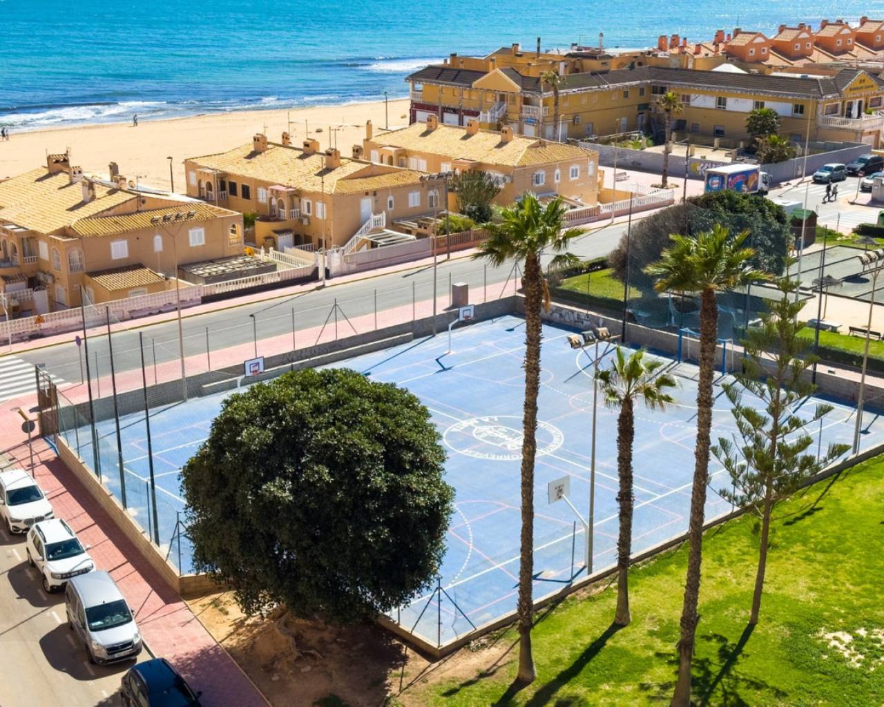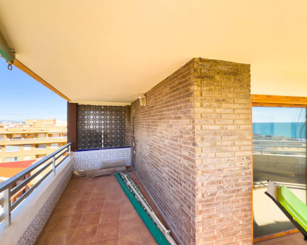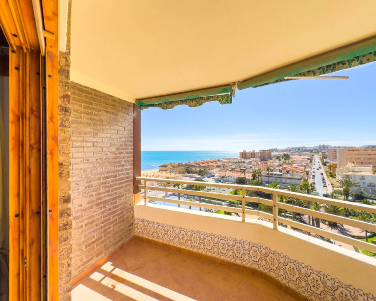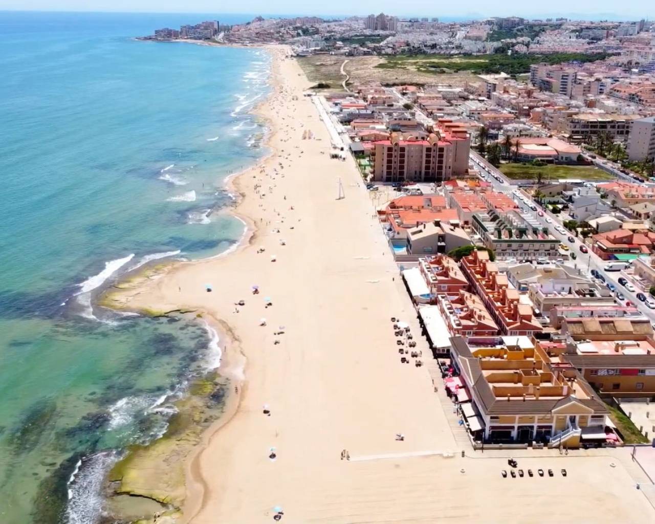 A very spacious beachfront apartment is for sale in the center of La Mata, Torrevieja. The apartment is located in the heart of the town and boasts beautiful lateral sea views from the exterior. It is located on the seventh floor of a building with two elevators and a ramp for people with reduced mobility. The apartment is distributed as follows: a spacious living-dining room with access to the terrace, which is approximately 23 m2 southeast-facing and offers beautiful sea views, three bedrooms with all exterior windows and built-in wardrobes, a separate kitchen with all appliances and access to the utility room, and two full bathrooms with showers. In the basement of the same building, there is a parking space, which is included in the price. The property has an excellent location, a stone's throw from the beach and just 2 minutes from the center of La Mata, with all amenities nearby, such as supermarkets, local shops (food and other services), and restaurants. Call us to arrange a viewing! If you'd like a virtual tour or a floor plan of the property, please don't hesitate to contact us. This property could also be an excellent investment, and we offer our successful seasonal rental service. Contact us for more information.