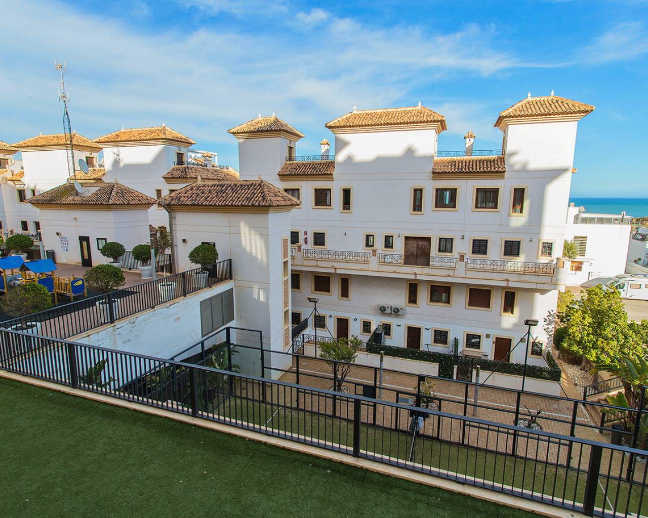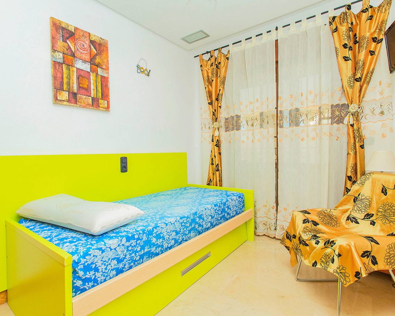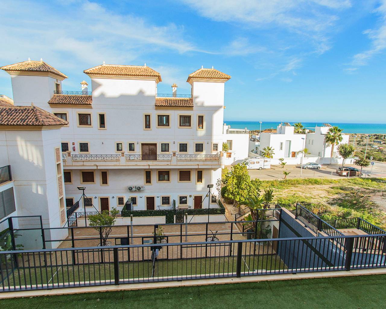 This two-bedroom, two-bathroom apartment is located in the sought-after Guardamar Hills development in Los Secanos, Guardamar del Segura. It offers side sea views. The apartment is in very good condition and is being sold furnished. It has ducted air conditioning, electric blinds, a separate kitchen with all appliances, a washer and dryer, etc. The master bedroom has an en-suite bathroom. The apartment is ready to move in. Guardamar Hills also offers a spa with a heated pool, sauna, and gym. A mini-golf course and communal pool are located within the gated complex. Concierge service is available. The communal areas also offer a playground and paddle tennis court. The beautiful beaches of Guardamar are approximately half a mile away. It has high rental potential, so don't hesitate to call us to arrange a visit and we'll advise you on how to get the most out of your investment!