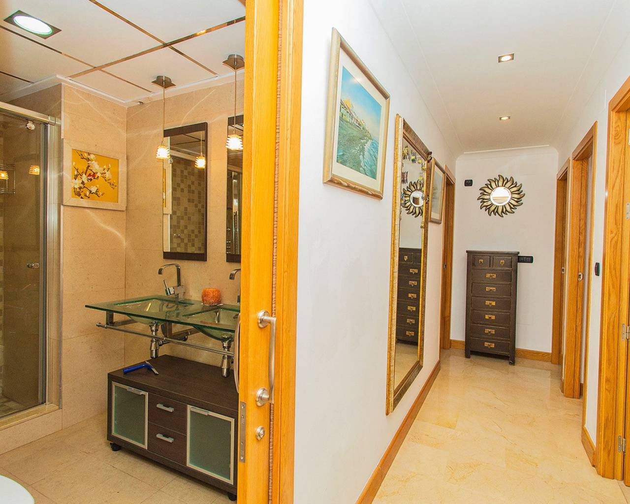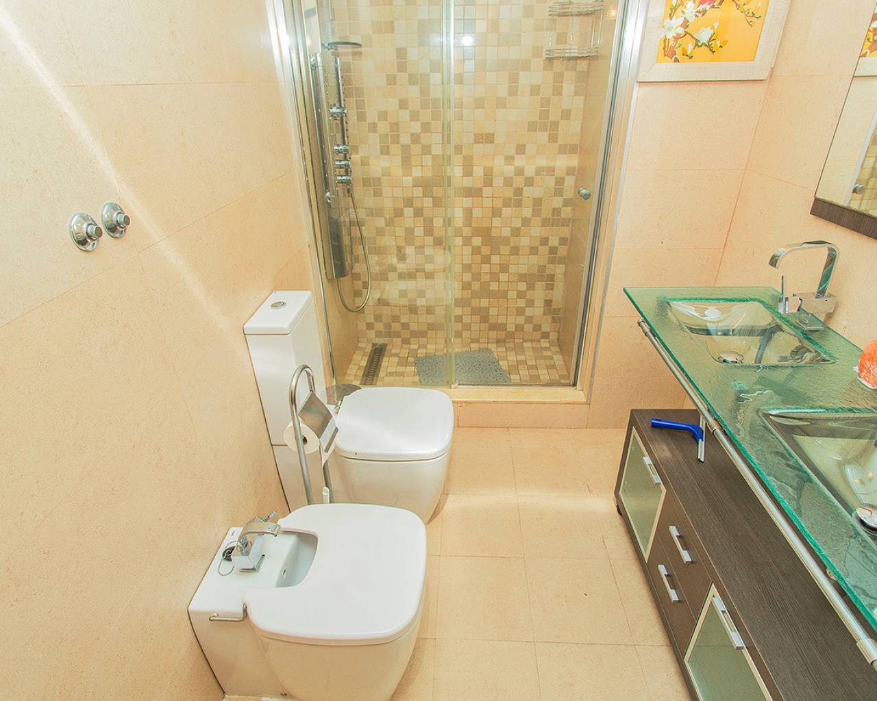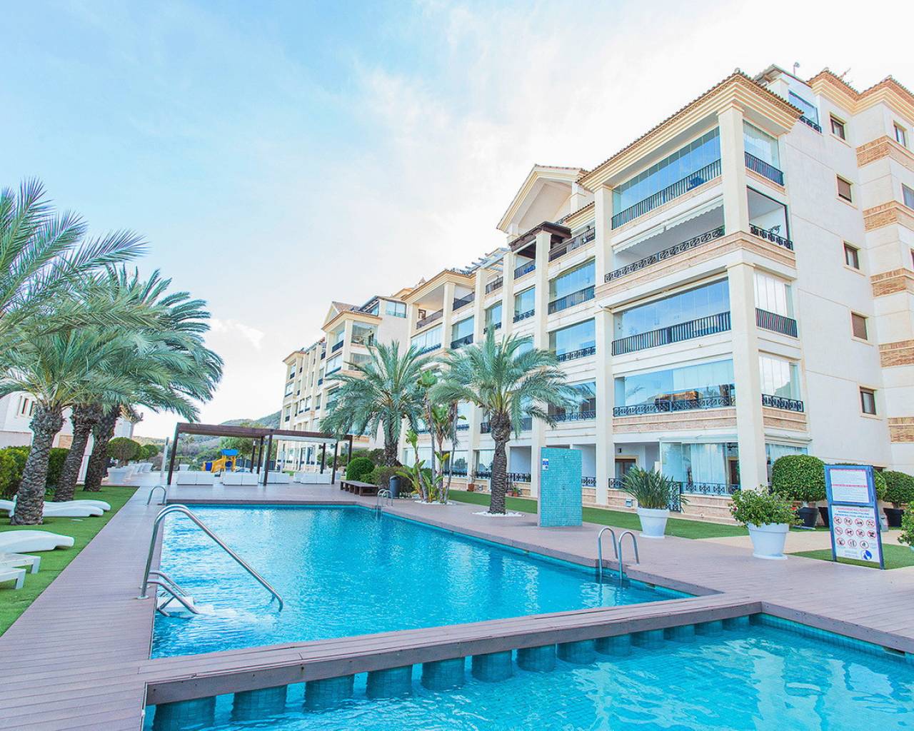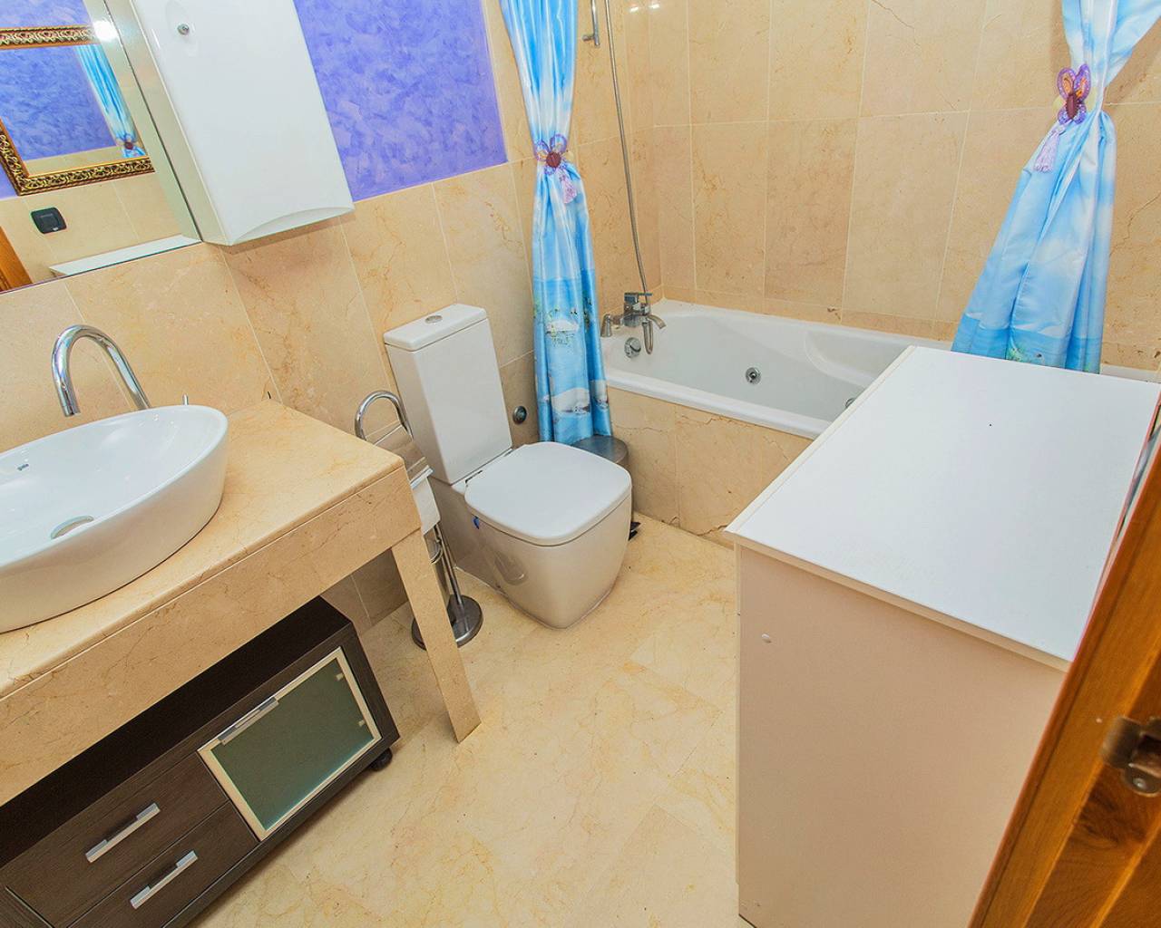 This two-bedroom, two-bathroom apartment is located in the sought-after Guardamar Hills development in Los Secanos, Guardamar del Segura. It offers side sea views. The apartment is in very good condition and is being sold furnished. It has ducted air conditioning, electric blinds, a separate kitchen with all appliances, a washer and dryer, etc. The master bedroom has an en-suite bathroom. The apartment is ready to move in. Guardamar Hills also offers a spa with a heated pool, sauna, and gym. A mini-golf course and communal pool are located within the gated complex. Concierge service is available. The communal areas also offer a playground and paddle tennis court. The beautiful beaches of Guardamar are approximately half a mile away. It has high rental potential, so don't hesitate to call us to arrange a visit and we'll advise you on how to get the most out of your investment!
