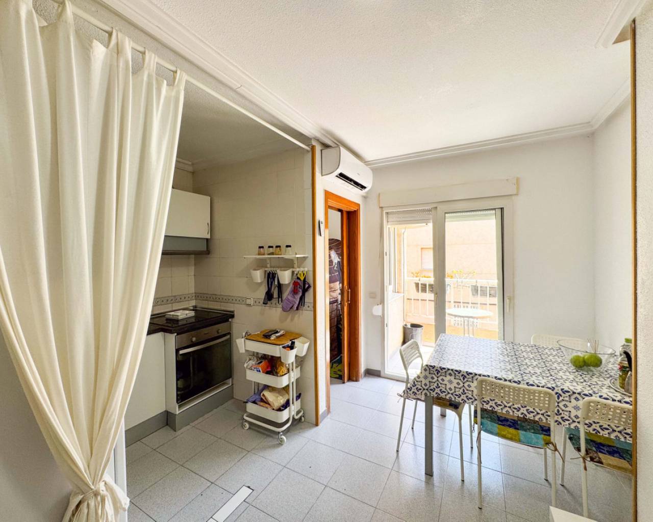 This cozy apartment in Torrevieja is located just 200 meters from the popular Acequión Beach, offering a privileged location for those who want to enjoy the sea either year-round or during holidays. Situated on the first floor of a building with a lift and disabled access, this property offers comfort, accessibility, and unbeatable proximity to the beach.The layout is designed to maximize both space and natural light. The bright living-dining room opens onto a balcony with pleasant side views of the sea. The open-plan kitchen is integrated into the living area, creating a practical and modern space ideal for everyday use.There are two bedrooms, the main one benefiting from access to an interior patio that provides natural light and ventilation. The bathroom is fully equipped and features a bathtub.The surrounding area is very convenient, with supermarkets, restaurants, pharmacies, and bus stops all just a short walk away. This makes the apartment perfect not only as a permanent residence but also as a holiday home near the sea.Thanks to its proximity to the beach, functional layout, and excellent access to essential services, this property is also an attractive investment opportunity for seasonal rental. Our team offers full management services for holiday rentals, ensuring a high return with no hassle.Contact us to schedule an in-person or virtual viewing and to receive detailed floor plans of the property.