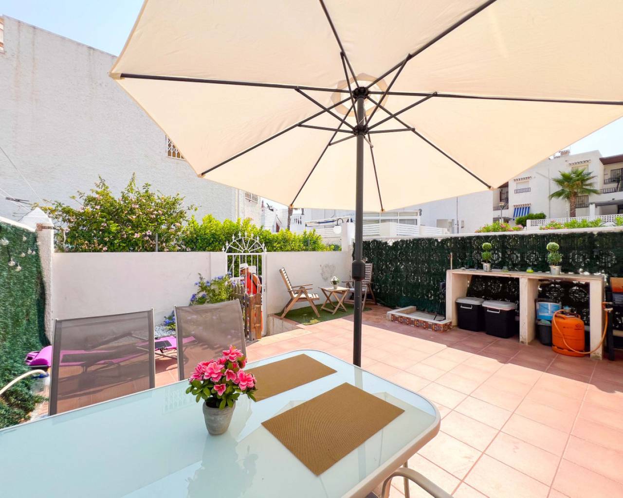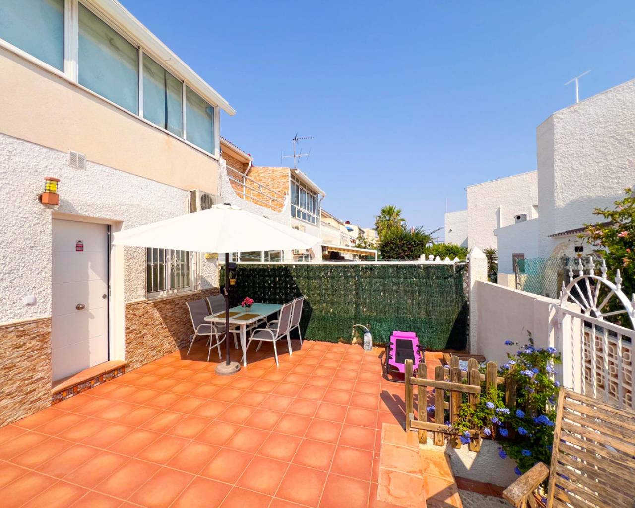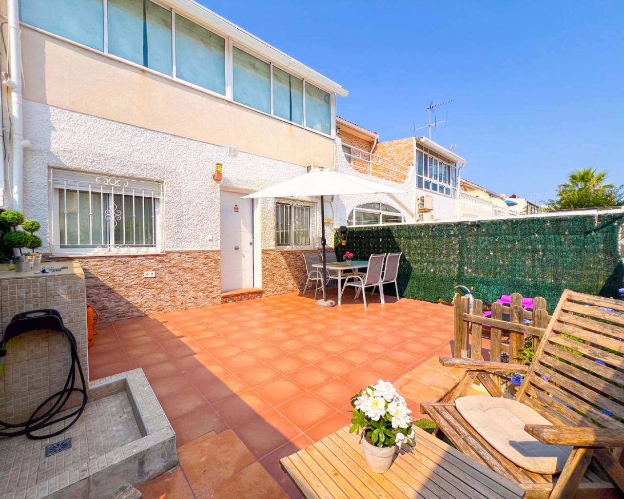 Spacious bungalow in Torrelamata Torrevieja near La Mata BeachThis spacious bungalow is located in the sought-after Torrelamata area of Torrevieja, just 350 meters from the well-known La Mata Beach, one of the most popular stretches of sand on the Costa Blanca. Its location is perfect for enjoying the sea while having all services close at hand: supermarkets, restaurants, pharmacies, and leisure options are all within 100 meters.The property features a private 29 m² terrace, ideal for sunbathing, outdoor dining, or relaxing in a quiet atmosphere. Inside, the large living and dining room provides a bright and welcoming space for family gatherings or entertaining friends. On the main floor, there are three bedrooms with built-in wardrobes and a fully equipped bathroom in excellent condition.An additional advantage is the basement, accessible by an internal staircase, which includes two spacious bedrooms. This versatile area can be adapted into more bedrooms, a gym, a playroom, or a home office depending on your needs.The residential complex also offers outdoor communal parking. With its prime location, generous living areas, and versatile use of space, this bungalow in Torrevieja is an ideal choice both as a permanent home and as a rental investment.