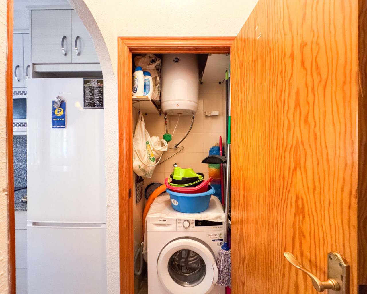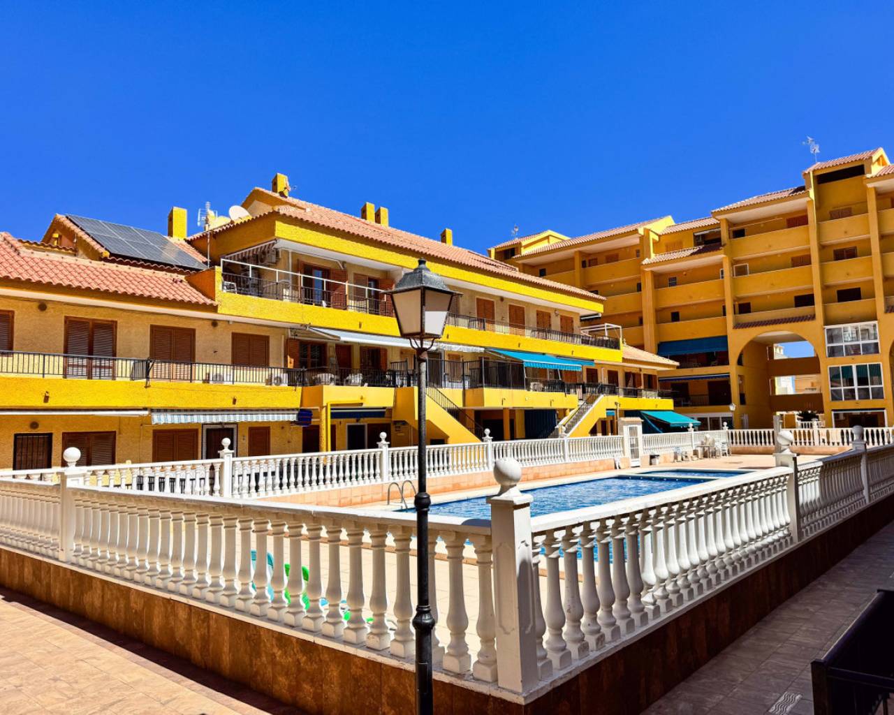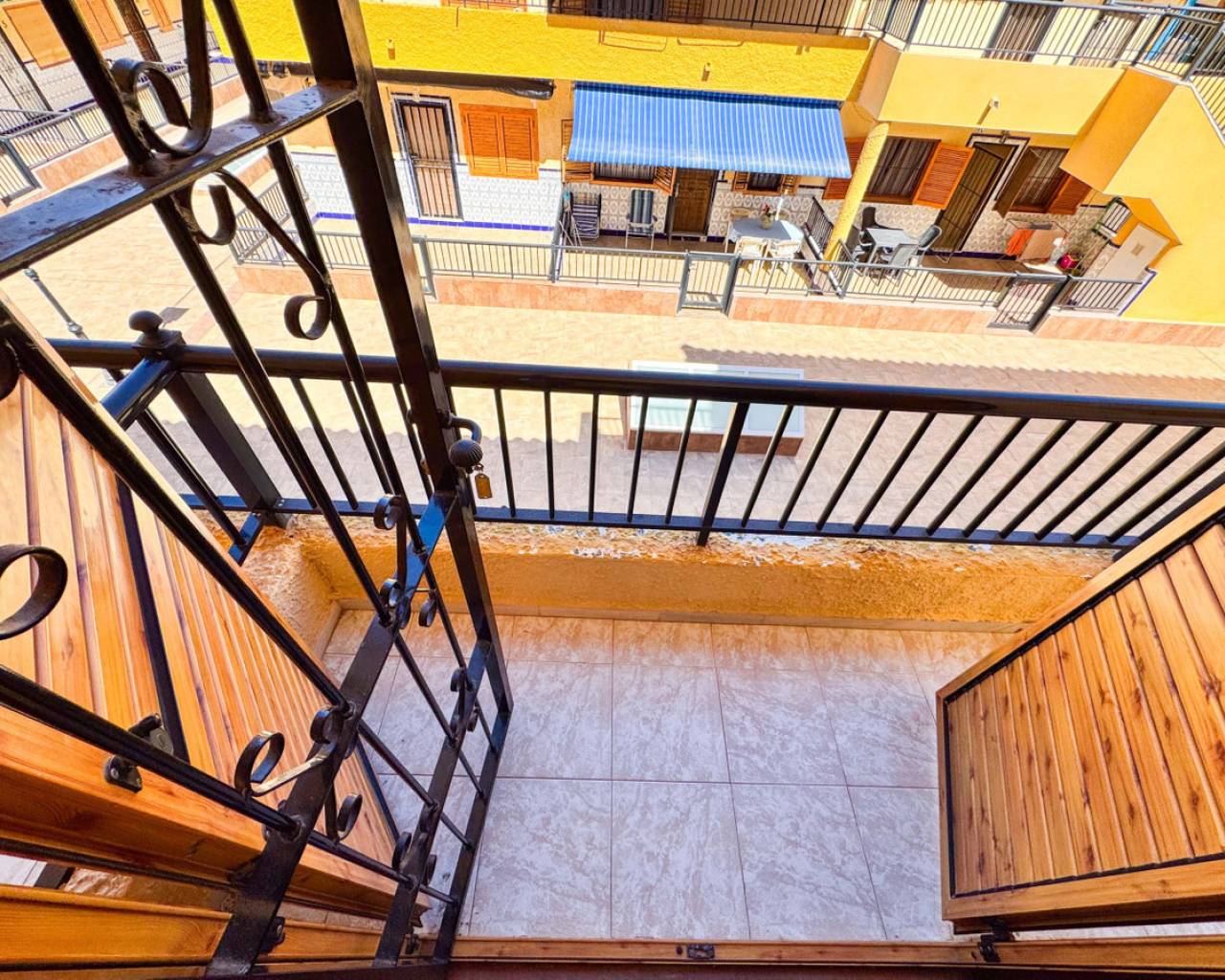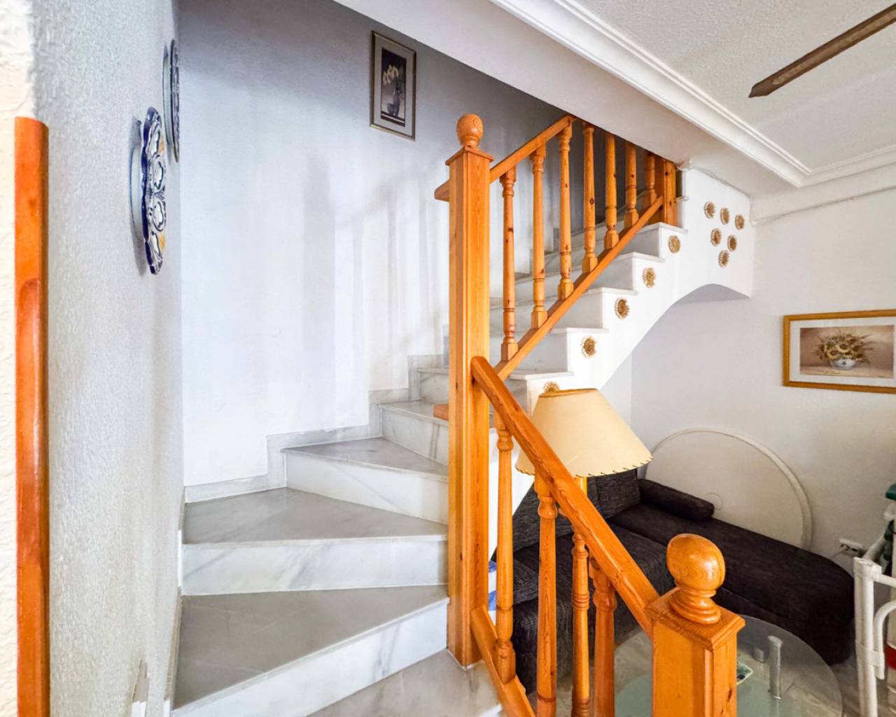 Townhouse in Viñamar 1, La Mata, Torrevieja featuring a community pool and a 15 m2 terrace. This property offers a comfortable layout perfect for coastal living. The ground floor has a spacious living-dining room, open kitchen, and a guest toilet. Upstairs there are two bedrooms with built-in wardrobes, one with a balcony, and a full bathroom. Located only 250 meters from La Mata beach, it is close to restaurants, supermarkets, and bus stops, providing easy access to amenities and leisure. The community pool offers a relaxing outdoor space for the family. This townhouse is ideal for those seeking a home in a quiet area with all conveniences nearby. We recommend a physical visit or virtual tour and floor plan request. It is also an attractive investment opportunity with seasonal rental service. Contact us for more information and to arrange a visit.