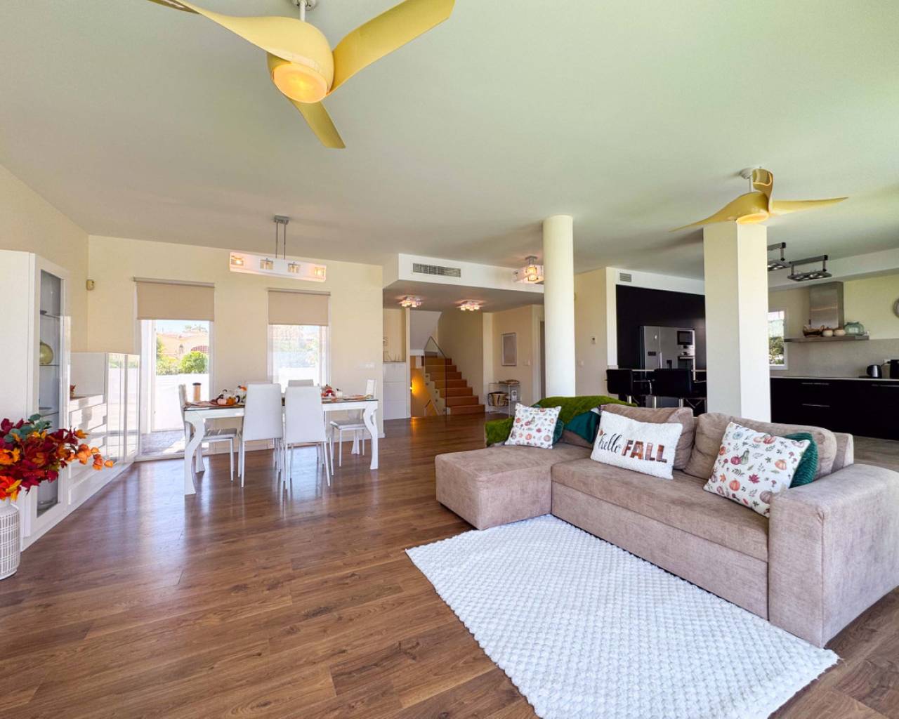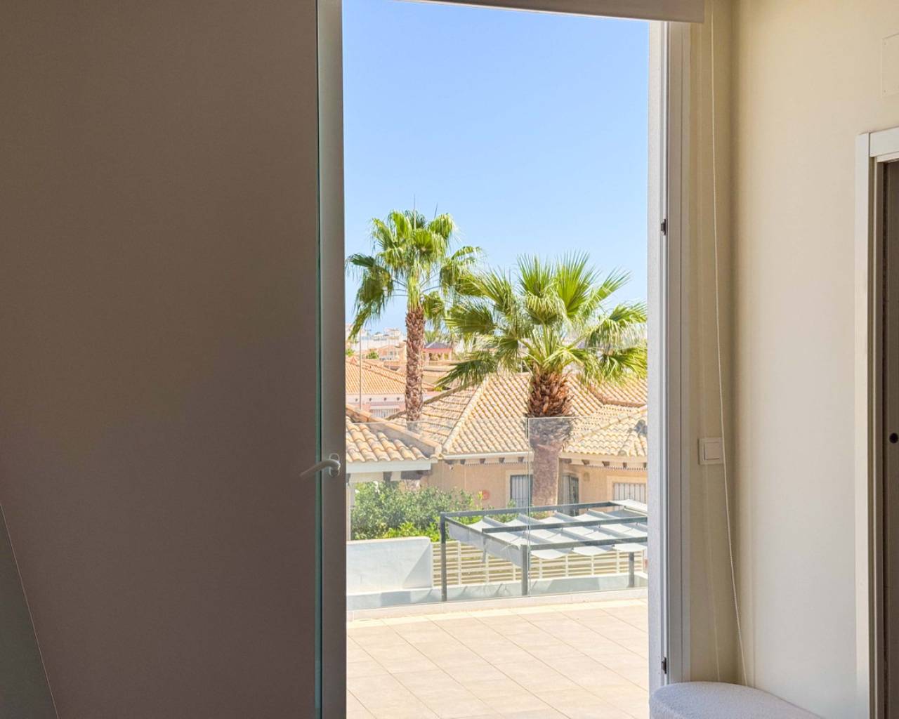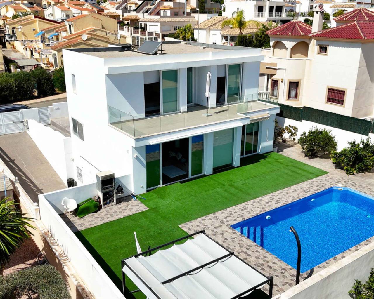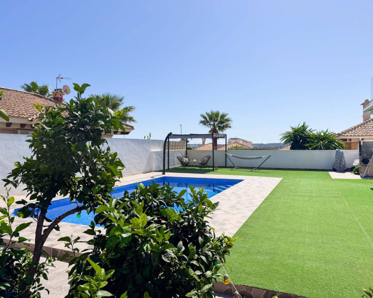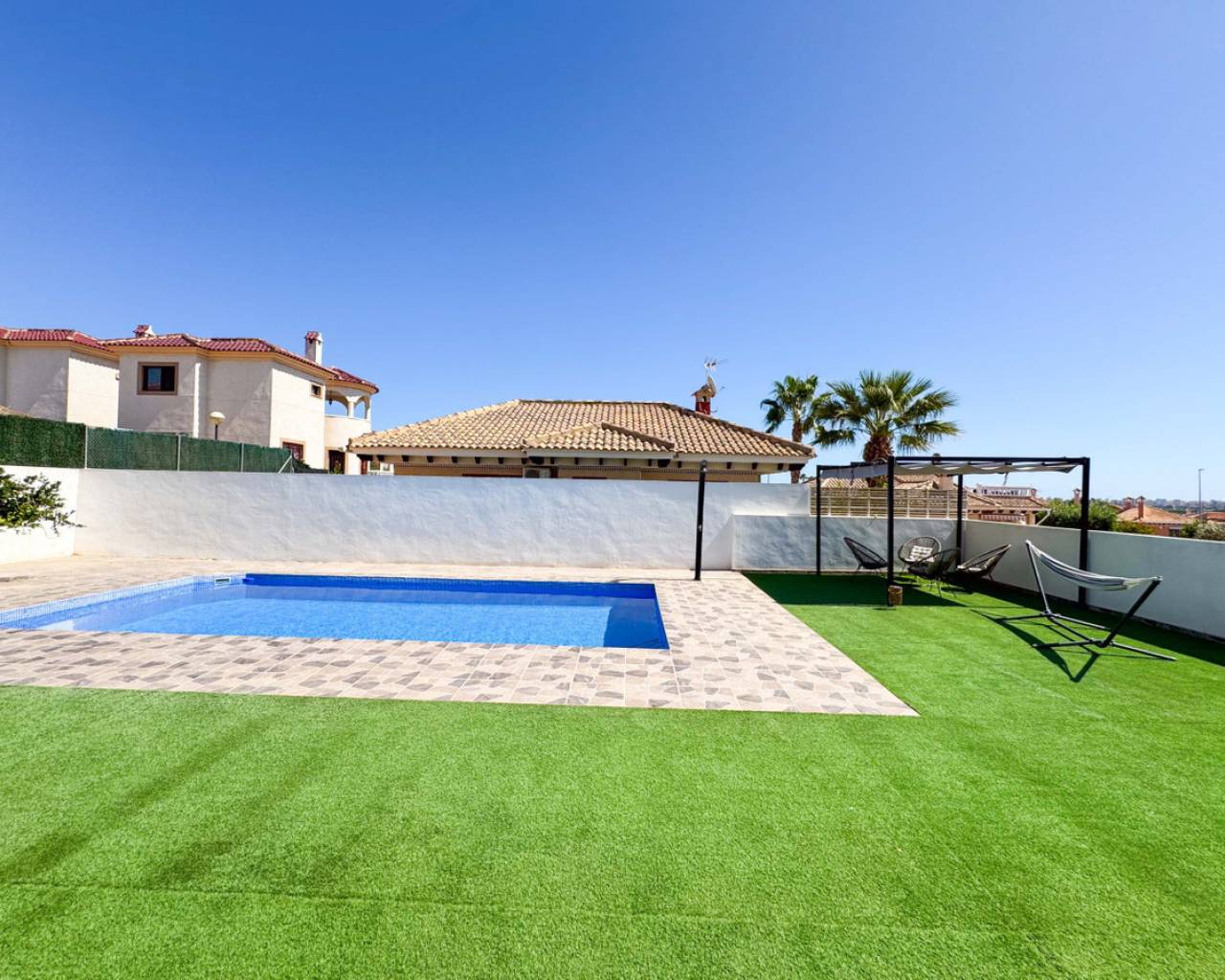 Modern villa located in San Fulgencio, La Marina Oasis area, featuring a sun-oriented pool, sauna, and double garage. This renovated and well-maintained property includes solar panels and two pergolas providing shade and elegance outdoors.The layout is spacious and practical: the upper floor has three bedrooms, two bathrooms, and a walk-in closet, plus a large balcony connecting the bedrooms, perfect for enjoying views and fresh air. The main floor offers one bedroom, a large open-plan kitchen, living room and dining area with views of the mountains and pool, creating a bright and welcoming space.The lower floor contains a laundry room, shower, sauna, two additional bedrooms, a large storage room fitted as a home cinema, a pool motor room, and a leisure room. This villa combines comfort, space, and amenities perfectly.La Marina Oasis in San Fulgencio is a quiet area with nearby services and easy access to beaches and shopping centers. It is an excellent option for permanent residence or investment with seasonal rental potential. Schedule a physical visit, virtual tour, or request floor plans. Contact us for more details and to arrange your visit.---