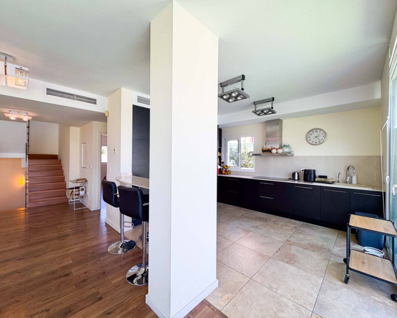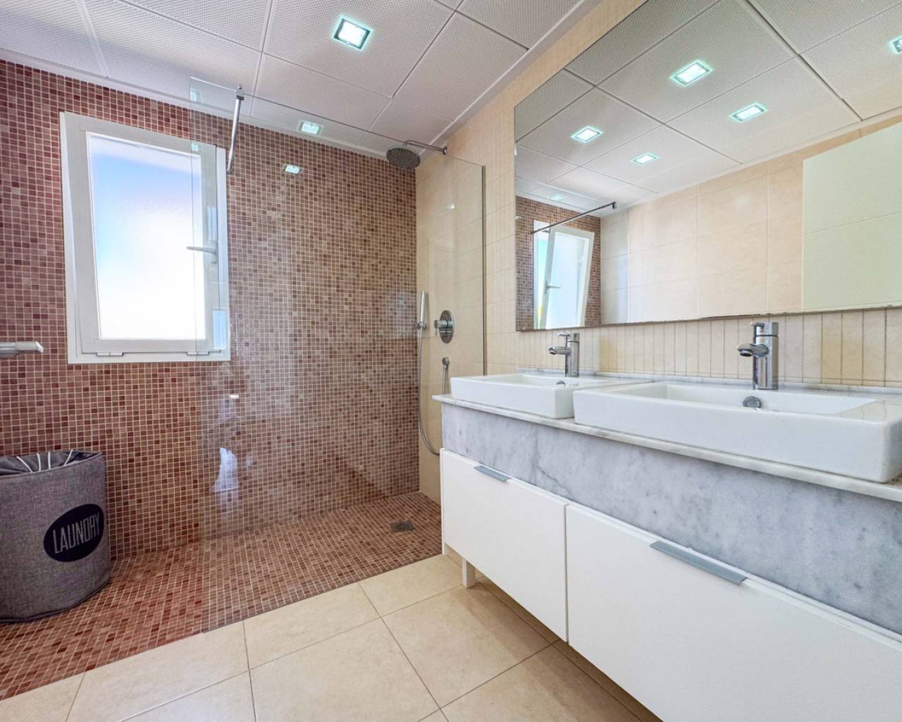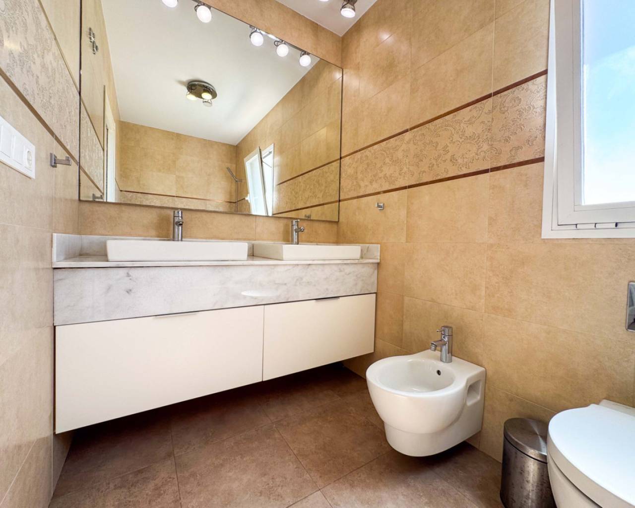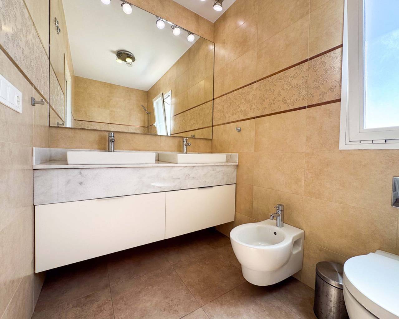 Modern villa located in San Fulgencio, La Marina Oasis area, featuring a sun-oriented pool, sauna, and double garage. This renovated and well-maintained property includes solar panels and two pergolas providing shade and elegance outdoors.The layout is spacious and practical: the upper floor has three bedrooms, two bathrooms, and a walk-in closet, plus a large balcony connecting the bedrooms, perfect for enjoying views and fresh air. The main floor offers one bedroom, a large open-plan kitchen, living room and dining area with views of the mountains and pool, creating a bright and welcoming space.The lower floor contains a laundry room, shower, sauna, two additional bedrooms, a large storage room fitted as a home cinema, a pool motor room, and a leisure room. This villa combines comfort, space, and amenities perfectly.La Marina Oasis in San Fulgencio is a quiet area with nearby services and easy access to beaches and shopping centers. It is an excellent option for permanent residence or investment with seasonal rental potential. Schedule a physical visit, virtual tour, or request floor plans. Contact us for more details and to arrange your visit.---