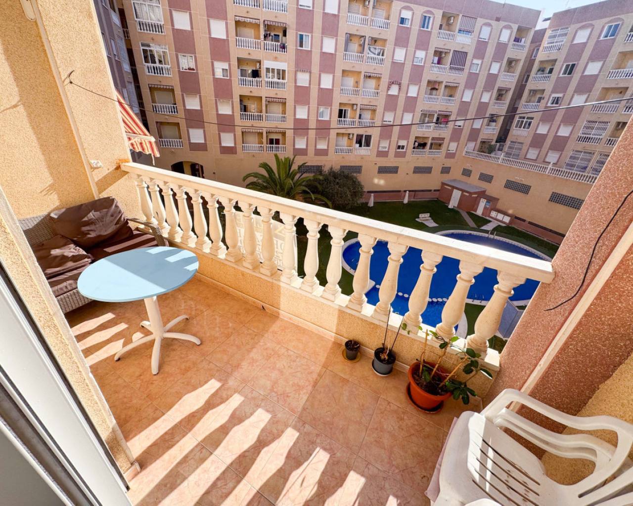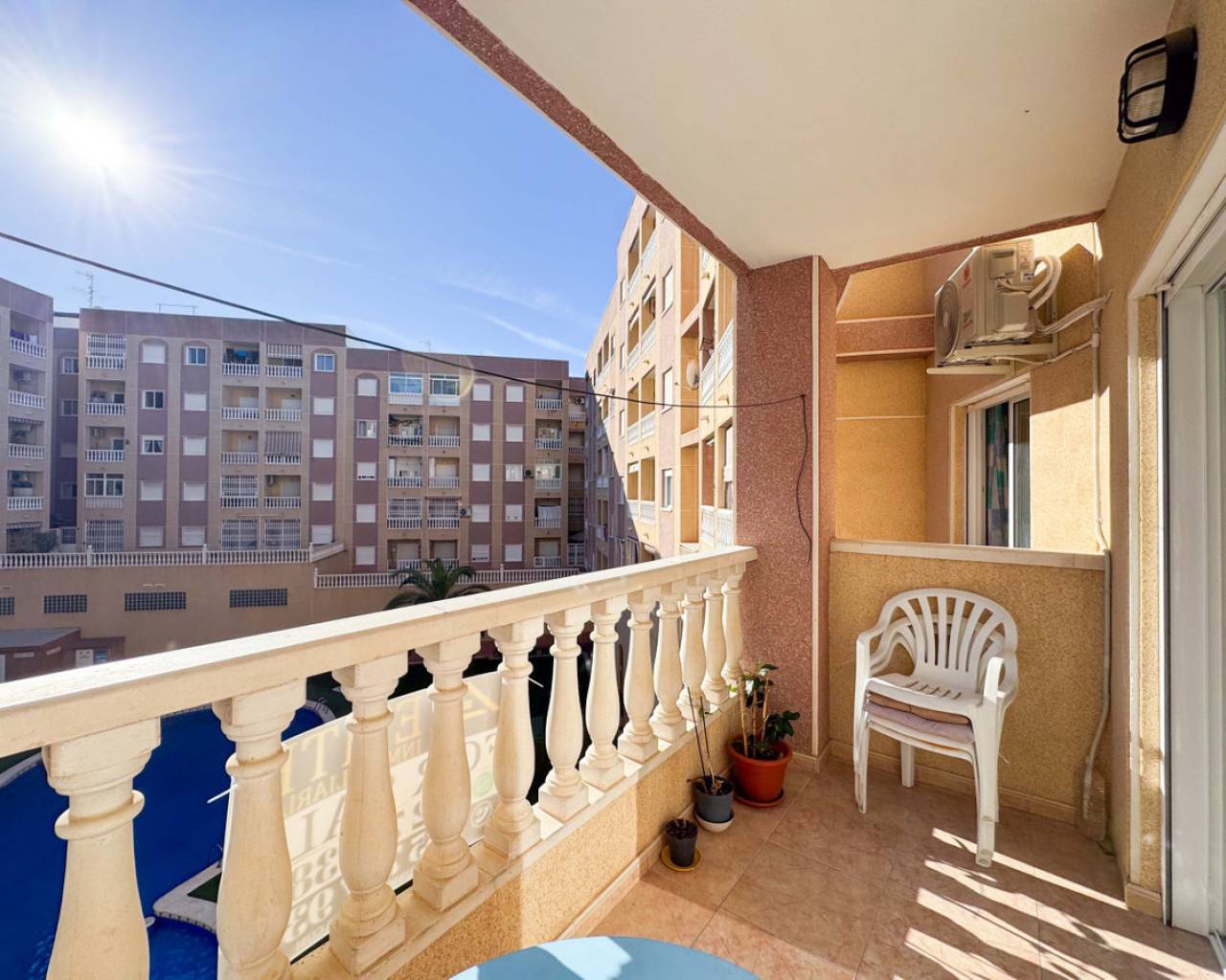 This apartment in Torrevieja, located near Parque de las Naciones, features a communal pool and open views from the balcony. Situated on the second floor of a building with an elevator, the bright living-dining room opens to a balcony overlooking the pool and green areas. The independent kitchen is equipped with modern appliances. It has two spacious bedrooms and a full bathroom, making it ideal for families or as an investment. Its proximity to green spaces and local services makes this property an attractive choice. We recommend scheduling an in-person visit to fully appreciate its features or requesting a virtual tour or floor plan. Additionally, this apartment is an excellent investment opportunity with seasonal rental potential. Contact us to arrange your visit and explore the benefits of this property in Torrevieja.