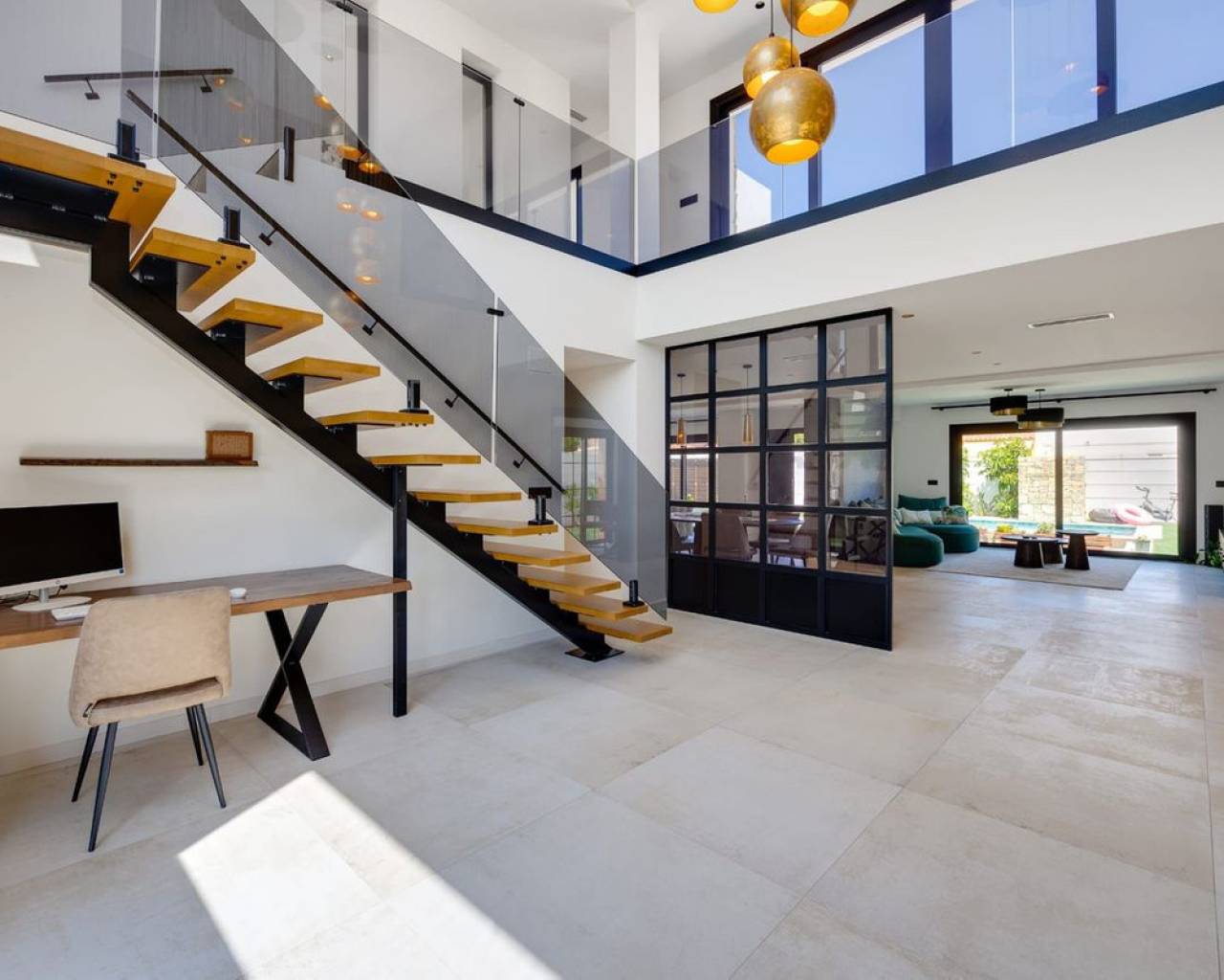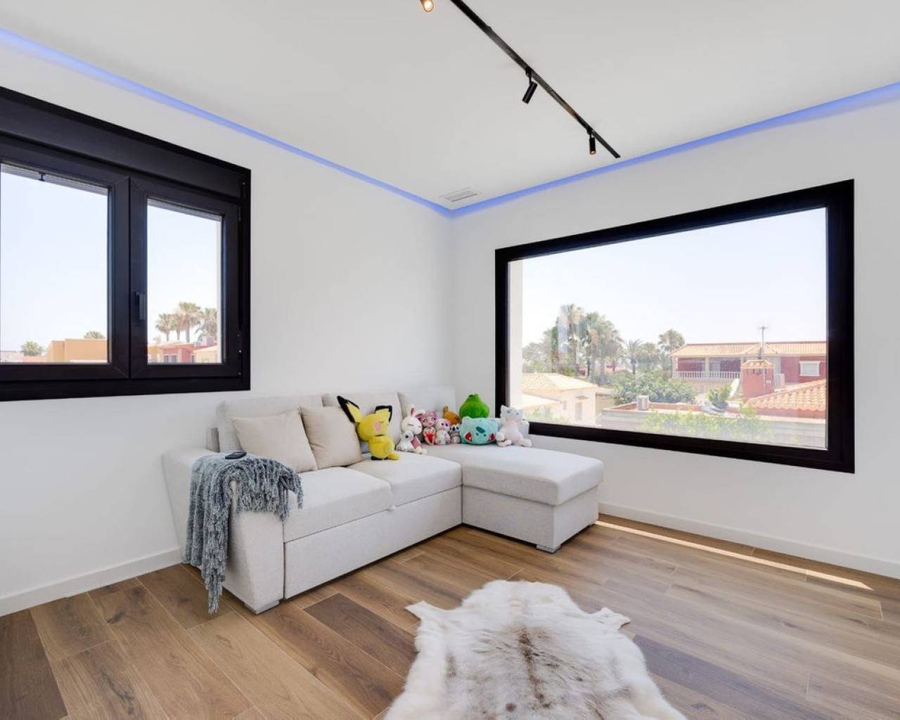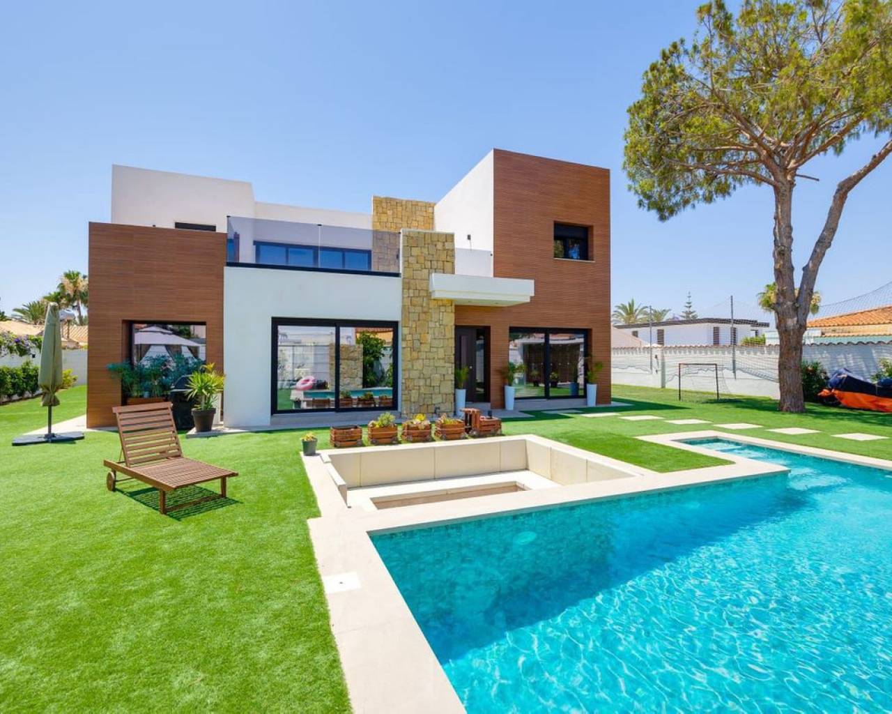 ✨ Ultra-Luxury Contemporary Villa | Torreta Florida, Torrevieja An exceptional detached villa in the prestigious and highly sought-after area of Torreta Florida, perfectly positioned near the famous pink salt lakes and just a short drive from Torrevieja's finest sandy beaches. Built in 2024 on an impressive 850 m² private plot, this striking contemporary home offers 250 m² of beautifully designed living space, combining architectural elegance with cutting-edge technology and premium finishes throughout. *Interior Highlights Set across two levels, the villa features soaring high ceilings and expansive windows, flooding the home with natural light and creating a remarkable sense of space and openness. 5 spacious bedrooms, designed for comfort and privacy 4 bathrooms in total, including luxury bathrooms with self-cleaning whirlpool tubs Two generous living rooms, offering flexible entertaining and relaxation spaces Dedicated office, ideal for remote working or a private study The villa stands out for its clean architectural lines, refined materials, and meticulous attention to detail, delivering a perfect balance of contemporary style and everyday comfort. *Designer Kitchen & Finishes The heart of the home is the bespoke Schmidt kitchen, valued at €25,000, featuring: High-end integrated appliances Induction hob with integrated extractor Premium ceramic finishes Matte black aluminium carpentry throughout the property Every element has been carefully selected to enhance both aesthetics and functionality. *Smart Home Technology This villa is fully equipped for modern living, including: Intelligent lighting system controlled via mobile app, Ethernet connections in all rooms, dining area, and kitchen, LG washer & dryer with WiFi connectivity, Centralised air conditioning and Hot water system via electric heater *Outdoor Living – A Private Mediterranean Retreat The exterior is nothing short of spectacular, designed to enjoy the Costa Blanca lifestyle year-round: Saltwater swimming pool with waterfall feature, Private mini football/soccer pitch, Sunken conversation pit, perfect for evening gatherings, Multiple outdoor dining and lounge areas, Fully equipped barbecue area, Manicured gardens and sunny terraces. This outdoor space offers complete privacy and is ideal for entertaining, relaxing, and enjoying long Mediterranean days with family and friends. ???? A Rare Opportunity - This turn-key luxury villa is a rare find in Torreta Florida — ideal as a permanent residence, luxury holiday home, or high-end investment property. Early viewing is highly recommended to truly appreciate the quality, space, and lifestyle this exceptional villa offers.