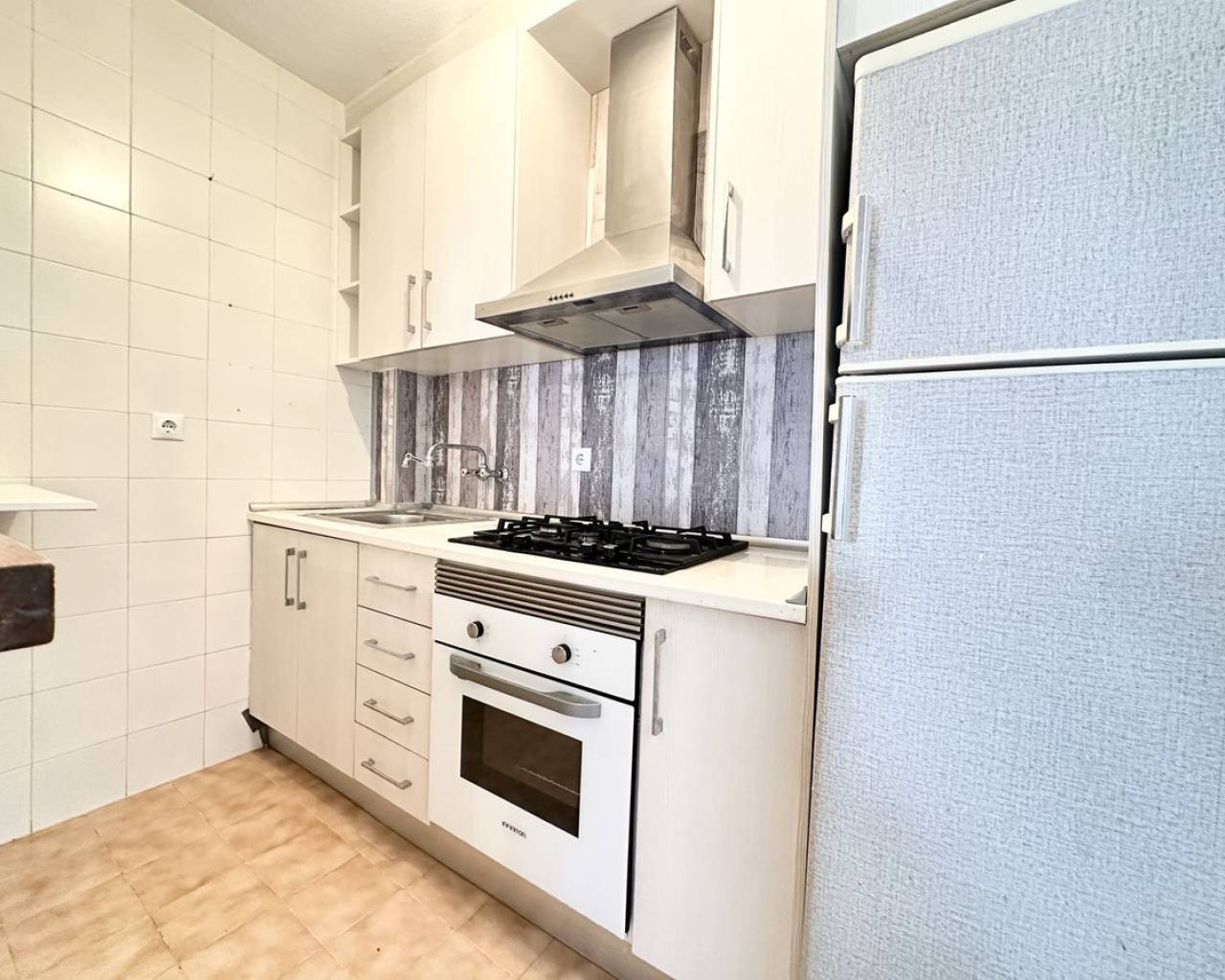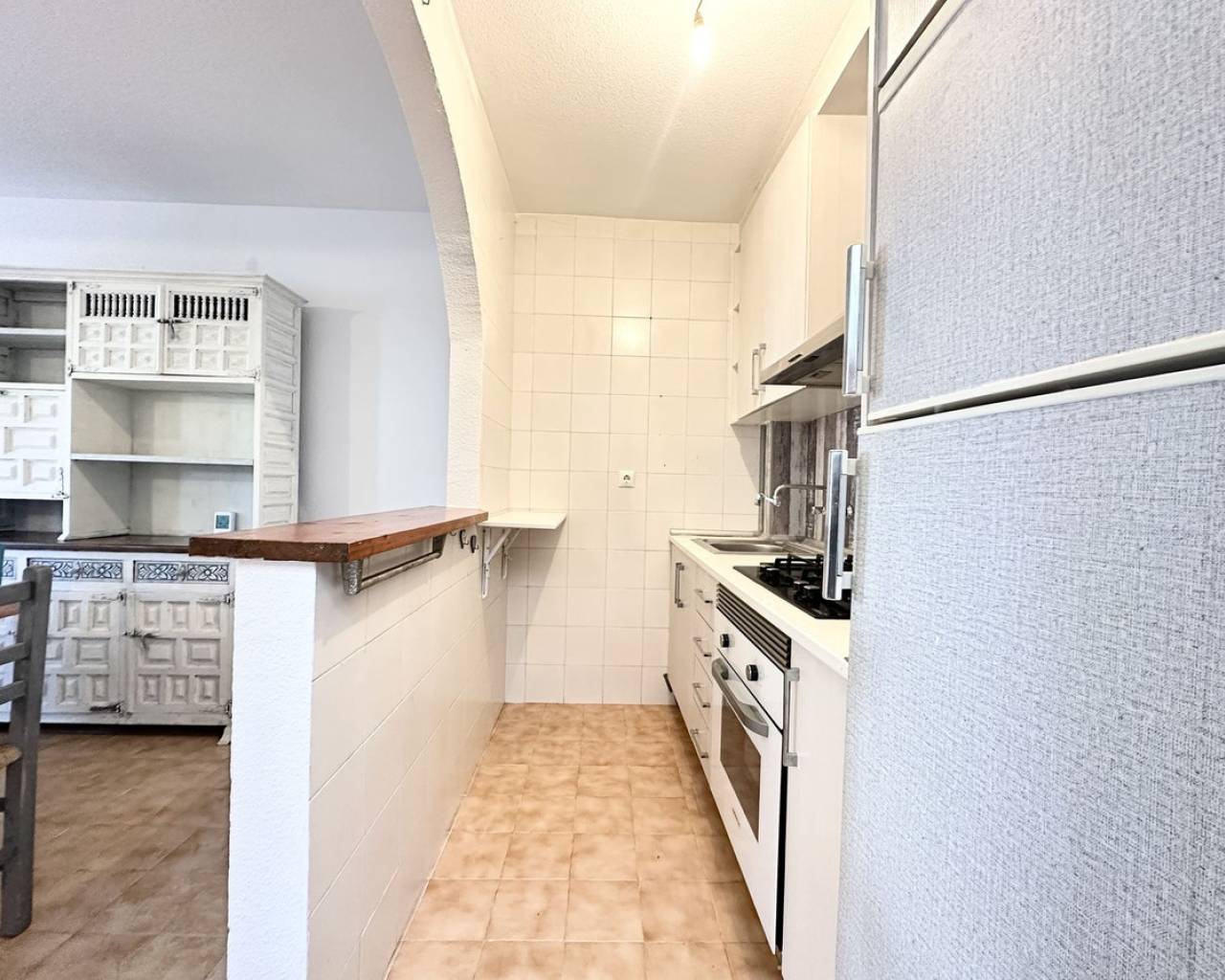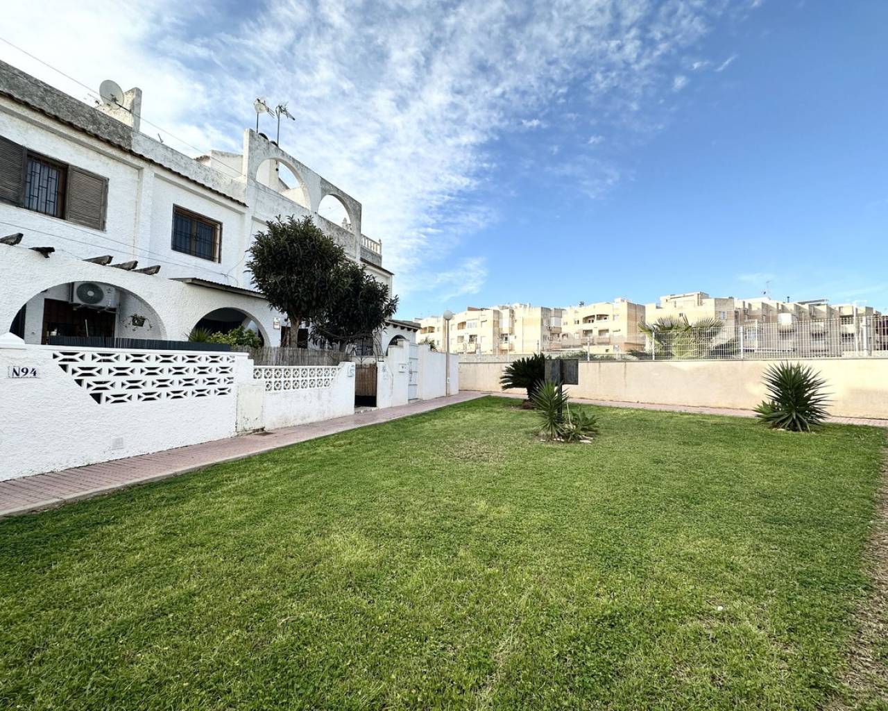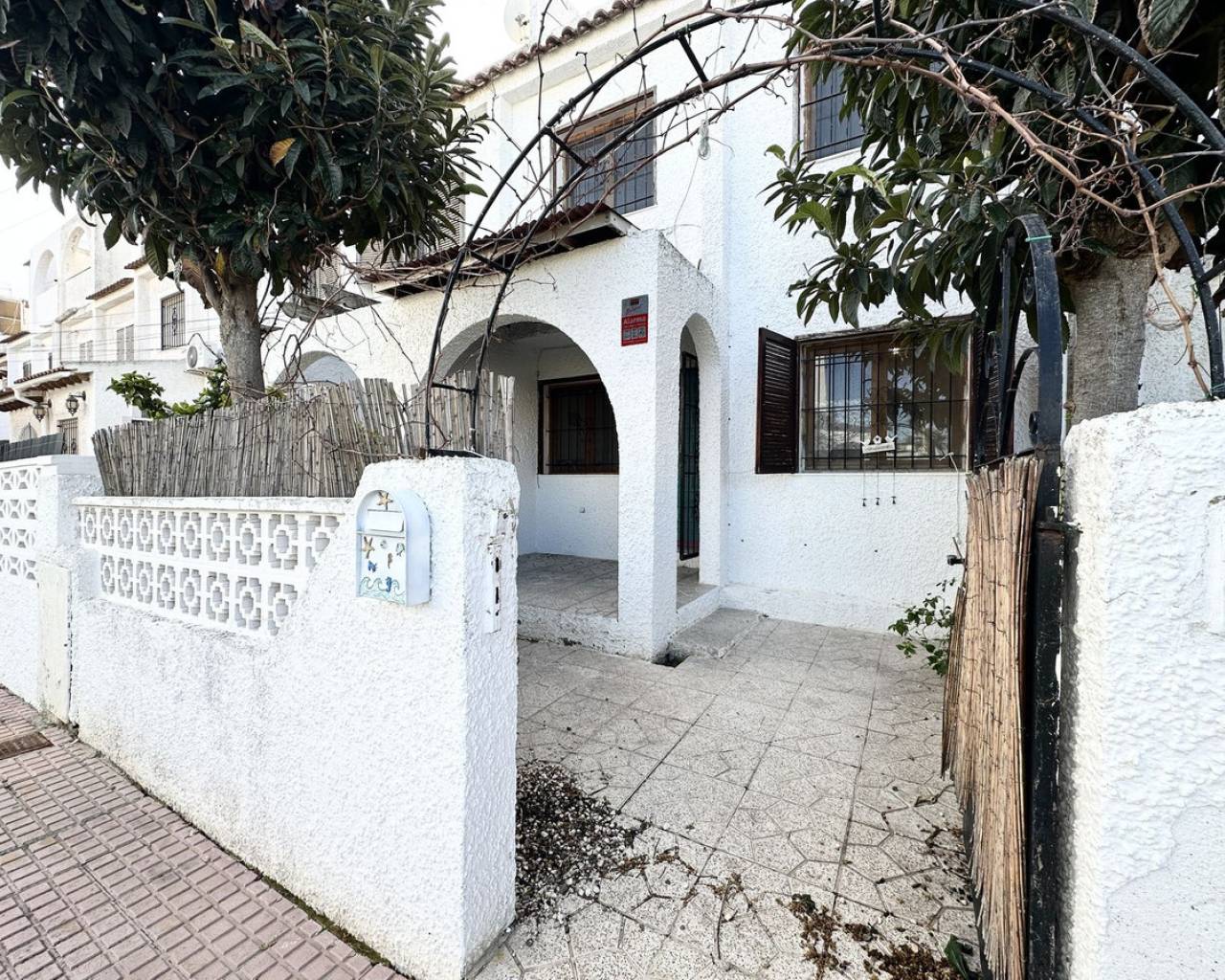 Great town house in popular Calas Blancas - close to the beach and the centre! Welcome to this charming town house in the sought-after urbanisation of Calas Blancas. Here you live just a few minutes' walk from the beautiful Playa de Los Locos, while having Torrevieja's lively centre within easy reach - perfect for those who want both peace and proximity to everything. The property offers a bright and open floor plan on the ground floor, where the living room and kitchen flow naturally together and create a pleasant atmosphere for both everyday life and social gatherings. On the first floor you will find two comfortable bedrooms and a bathroom, ideal for families or as a holiday home. At the top, a sunny solarium awaits, where you can enjoy the sun all day – the perfect place for relaxing, barbecuing or a glass of wine at sunset. Facilities and location Calas Blancas is known for its green surroundings, several communal swimming pools, sports facilities and even an Orthodox church – a safe and pleasant neighbourhood suitable for both residents and holidaymakers. Practical information Property Tax (IBI): APPROX- €226.19 per year Garbage Fee: €55.93 x 2 per year Community expenses: €180 per year This townhouse is a must-see for those who dream of a home near the sea, with all amenities close by. Contact the estate agent today to arrange a viewing - and experience why Calas Blancas is one of Torrevieja's most attractive areas