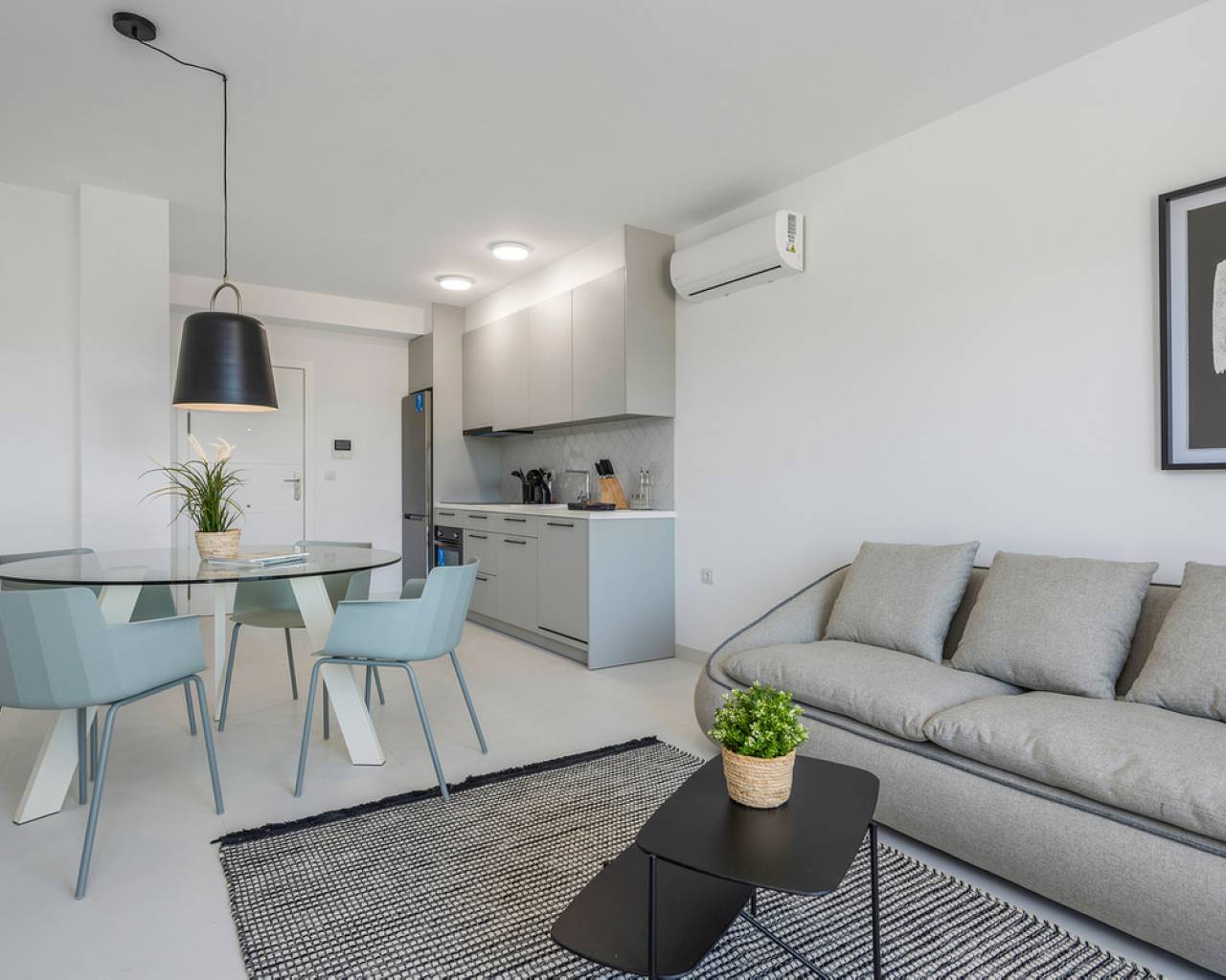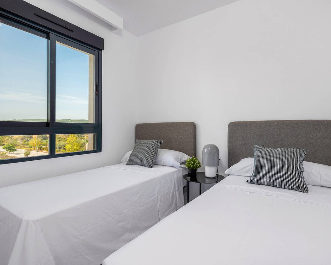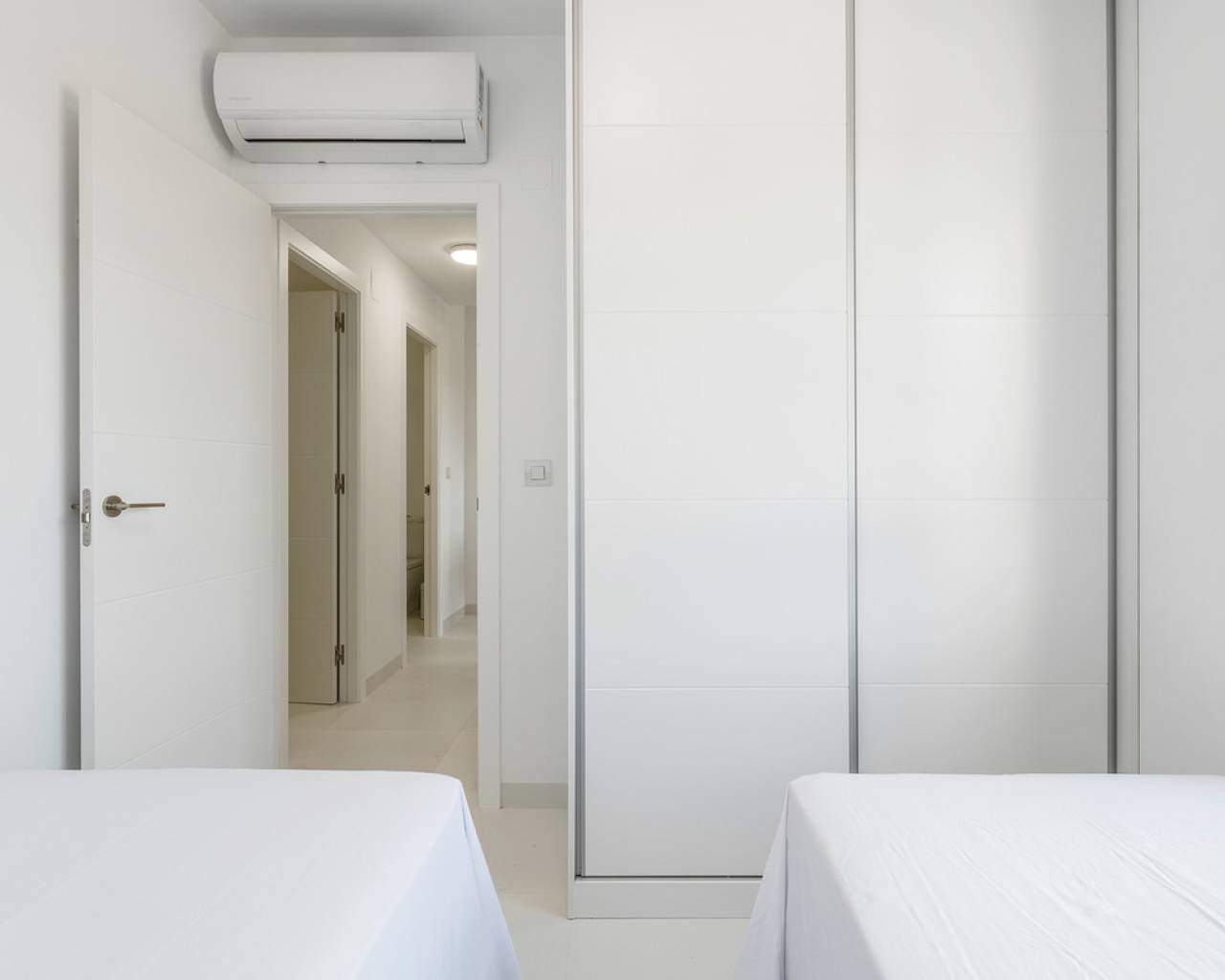 This beautiful 2-bedroom second floor apartment with terrace is situated in the sought after area of San Miguel de Salinas, within walking distance to all local bars, supermarkets and restaurants. The property will be sold fully furnished and consists of a bright living/dining room, a fully equipped open plan kitchen, two bedrooms with fitted wardrobes, two bathrooms with underfloor heating, and a sunny terrace. Storage room and parking space in the underground garage is also included in the price. There is a beautiful communal garden with swimming pool to enjoy the Spanish weather all year long! Close to all amenities and several leisure areas nearby such as beautiful golf courses, many shopping centres, and only 10 minutes from the pristine white sandy Orihuela Costa/Torrevieja beaches and La Zenia Boulevard shopping centre.