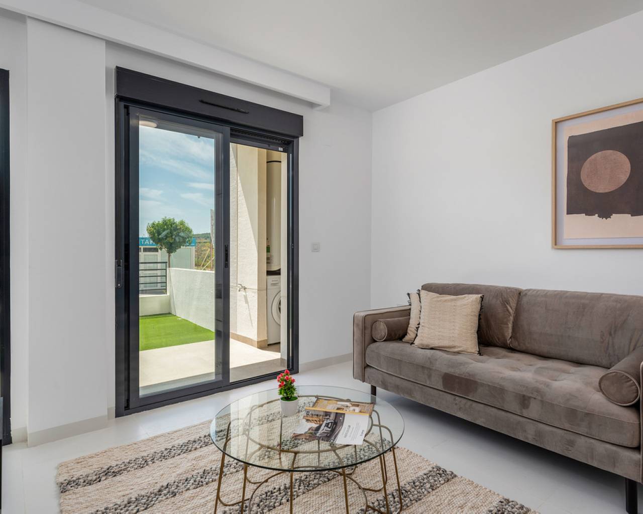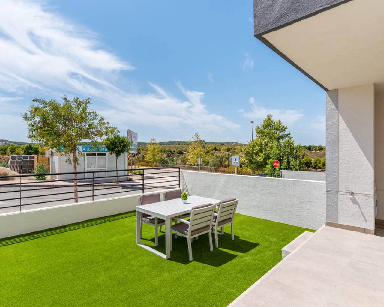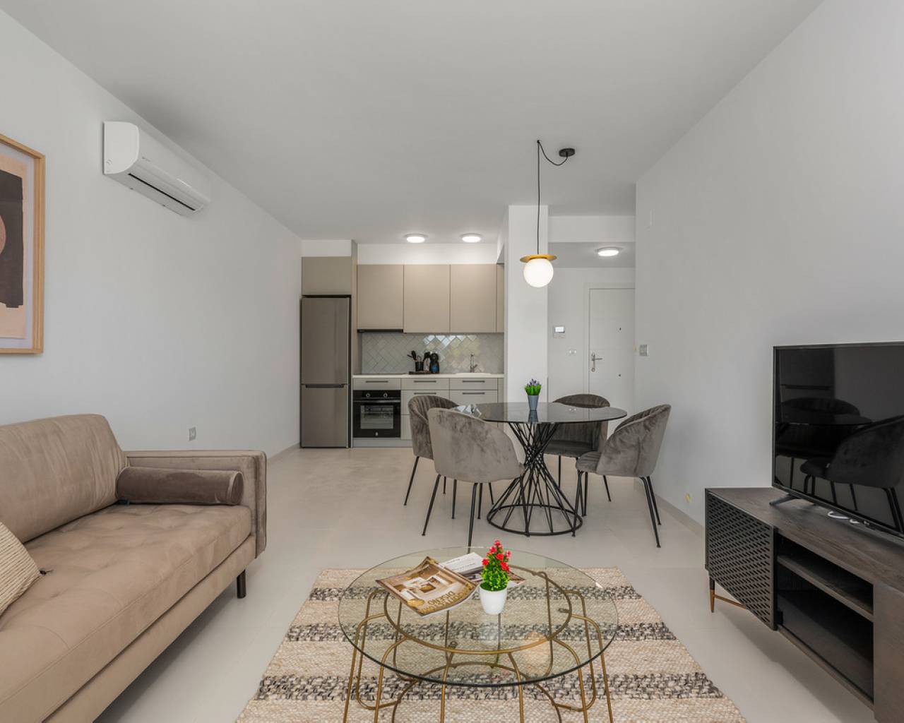 This beautiful 1-bedroom ground floor apartment with large private garden is situated in the sought after area of San Miguel de Salinas, within walking distance to all local bars, supermarkets and restaurants. The property will be sold fully furnished and consists of a bright living/dining room, a fully equipped open plan kitchen, one bedroom, one bathroom with underfloor heating, and a sunny terrace/garden (37sqm) with a handy utility room. There is a beautiful communal garden with swimming pool to enjoy the Spanish weather all year long! Close to all amenities and several leisure areas nearby such as beautiful golf courses, many shopping centres, and only 10 minutes from the pristine white sandy Orihuela Costa/Torrevieja beaches and La Zenia Boulevard shopping centre.