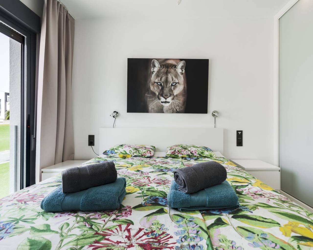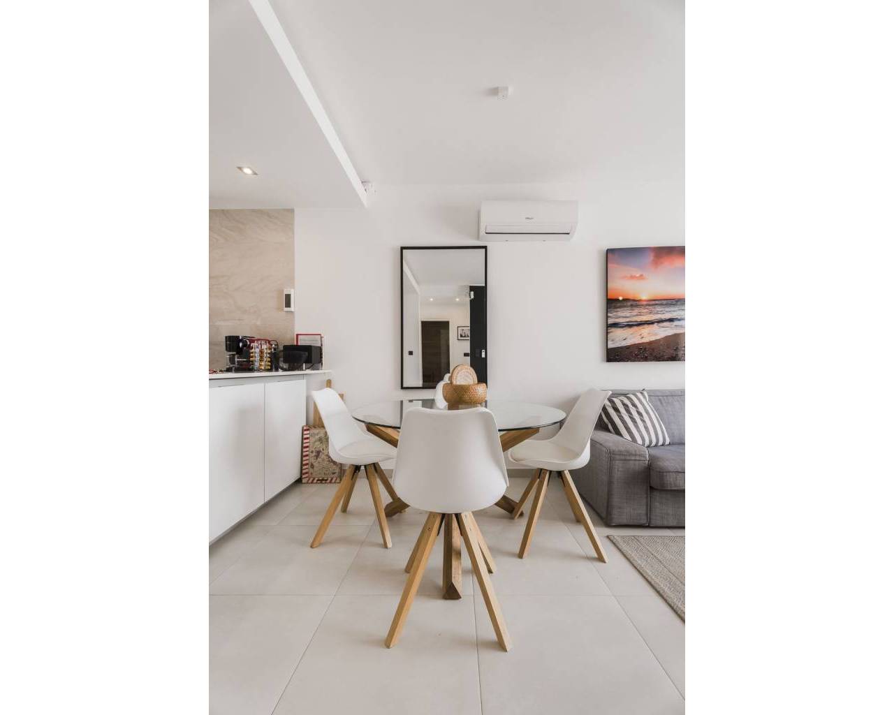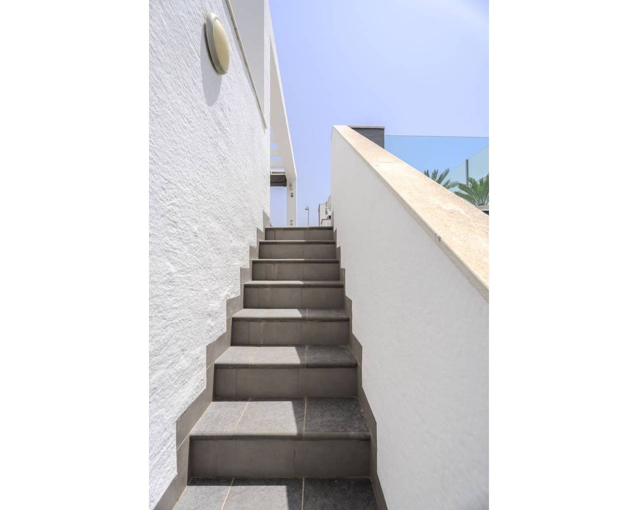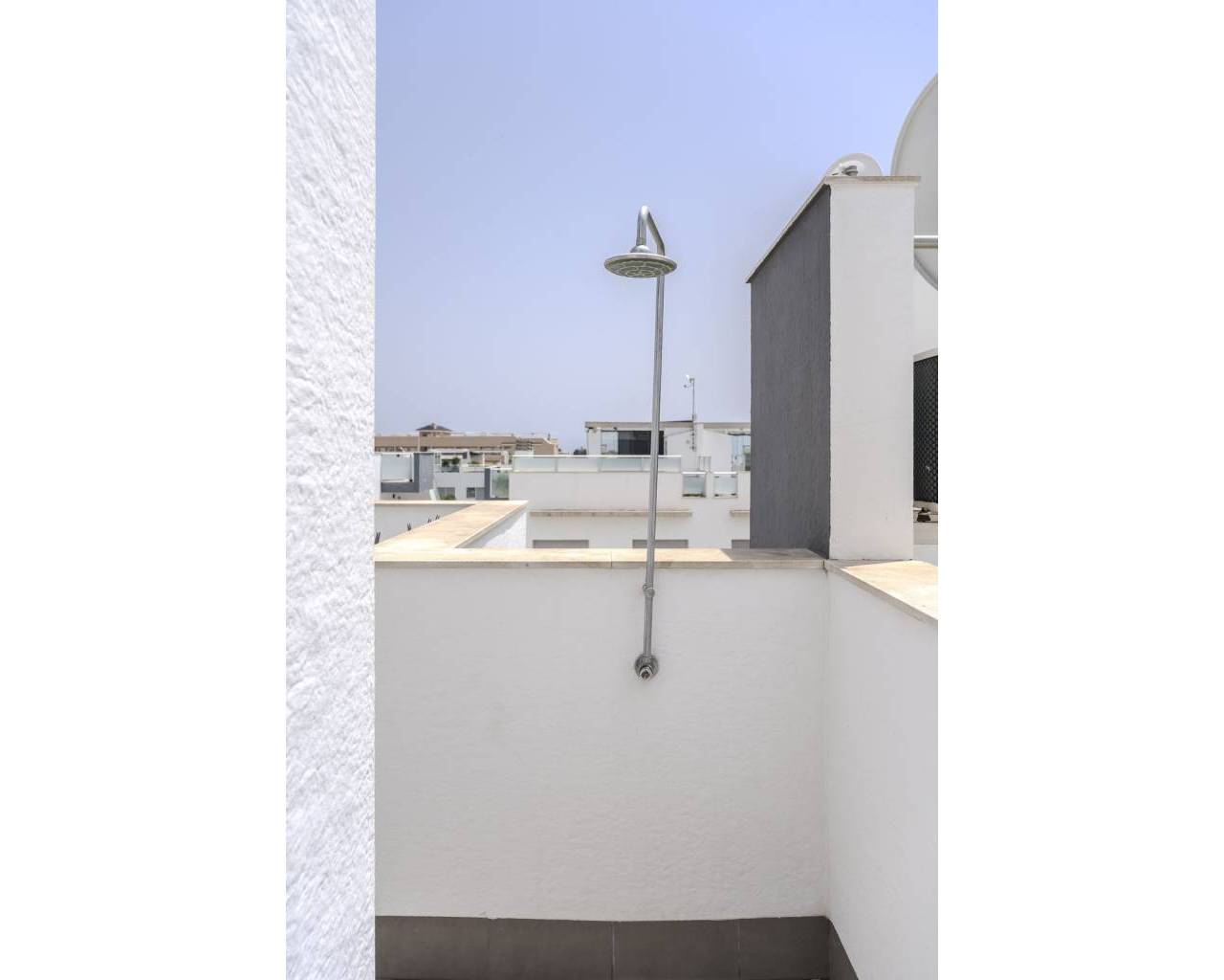 Welcome to this contemporary and stylish apartment, built in 2016, located in the sought-after area of Punta Prima on the Costa Blanca. Set within an exclusive, well-maintained residential community, this property is ideal as a holiday home, a permanent residence, or an investment with excellent rental potential. The apartment features two spacious bedrooms with fitted wardrobes and two fully tiled bathrooms, including one ensuite. The open-plan kitchen and living area create a bright, airy atmosphere and open directly onto a charming balcony. Upstairs, you will find a private roof terrace of approximately 58 m², complete with an outdoor kitchen, pergola, and ample space for sun loungers, dining, and relaxing under the Spanish sun. From the terrace, enjoy views of the surrounding area and glimpses of the Mediterranean Sea. Additional amenities include air conditioning throughout the apartment, a private garage space, and access to a communal pool area surrounded by sunbathing spots and greenery – perfect for both adults and children. The location is unbeatable, within walking distance to the sea, restaurants, shops, and all necessary services.