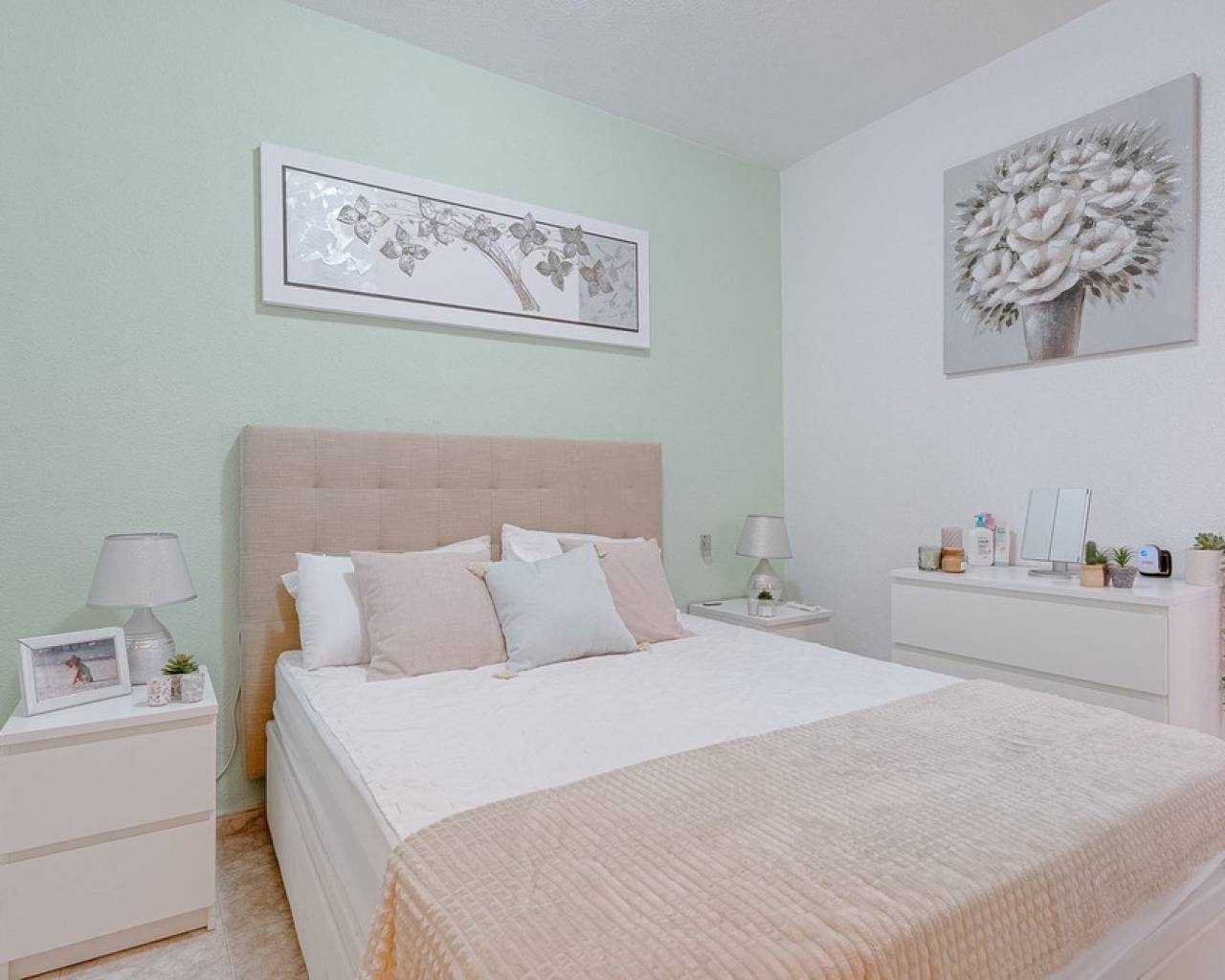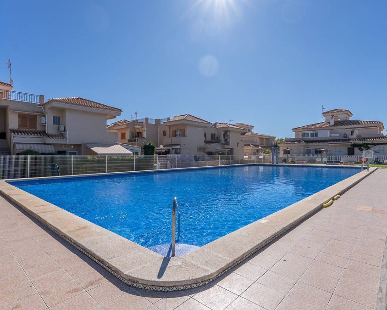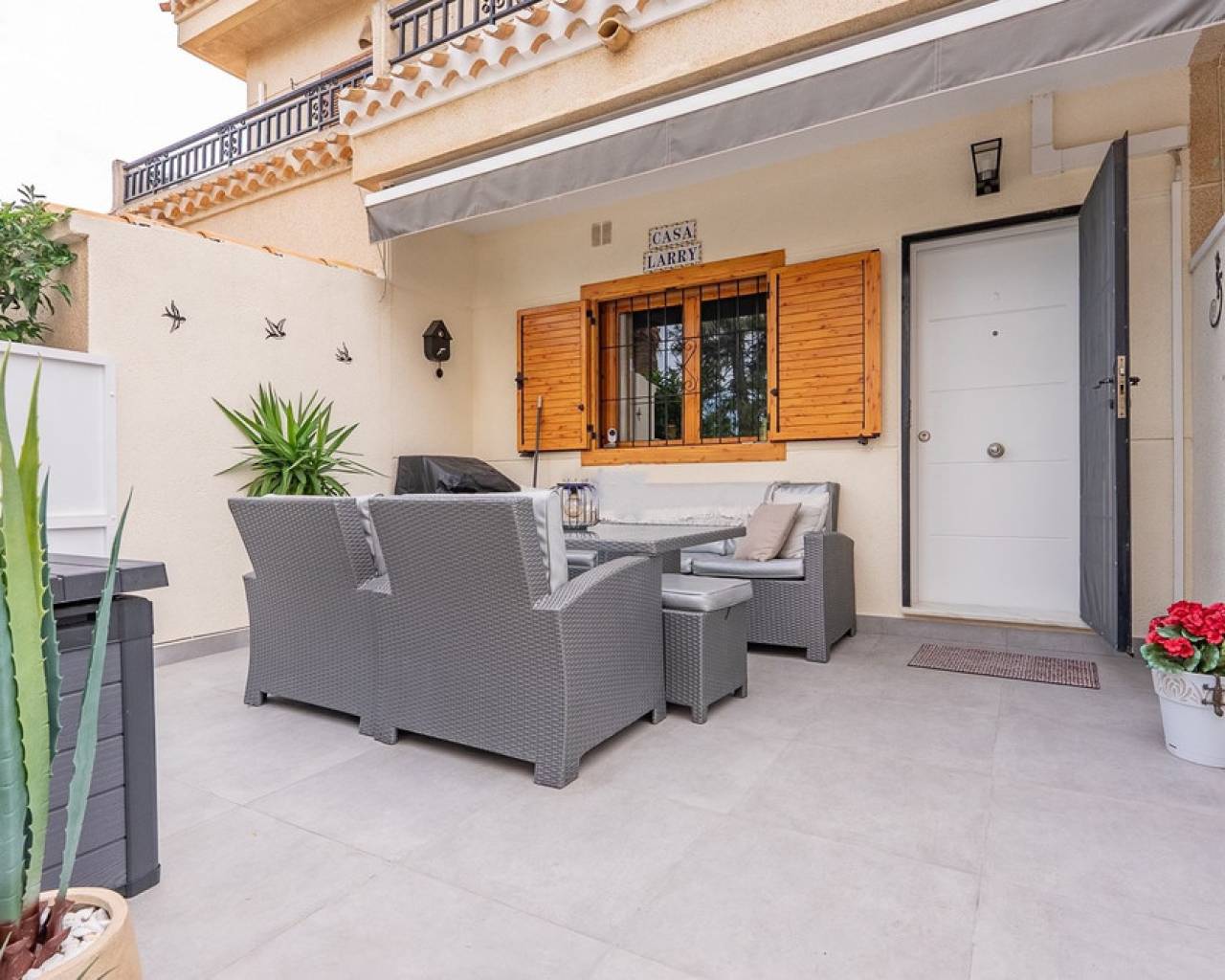 Modern 2-bedroom townhouse for sale in Playa Flamenca, Costa Blanca This modern 2-bedroom, 2-bathroom townhouse is located in the prestigious area of Playa Flamenca, Costa Blanca, one of the most sought-after locations for living, holiday homes and property investment on the Spanish coast. Thanks to its excellent location, all essential amenities are within walking distance, including restaurants, cafés, supermarkets, the popular La Zenia Boulevard shopping centre, and the renowned beaches of Orihuela Costa. The property is situated in a well-maintained, secure residential complex with a communal swimming pool, offering privacy, comfort and a peaceful environment. Despite its quiet setting, the townhouse enjoys a central location, making it an ideal choice for permanent living, holiday use or rental investment on the Costa Blanca. At the front of the property, there is an elegant terrace — perfect for enjoying morning coffee or outdoor dining under the Mediterranean sun. The ground floor features a spacious and bright living area with a dining space and an open-plan kitchen. The kitchen has been fully renovated, boasts a modern design and is equipped with high-quality appliances. A stylish bathroom with a walk-in shower is also located on this level. The upper floor offers two spacious double bedrooms, both with built-in wardrobes and individual air conditioning units. The master bedroom has access to a private balcony, while the second bedroom opens directly onto a large rooftop solarium terrace. This sun-drenched outdoor space is ideal for relaxing, entertaining guests and enjoying panoramic sea views and views of the surrounding area. This townhouse is an excellent opportunity for those looking to buy property near the sea in Spain, who value quality, comfort and a prime location. The excellent condition of the home, close proximity to the beaches and the well-developed local infrastructure make it one of the best real estate opportunities in Playa Flamenca.