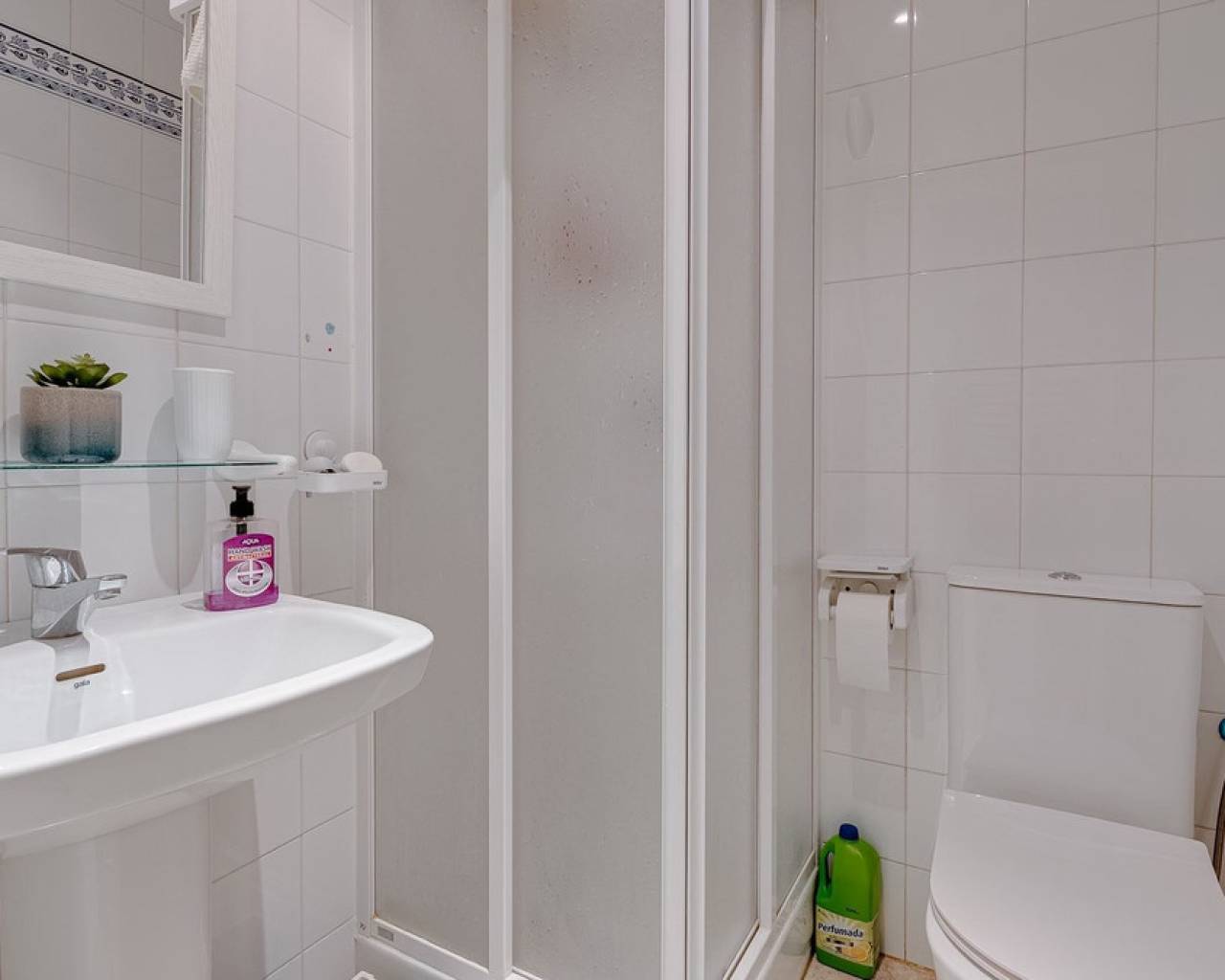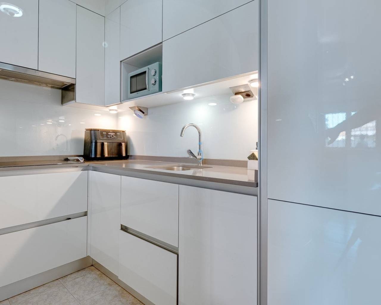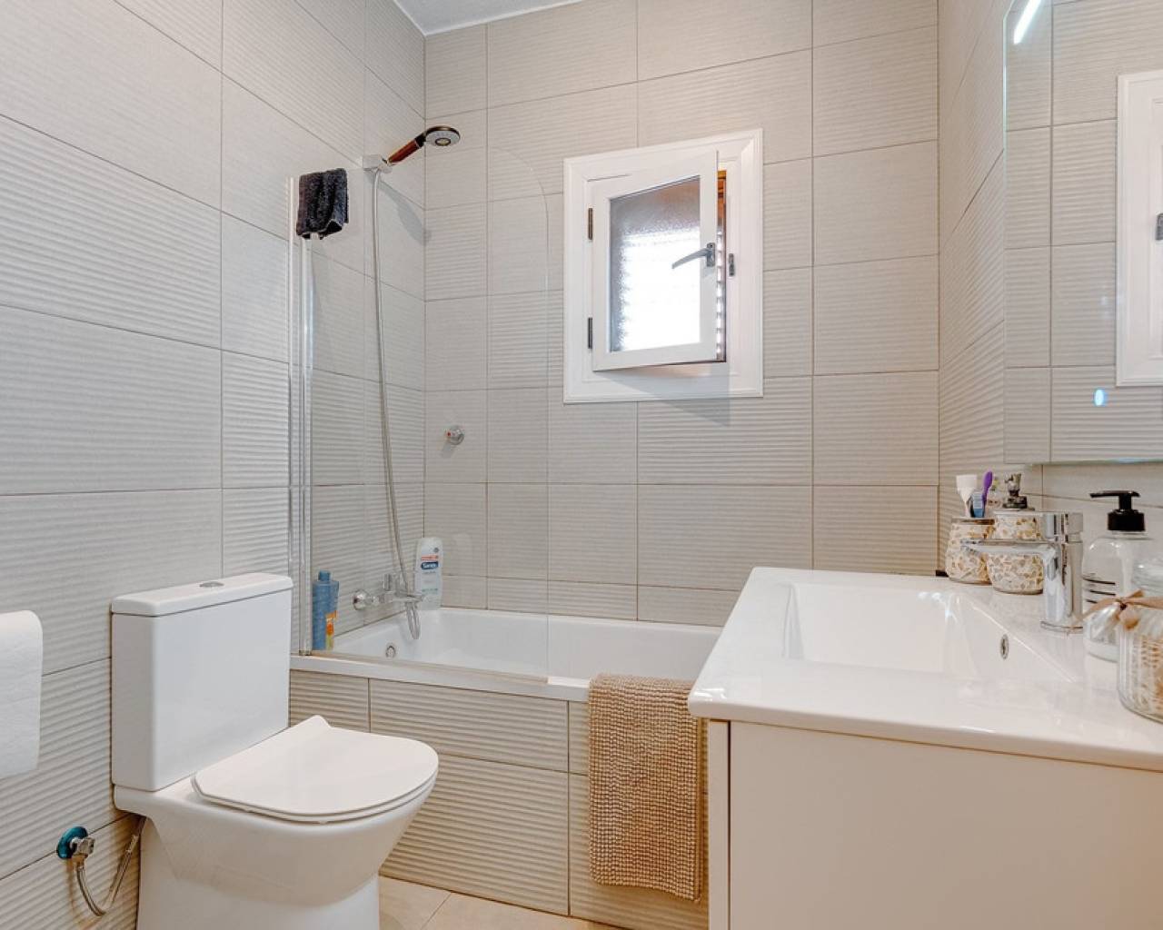 Modern 2-bedroom townhouse for sale in Playa Flamenca, Costa Blanca This modern 2-bedroom, 2-bathroom townhouse is located in the prestigious area of Playa Flamenca, Costa Blanca, one of the most sought-after locations for living, holiday homes and property investment on the Spanish coast. Thanks to its excellent location, all essential amenities are within walking distance, including restaurants, cafés, supermarkets, the popular La Zenia Boulevard shopping centre, and the renowned beaches of Orihuela Costa. The property is situated in a well-maintained, secure residential complex with a communal swimming pool, offering privacy, comfort and a peaceful environment. Despite its quiet setting, the townhouse enjoys a central location, making it an ideal choice for permanent living, holiday use or rental investment on the Costa Blanca. At the front of the property, there is an elegant terrace — perfect for enjoying morning coffee or outdoor dining under the Mediterranean sun. The ground floor features a spacious and bright living area with a dining space and an open-plan kitchen. The kitchen has been fully renovated, boasts a modern design and is equipped with high-quality appliances. A stylish bathroom with a walk-in shower is also located on this level. The upper floor offers two spacious double bedrooms, both with built-in wardrobes and individual air conditioning units. The master bedroom has access to a private balcony, while the second bedroom opens directly onto a large rooftop solarium terrace. This sun-drenched outdoor space is ideal for relaxing, entertaining guests and enjoying panoramic sea views and views of the surrounding area. This townhouse is an excellent opportunity for those looking to buy property near the sea in Spain, who value quality, comfort and a prime location. The excellent condition of the home, close proximity to the beaches and the well-developed local infrastructure make it one of the best real estate opportunities in Playa Flamenca.