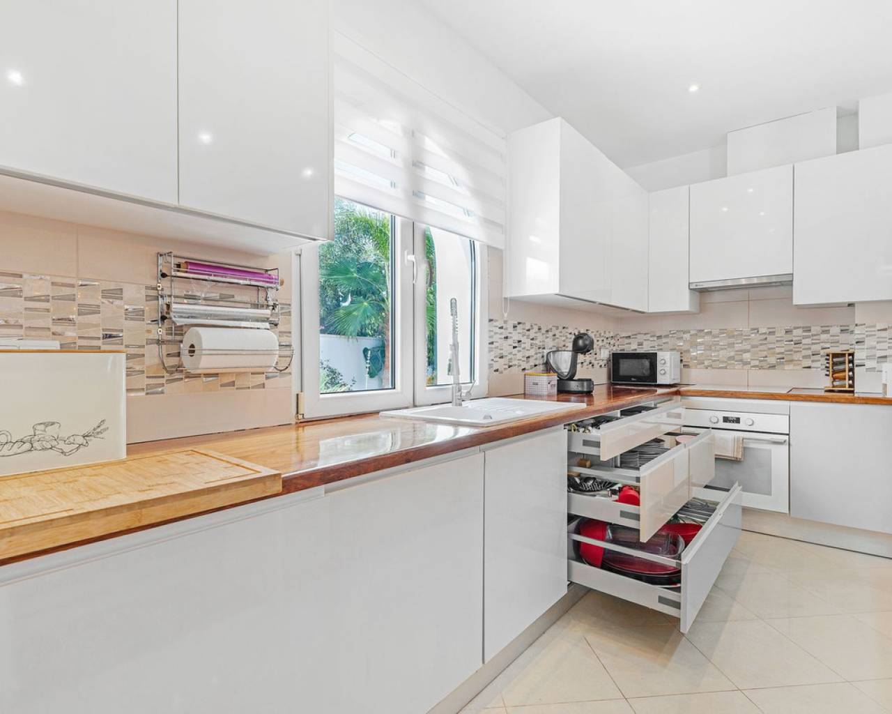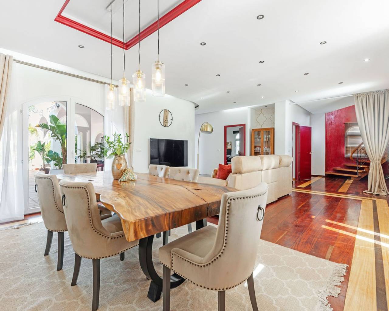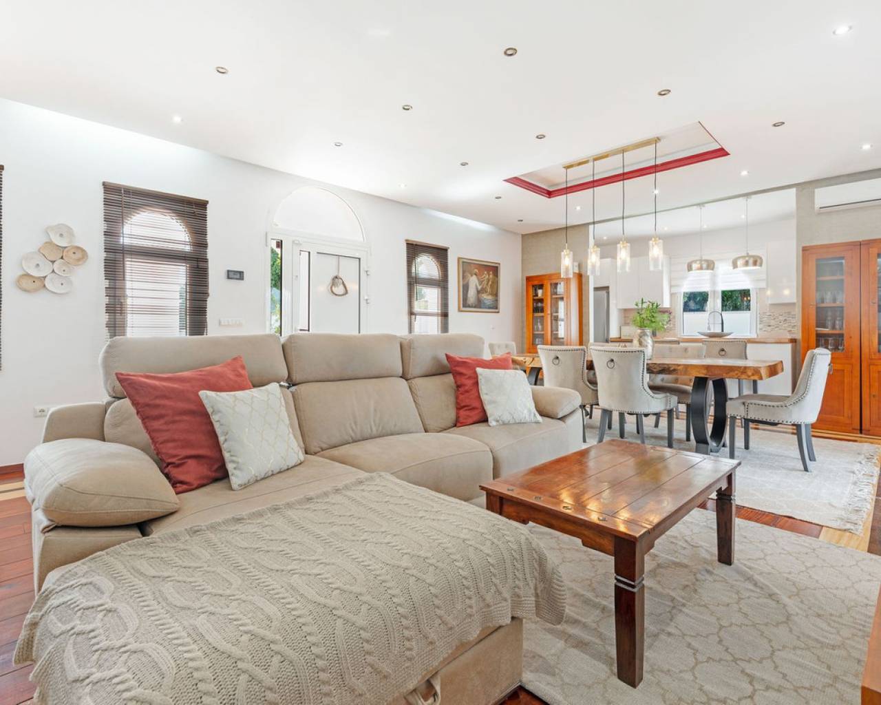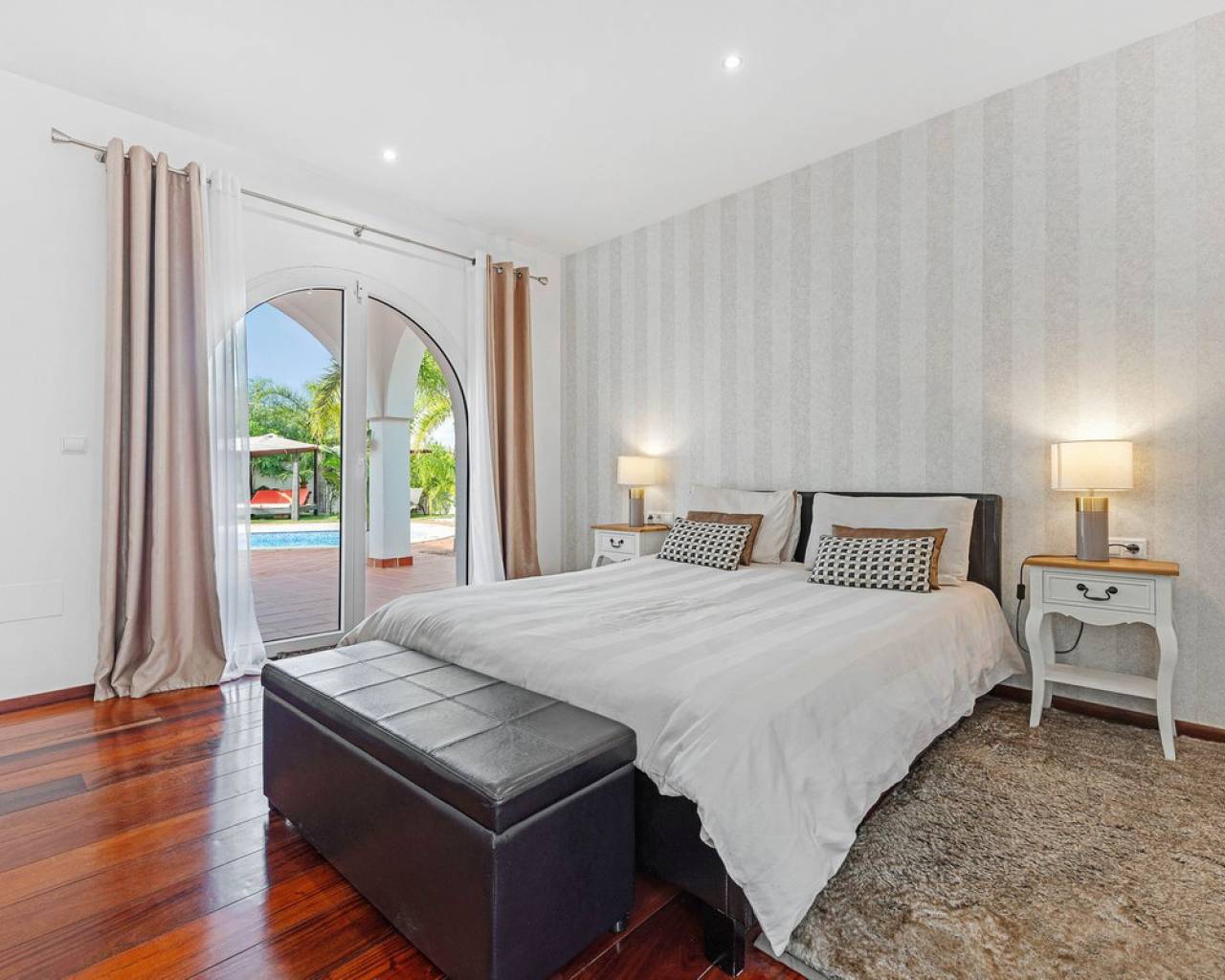 Located in the sought-after Pla Lloma area of Busot, near the charming village of Busot, lies this remarkable residence. Villa "Laura Luiza" is constructed with high-quality noble materials and spans over 350 m². Situated on an exceptionally private plot that exceeds three times its size, this villa enjoys a convenient location just a 10-minute drive from Busot village, 20 minutes from the pristine beaches of El Campello-San Juan, and only 30-35 minutes from Alicante and its international airport. Access to the stunning villa is via a residential road to the ornate hand crafted, automated entrance gates which open up to a long, tree lined drive way leading to the entrance of Villa "Laura Luiza". Villa Laura Luiza combines spacious accommodations, robust construction, stunning exteriors and interiors, breathtaking views, exceptional privacy, and a unique blend of character and charm—qualities rarely found together on the market. Ground Floor: Spacious open-plan lounge, dining, and kitchen area. The kitchen comes fully equipped with white goods. There are two double bedrooms on the ground floor. The master bedroom, generously sized at approximately [23] m², includes an en-suite shower room. A guest toilet is conveniently located next to the second bedroom, near the charming circular turret, which provides access to the second floor. Direct access to the ground floor terraces around the swimming pool area. Upper floor: 4 double suites with en-suite shower rooms on this level. The master bedroom also offers a dressing area and large bathroom with his and hers was basins, shower and bathtub. The 2 larger bedrooms enjoy direct access to a large terrace affording breathtaking views of the mountain range, the swimming pool and gardens. Bedrooms 3 and 4 benefit from their own private balconies. Exteriors: 220m2 swimming pool terrace, very private with open long distance views to the rear. Free-form swimming pool and covered terrace areas and day bed and BBQ. Manicured, landscaped gardens with mature trees terraced, laid to gravel and impressive driveway and impressive exterior lighting. Villa Laura Luiza is ideal for families looking for a permanent residence or investors seeking a high-end property for the luxury holiday rental market.