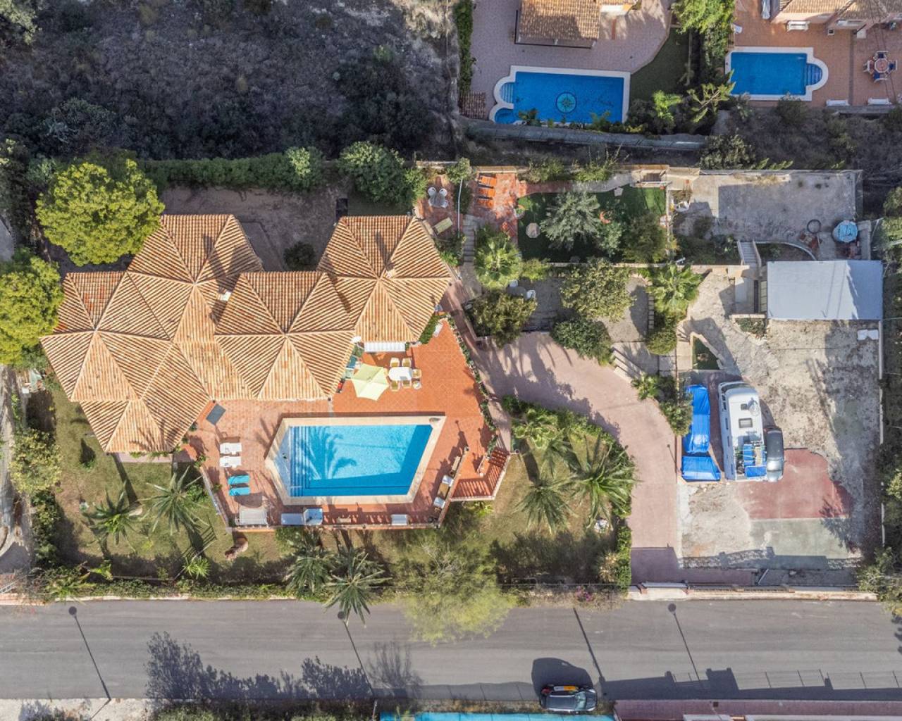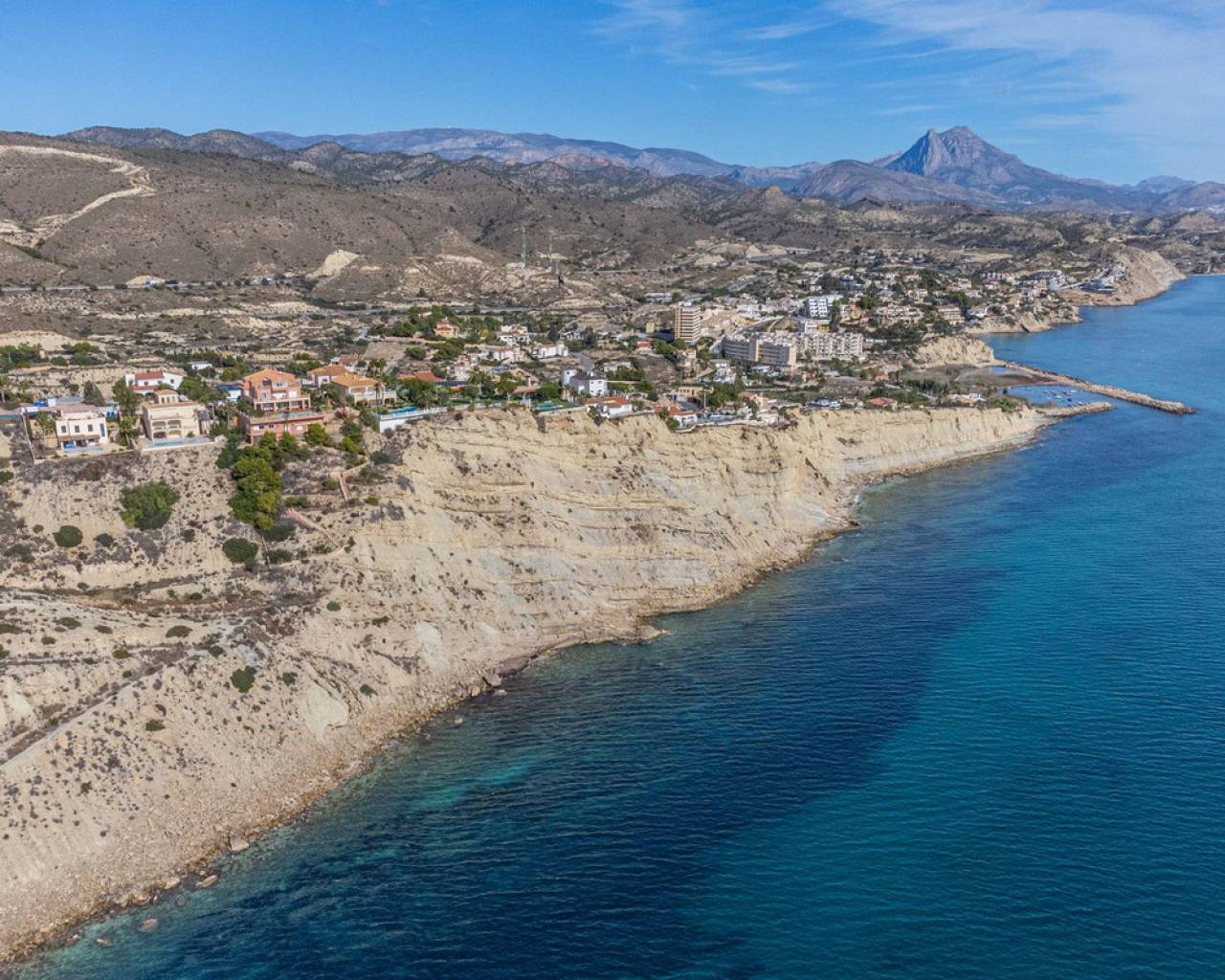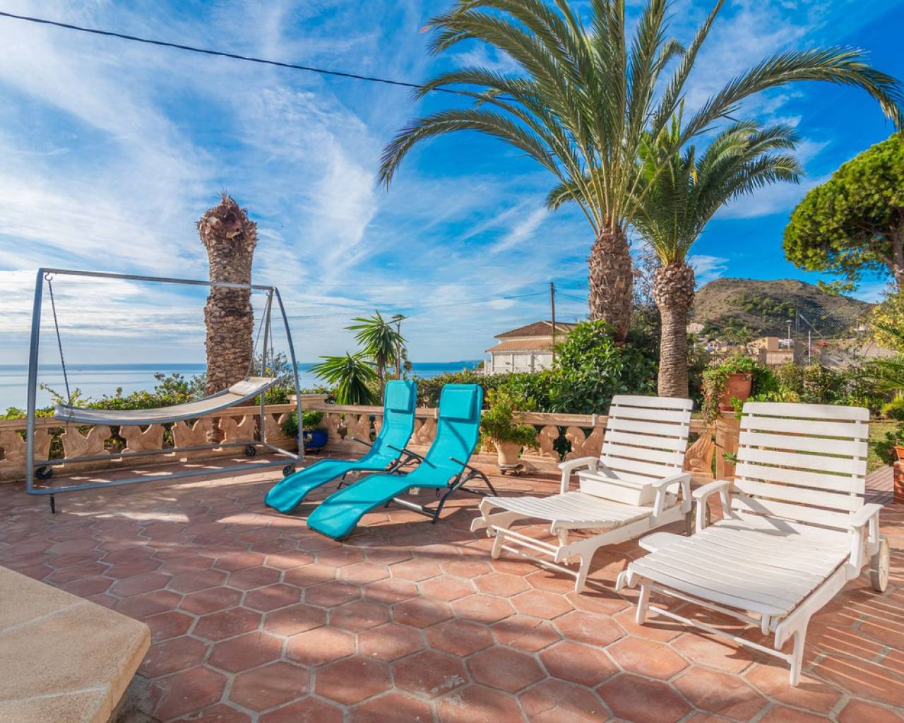 In Virgen de la Merced, Campello North, lies this espectacular hilltop estate with commanding views of the mediterranean and coastline to both the north an to the South. Villa Passiflora is 20km from Alicante to the north, 20 km from Finestrat and just 27 minutes away from Alicante international airport. The villa is just 1 km away from a sandy cove "Cala baeza" and only 9 minutes from El Campello Marina and Playa Carrer la Mar, 15 km to nearest golf course. Villa Passiflora is unique in its wonderful design, its hilltop location and setting, the 2300m2 of flat land with room for a tennis court or another villa and the complete privacy that it offers its owners. The property is accessed from a one way residencial road easily accessed from the N332 and entry to the property and parking is via an automated gate. The property is built on 3 levels: Entry level is comprised of 5 areas. The lounge, dining area, kitchen and main bedroom all are generous areas with high ceilings and the lounge and the dining area are separated by a fireplace. The master bedroom has an inset bath and there is an en-suite shower room. Separate toilet also on this level. Large open and glazed-in terraced areas accessed from the lounge. Views of the swimming pool and the sea from this level. Upper level: Hall, 2 bedrooms and a good-sized bathroom with his and her's wash basin. Breathtaking views from this level. Bottom floor: Open plan lounge-kitchen-dining area, double bedroom, good-sized bedroom and leisure room. 2 bathrooms on this level one with a shower and the other with a bath and shower. Garage and store room. Exteriors: Large plot with gardens, terraces and 56m2 swimming pool. Space for a tenis court or further construction posibilites. The property boasts all orientations, but the lounge terraces and pool are south-facing. Ideal for a large familly or those who require or enjoy interior and exterior space and wonderful panoramic sea views. Exclusively available with López and Henderson