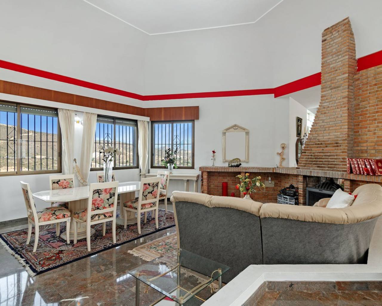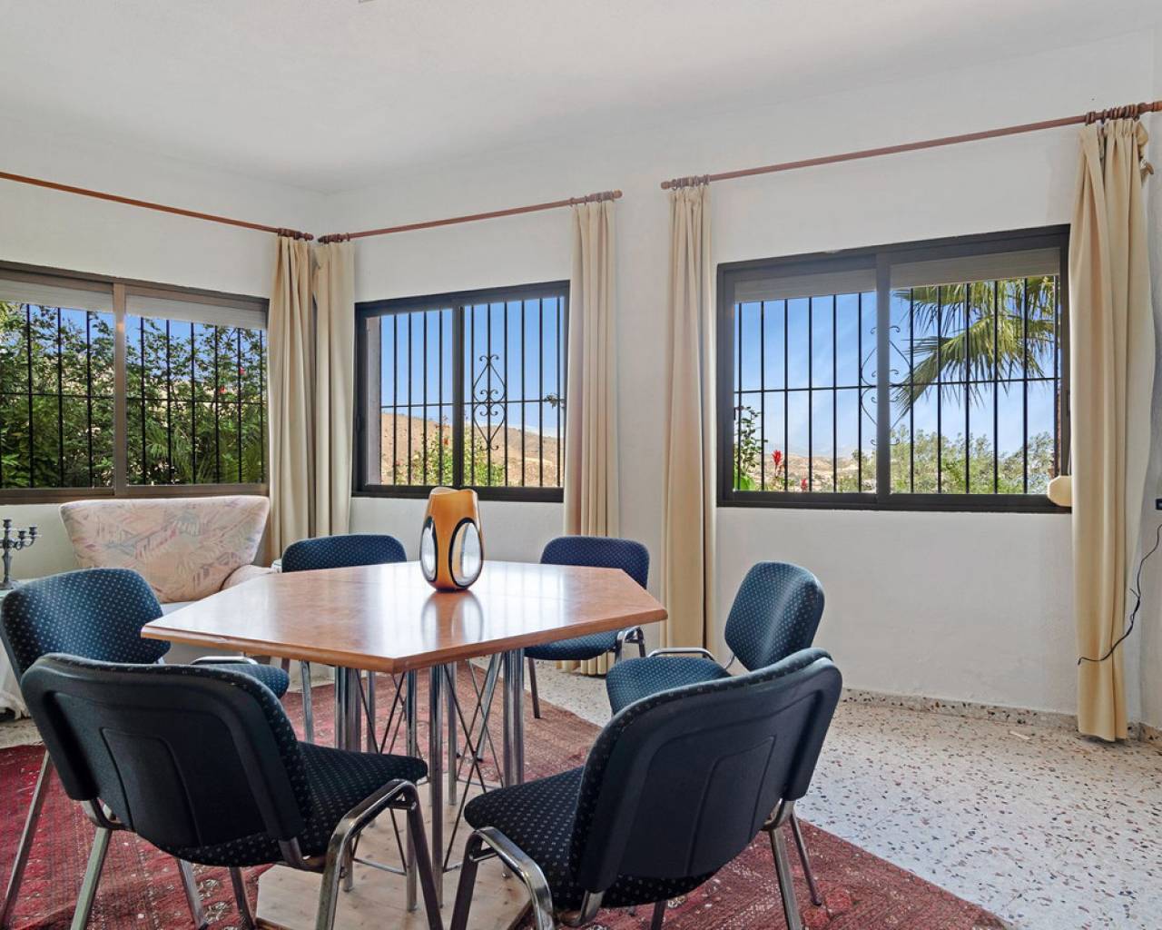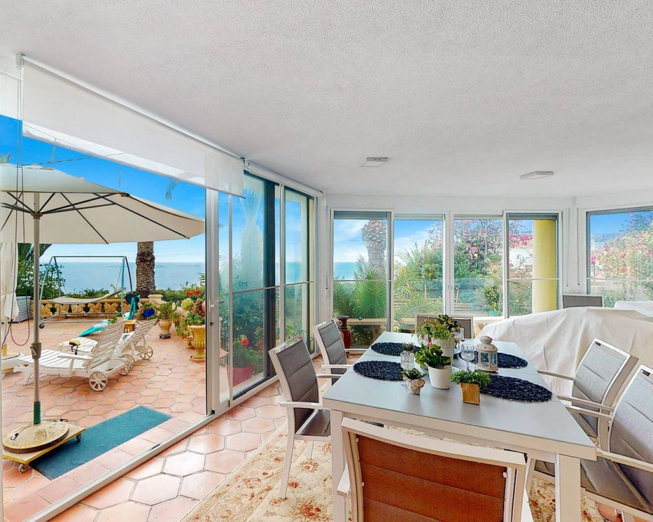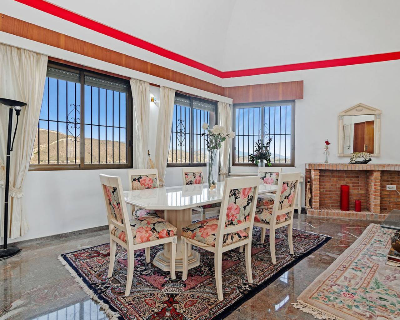 In Virgen de la Merced, Campello North, lies this espectacular hilltop estate with commanding views of the mediterranean and coastline to both the north an to the South. Villa Passiflora is 20km from Alicante to the north, 20 km from Finestrat and just 27 minutes away from Alicante international airport. The villa is just 1 km away from a sandy cove "Cala baeza" and only 9 minutes from El Campello Marina and Playa Carrer la Mar, 15 km to nearest golf course. Villa Passiflora is unique in its wonderful design, its hilltop location and setting, the 2300m2 of flat land with room for a tennis court or another villa and the complete privacy that it offers its owners. The property is accessed from a one way residencial road easily accessed from the N332 and entry to the property and parking is via an automated gate. The property is built on 3 levels: Entry level is comprised of 5 areas. The lounge, dining area, kitchen and main bedroom all are generous areas with high ceilings and the lounge and the dining area are separated by a fireplace. The master bedroom has an inset bath and there is an en-suite shower room. Separate toilet also on this level. Large open and glazed-in terraced areas accessed from the lounge. Views of the swimming pool and the sea from this level. Upper level: Hall, 2 bedrooms and a good-sized bathroom with his and her's wash basin. Breathtaking views from this level. Bottom floor: Open plan lounge-kitchen-dining area, double bedroom, good-sized bedroom and leisure room. 2 bathrooms on this level one with a shower and the other with a bath and shower. Garage and store room. Exteriors: Large plot with gardens, terraces and 56m2 swimming pool. Space for a tenis court or further construction posibilites. The property boasts all orientations, but the lounge terraces and pool are south-facing. Ideal for a large familly or those who require or enjoy interior and exterior space and wonderful panoramic sea views. Exclusively available with López and Henderson