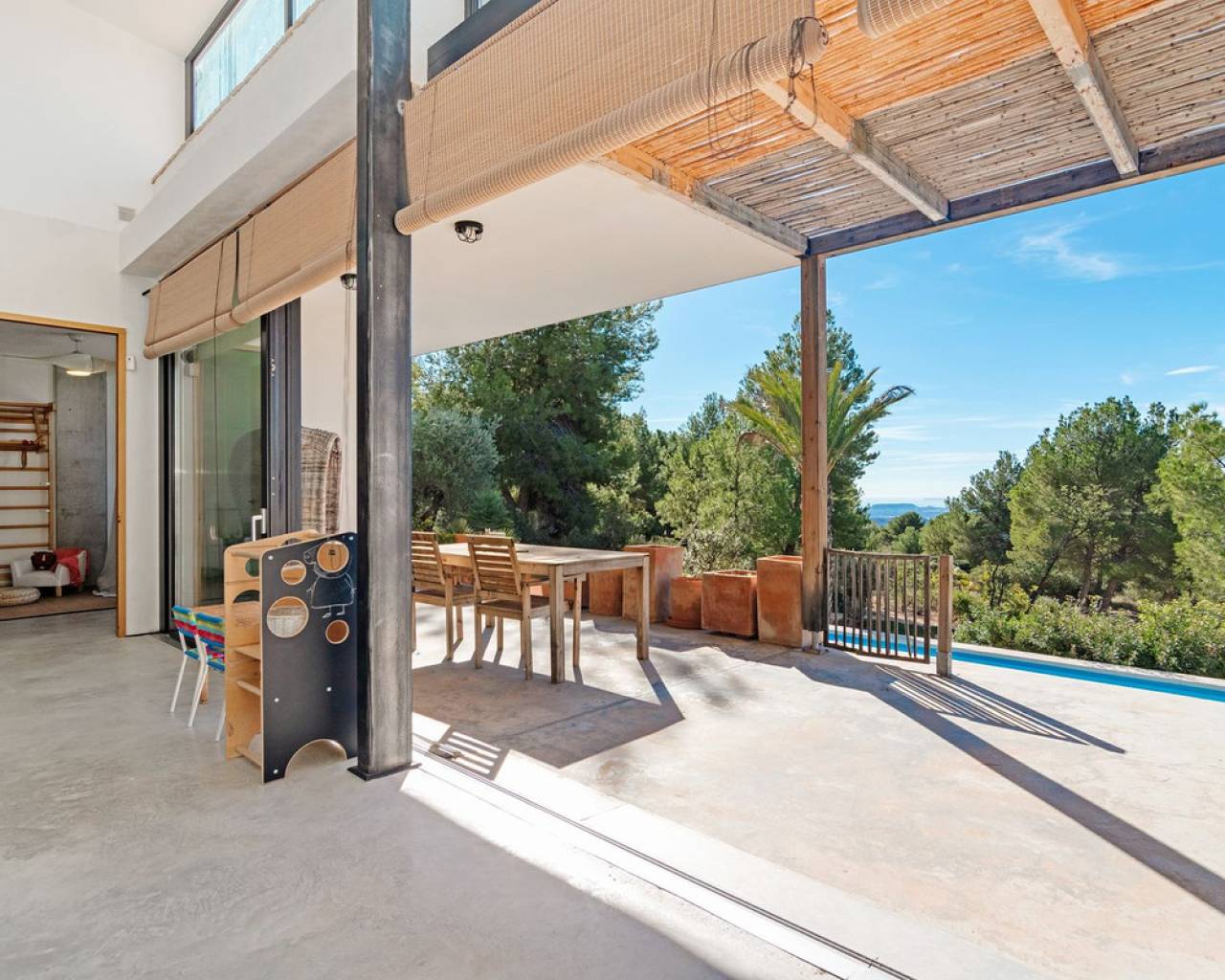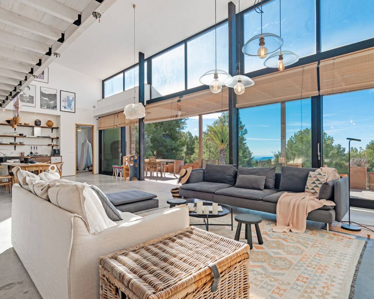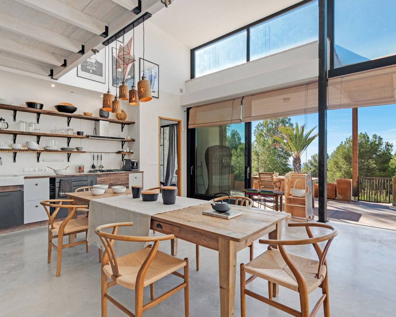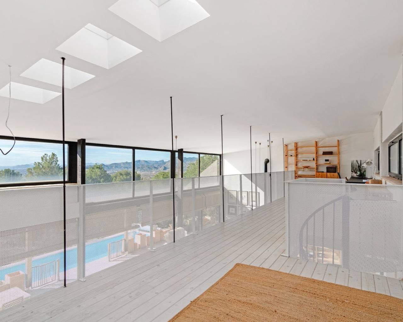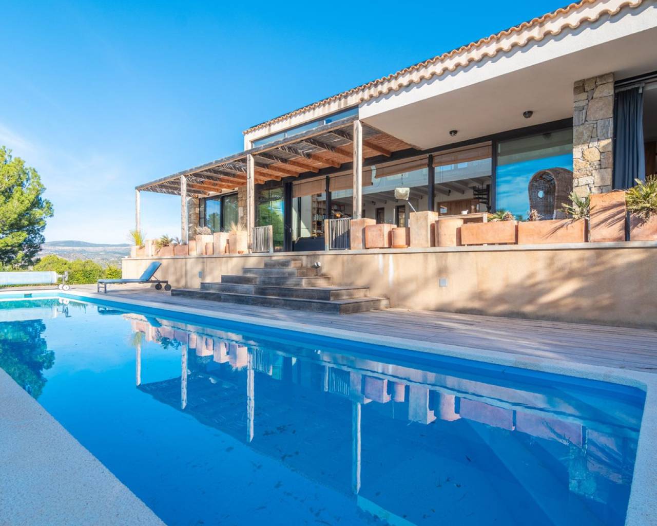 Now fully legalized and ready for sale, this remarkable property in the sought-after area of Cuevas de Canelobre in Busot offers complete peace of mind and an exceptional lifestyle. Located at the foot of the Cabeza D'or mountain, this impressive, contemporary residence spans over 250 m² on a private plot of more than 21,000 m². In an enviable natural setting, Villa Natura is just five minutes from the village of Busot, 15 minutes from the beaches of El Campello-San Juan, and 25–30 minutes from Alicante and its international airport. Inspired by New York architectural trends, the interior exudes modernity through its bright, open-plan design. With panoramic mountain views and the Mediterranean Sea in the distance, the villa offers absolute privacy and harmony with its natural surroundings. The open-plan, loft-style layout features high double ceilings, glass walls, and carefully curated décor. The lounge–kitchen–dining area opens onto a landscaped garden with a saltwater swimming pool and pine-filled horizon. Accessed via a country road with an automated gate, the estate includes a gravel drive bordered by Mediterranean flora and parking for several cars. The ground floor comprises a spacious living area, master bedroom with en-suite and dressing room, two additional bedrooms with shared "Jack and Jill" bathroom, while the upper floor offers a lounge-workspace, bedroom, and bathroom with panoramic views. Outdoors, a covered terrace for al-fresco dining adjoins the main living area, leading to a 100 m² loft lounge with a 46 m² solar-heated, saltwater pool. The 21,400 m² of landscaped grounds feature pines, fruit trees, and Mediterranean shrubs, creating a feast for the senses. Technical highlights: solar power with battery storage, underfloor heating, air conditioning (hot/cold), double-glazed windows, gas tank, and backup generator. A unique opportunity to acquire a fully legalized, state-of-the-art residence that perfectly combines avant-garde design, comfort, and natural beauty — an ideal retreat or family home.