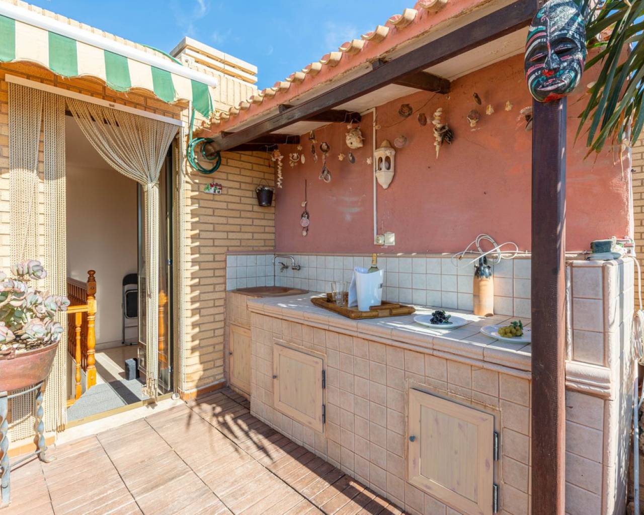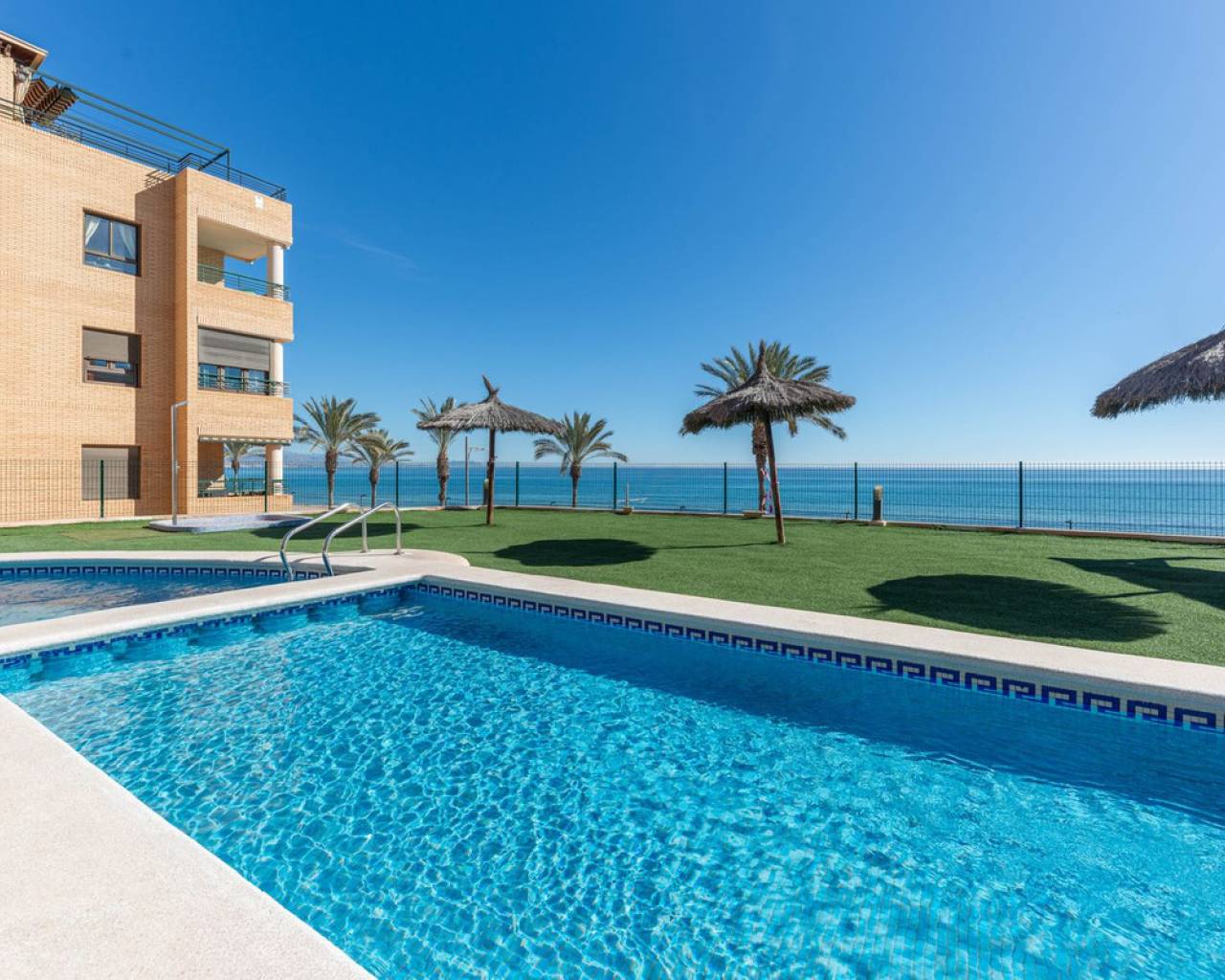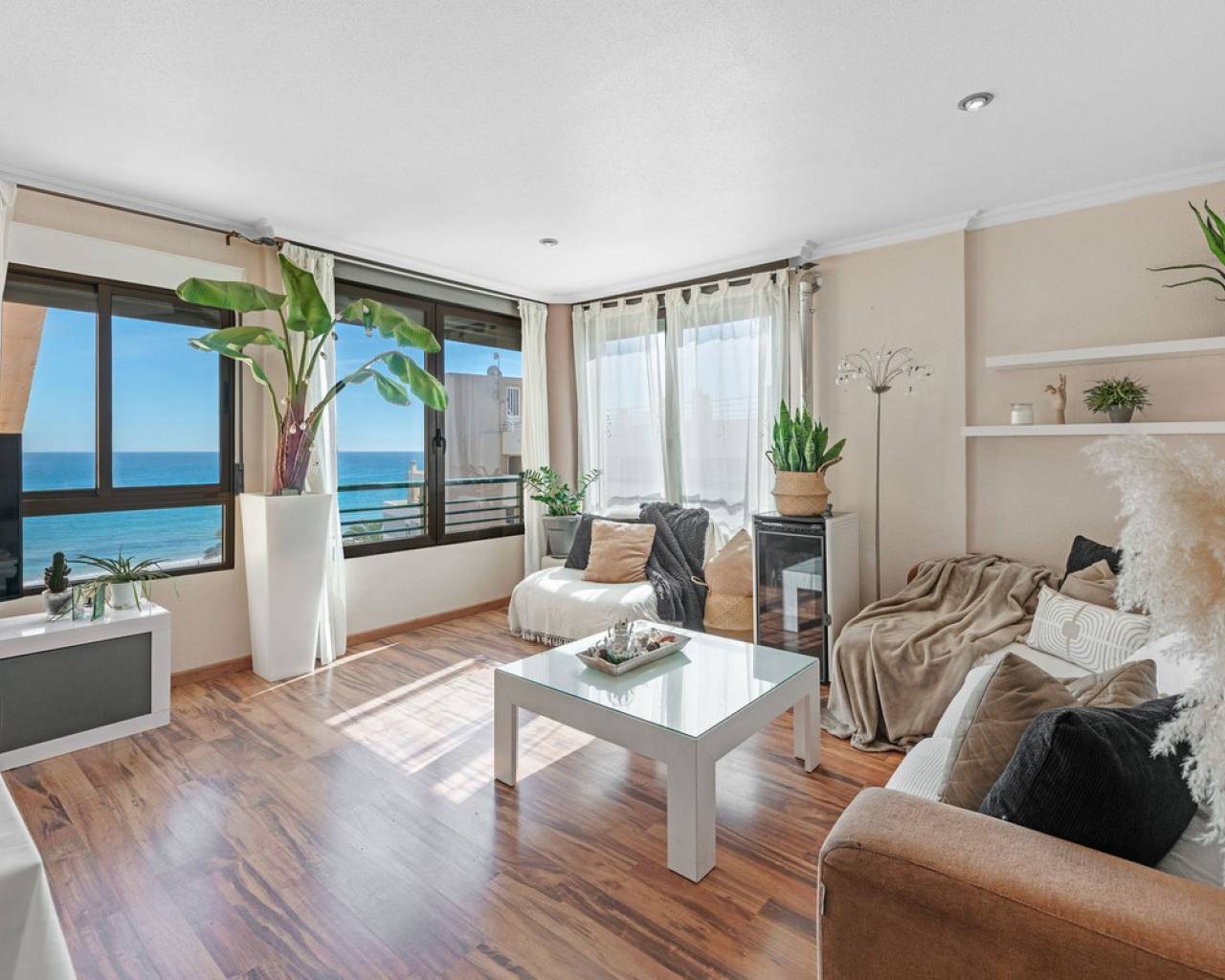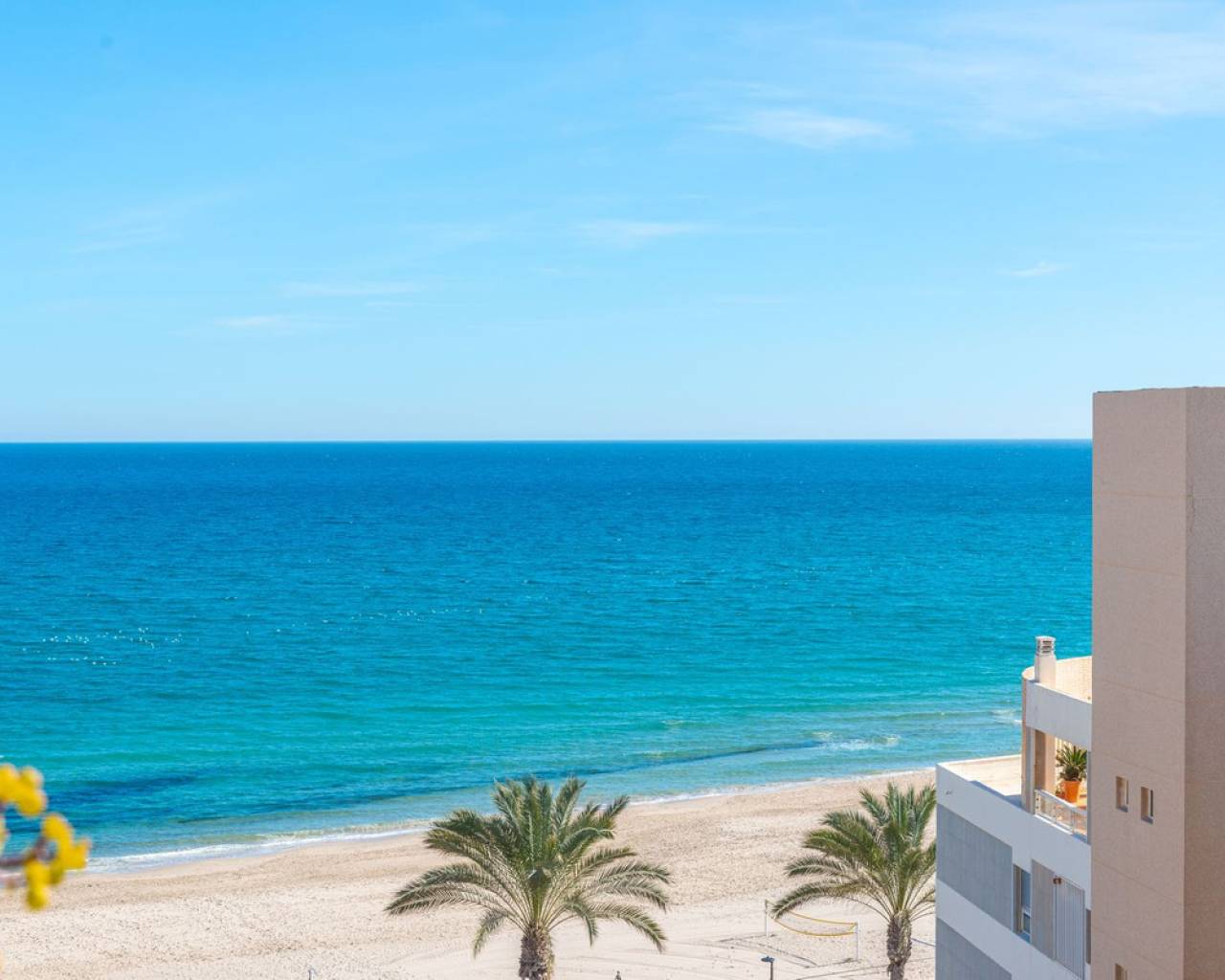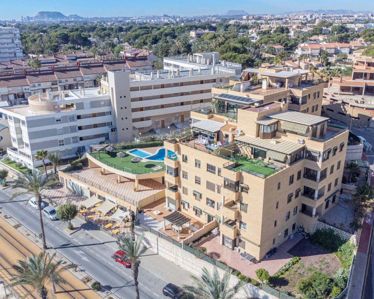 This stunning 3-bedroom penthouse is located on the spectacular Muchavista Beach, just 20 minutes from Alicante city and 5 minutes from the center of El Campello. It is within walking distance of the tram and bus stops, close to all amenities, schools, and motorway connections, and only a 25-minute drive from El Altet International Airport. This south-facing penthouse boasts a prime beachfront location and spacious 3-bedroom accommodation. Its large open-plan design, incredible private outdoor space, breathtaking views, and idyllic sun terrace—accessible from within the apartment—make it a truly unique find. Access to the penthouse is via a residential street leading to an automated gate, which opens to the beachfront complex. The property is situated on an upper floor, accessible by elevator. This exceptional top-floor apartment features 3 bedrooms, an independent family shower room, and a separate toilet near the entrance hallway. The spacious open-plan living, dining, and kitchen area enjoys extraordinary sea views. The lounge benefits from a double aspect, making the entire space bright and airy, yet at the same time, cozy and inviting. The stylish white kitchen is fully equipped and offers stunning views of the northern coastline and the Mediterranean. A staircase from the hallway leads up to the rooftop terrace, which features an outdoor kitchen area and a structure for awnings, providing shade—perfect for relaxing, entertaining, and unwinding with the sea as a constant backdrop. The residence offers a swimming pool and a garden area right in front of the beach, a true luxury. An underground garage within the residence is included in this offer. This penthouse is ideal for a family in search of something truly exceptional.