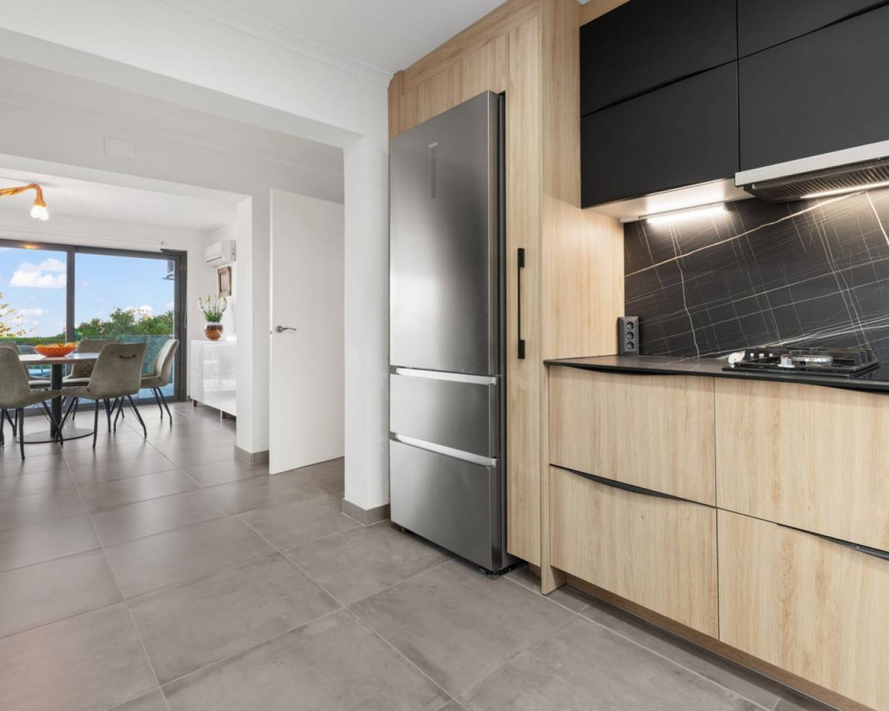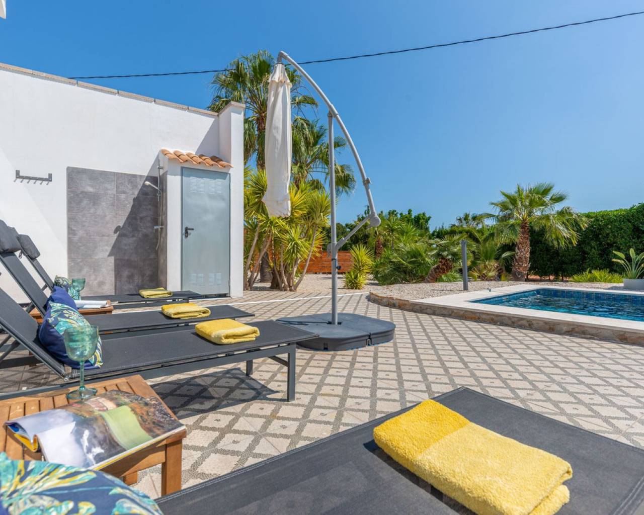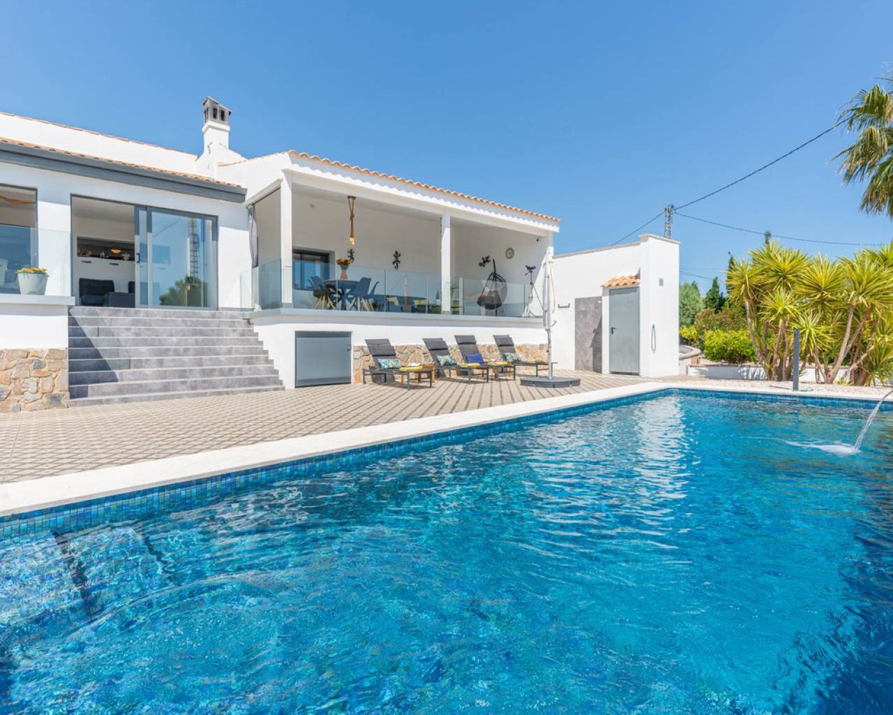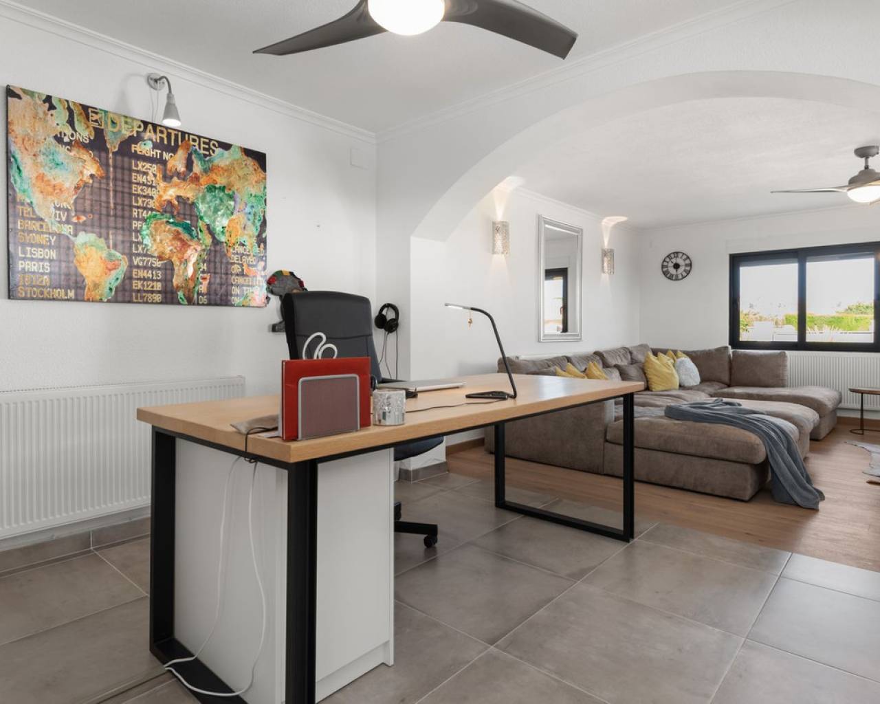 Villa Mirador del Sol – A Private Retreat with Coastal Views in Pla Lloma, Busot Set in the highly desirable Pla Lloma area near the charming village of Busot, Villa Mirador del Sol is a beautifully refurbished residence that offers the perfect blend of privacy, elegance, and Mediterranean living. With over 250 m² of interior space and nestled on a plot more than eight times its footprint, this exceptional home provides a rare opportunity to enjoy tranquil surroundings just a short distance from the coast. Ideally located, the villa is only 4 minutes from the heart of Busot, 20 minutes from the golden beaches of El Campello and San Juan, and just 30–35 minutes from Alicante city and its international airport. Entrance and Grounds A quiet cul-de-sac leads to the property's automated entrance gates, which open onto a generous gravel driveway with access to a private garage and two covered carports, one of which is tall enough to accommodate a motorhome. Design and Layout The villa offers flexible and spacious accommodation across two levels: Main Floor • Elegant L-shaped kitchen fully equipped. Generously sized workspace, connected to a bright open-plan lounge area featuring a wood-burning stove. • Adjacent dining area with direct access to two sun-drenched terraces totaling 42 m², both offering spectacular coastal and countryside views. • Two double bedrooms with built-in wardrobes, including a master suite with en-suite shower room. • A second modern bathroom is located near the second bedroom and hallway. Lower Floor – Guest Accommodation * Independent entrance * Open-plan lounge and bedroom area * Additional double bedroom with built-in wardrobes * Shared bathroom located between the two sleeping areas * Outdoor BBQ kitchen area opposite private guest quarters. * Ideal for guests or extended family Exteriors and Amenities • A brand-new designer swimming pool with a stainless steel waterfall feature serves as the centerpiece of the garden. • Expansive terraced areas surround the pool, perfect for lounging or entertaining. • A private sauna and outdoor exercise zone are located nearby for wellness and relaxation. • Beautifully landscaped plot with graveled areas, mature Mediterranean trees, shrubs, and hedges. • Approx. 750 m² of garden space. • An outdoor bathroom next to covered BBQ area, ideal for al fresco dining. Orientation and Ambience: The villa enjoys a south-westerly orientation, maximizing natural light and offering breathtaking sunset views over the hills as well as towards the distant coastline.