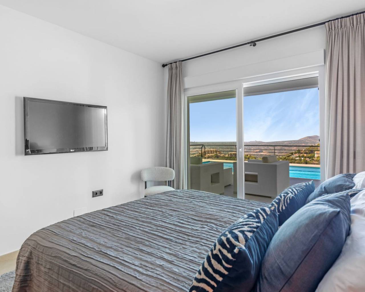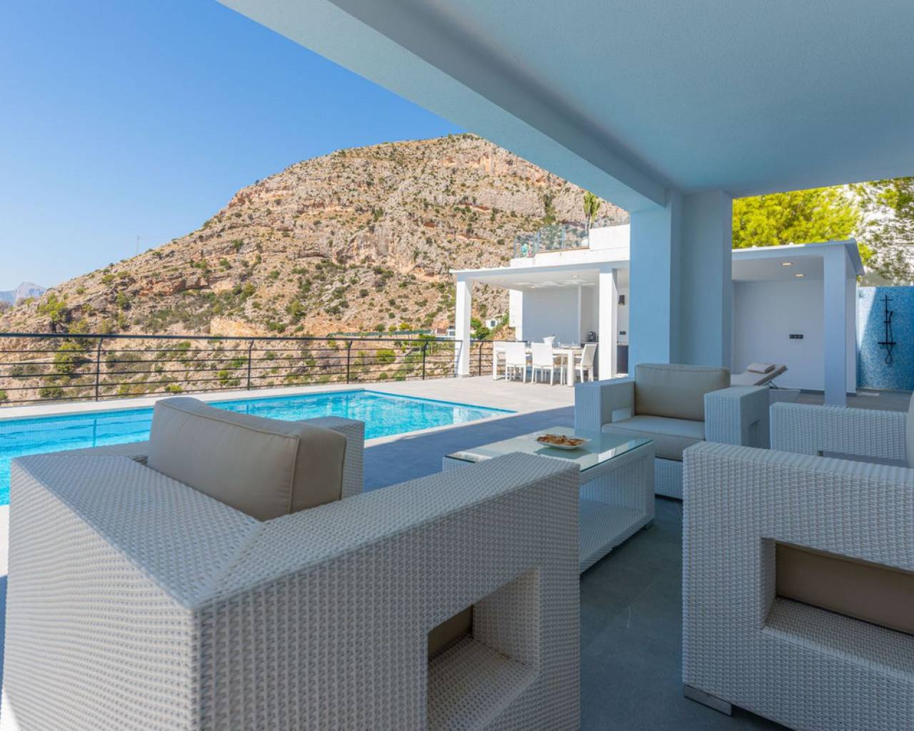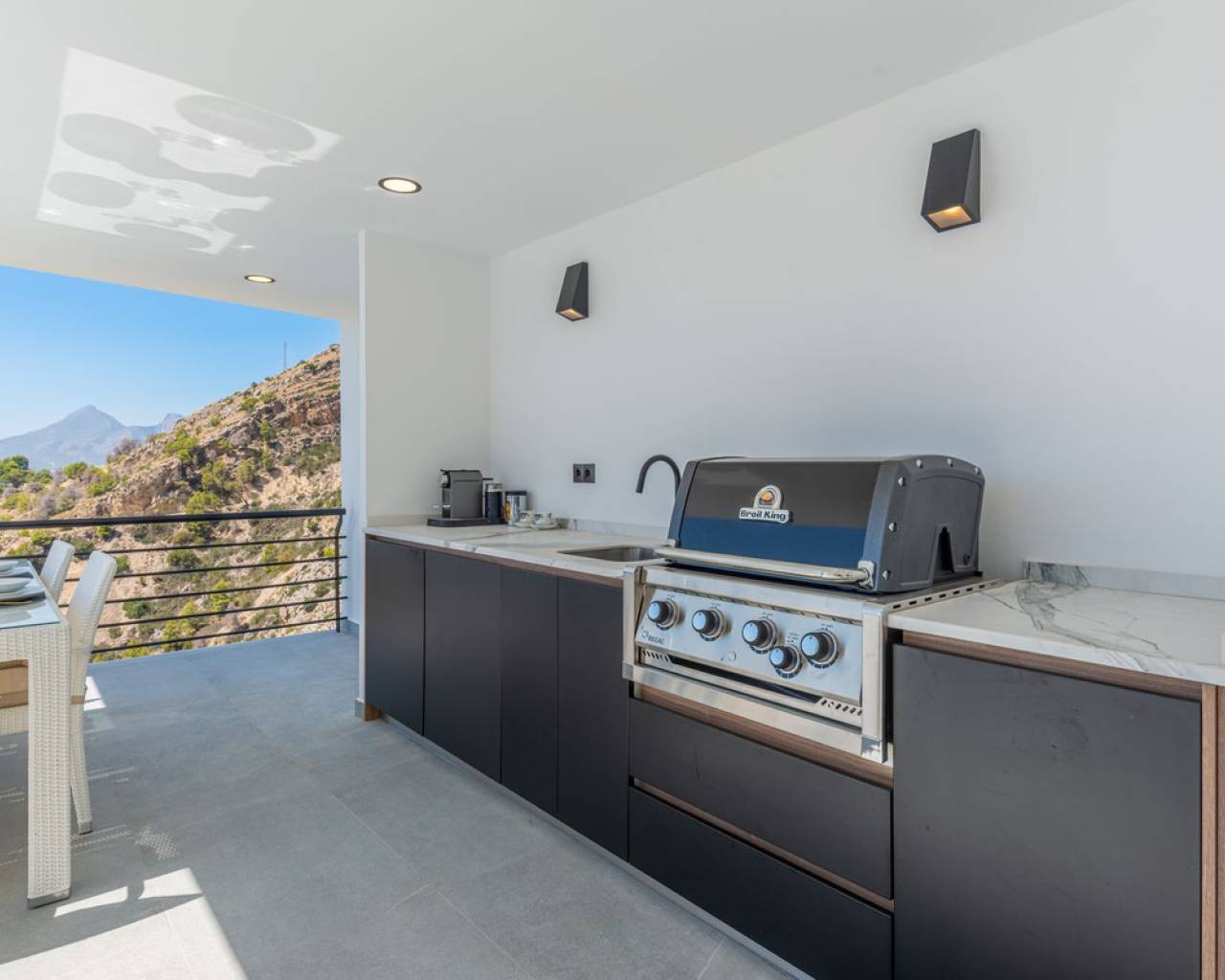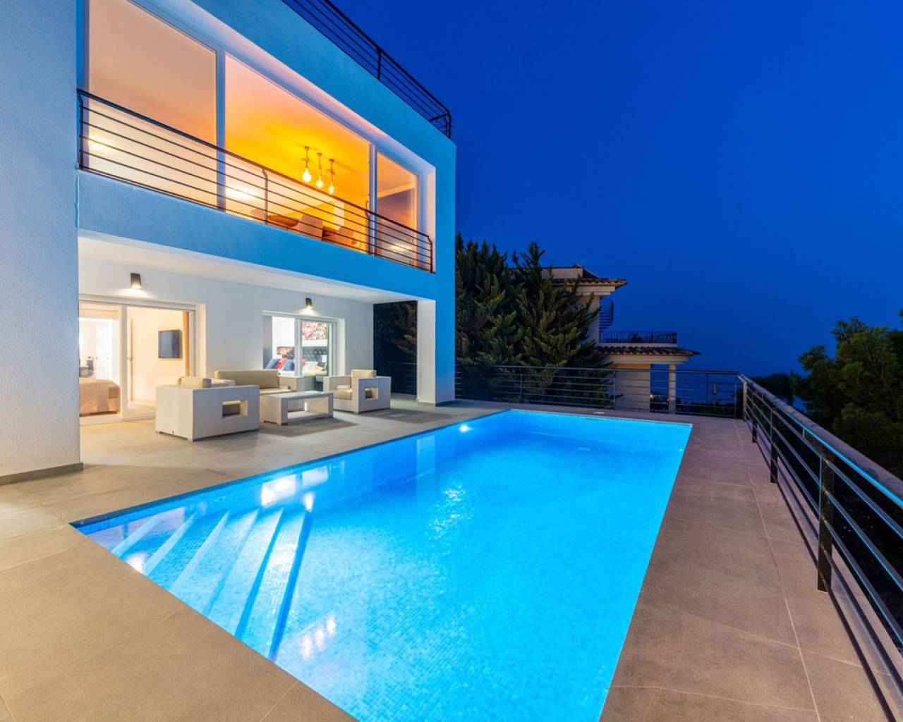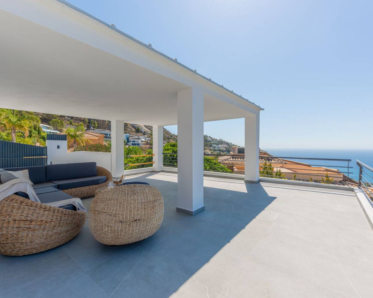 CONTEMPORARY VILLA WITH PANORAMIC VIEWS IN ALTEA HILLS This exceptional villa in Altea Hills has been completely refurbished and extended to the highest standards, presenting itself in immaculate condition both inside and out. Every detail has been thoughtfully designed to combine modern comfort, refined elegance, and spectacular views over the Bay of Altea, the Mediterranean Sea, and the surrounding mountains. Distributed over three floors, the villa offers generous living spaces filled with natural light. The open-plan living room flows seamlessly into a state-of-the-art kitchen with an island, fully equipped with high-end appliances and designed for both style and functionality. Floor-to-ceiling windows open directly onto expansive terraces, creating a perfect harmony between indoor and outdoor living while framing the stunning sea and mountain views. The property includes several en-suite bedrooms, fitted wardrobes, air conditioning, and contemporary finishes of the highest quality. The outdoor areas have been conceived as a true retreat for leisure and relaxation. Wide terraces and a newly built covered kitchen and dining space by the pool provide the ideal setting for year-round entertaining. The landscaped garden features artificial grass, a trampoline, and a wooden treehouse, making it particularly attractive for families. The private pool blends beautifully with the surrounding scenery, offering a unique vantage point to enjoy the coastline. By day, the panoramas are impressive; by night, the lights of Altea create a magical and exclusive atmosphere. Altea Hills is one of the most prestigious gated communities on the Costa Blanca, renowned for its privacy and 24-hour security. A main barrier with on-site staff carefully monitors access, ensuring residents' peace of mind at all times. This villa perfectly combines luxury, privacy, and security with incomparable Mediterranean views — an impeccable property ideal as a permanent residence or as a holiday home in one of the most exclusive enclaves of the Costa Blanca.