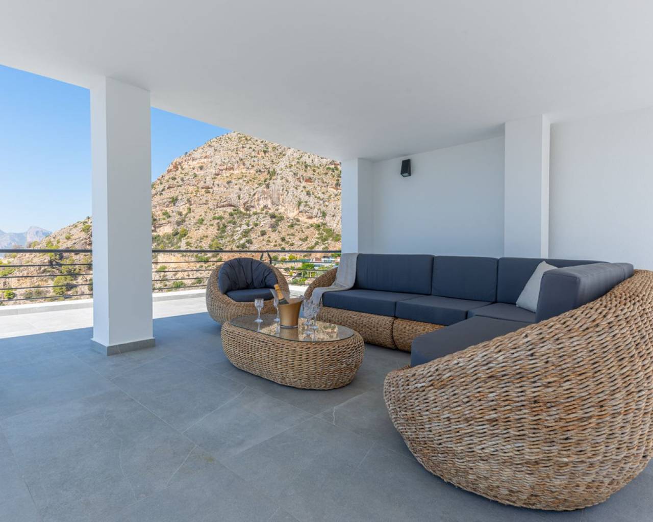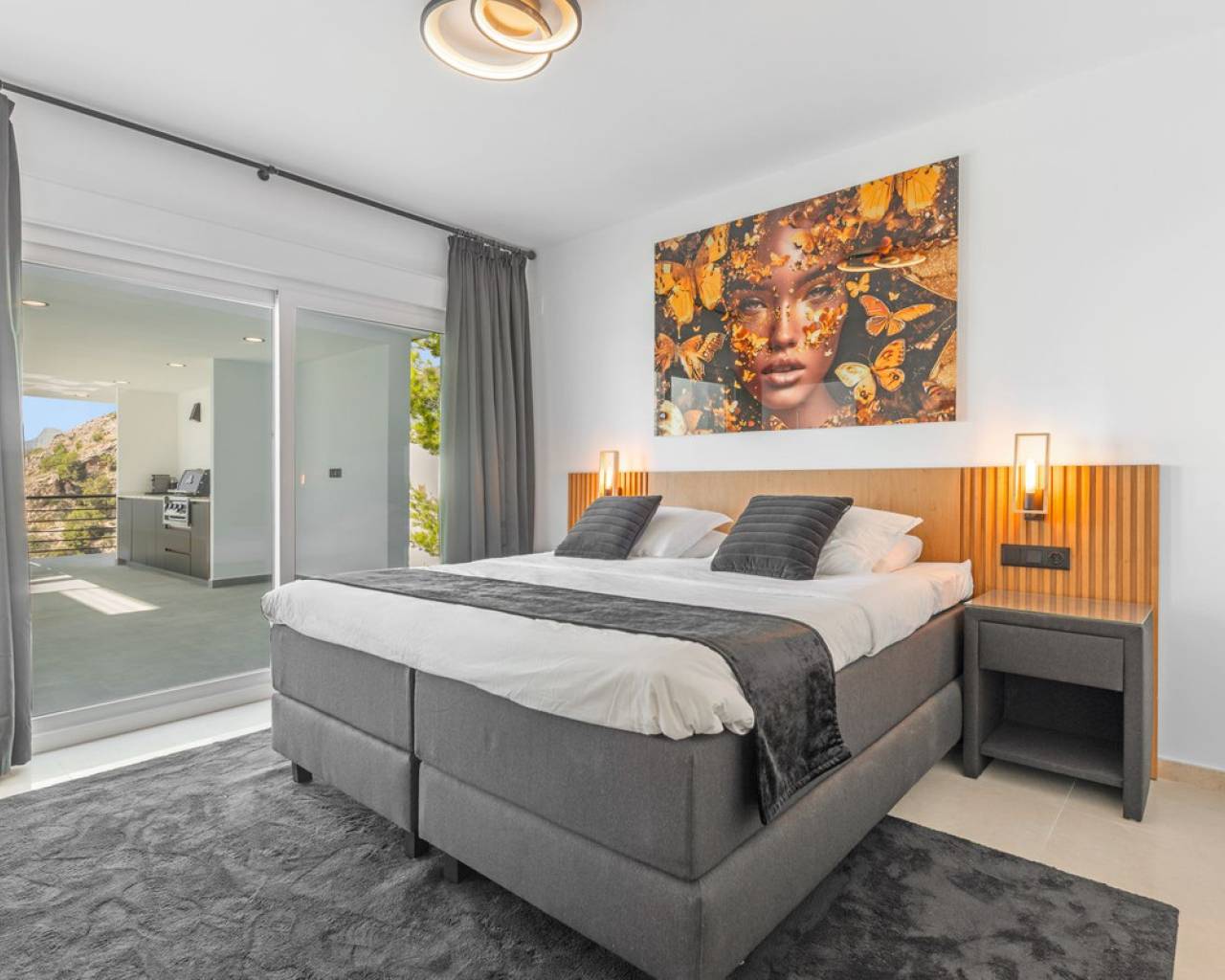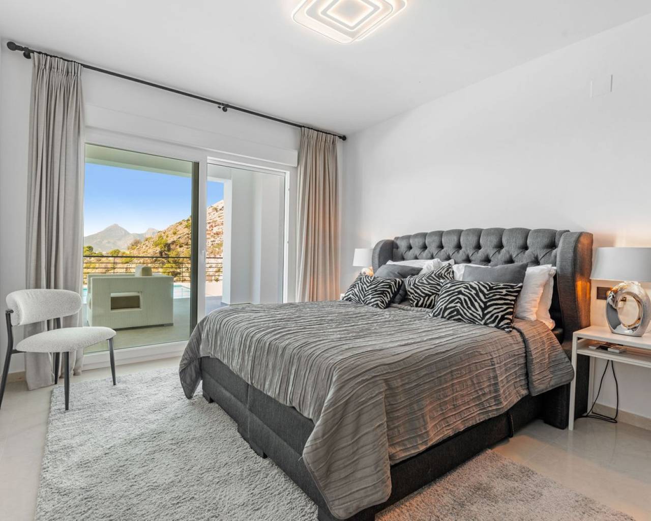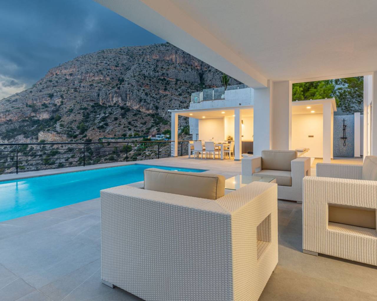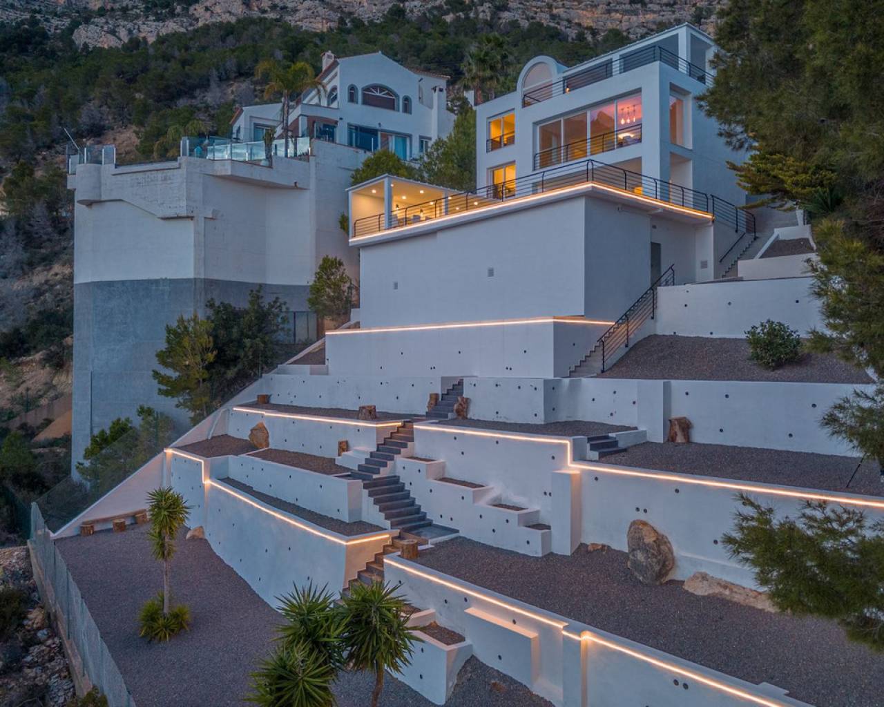 CONTEMPORARY VILLA WITH PANORAMIC VIEWS IN ALTEA HILLS This exceptional villa in Altea Hills has been completely refurbished and extended to the highest standards, presenting itself in immaculate condition both inside and out. Every detail has been thoughtfully designed to combine modern comfort, refined elegance, and spectacular views over the Bay of Altea, the Mediterranean Sea, and the surrounding mountains. Distributed over three floors, the villa offers generous living spaces filled with natural light. The open-plan living room flows seamlessly into a state-of-the-art kitchen with an island, fully equipped with high-end appliances and designed for both style and functionality. Floor-to-ceiling windows open directly onto expansive terraces, creating a perfect harmony between indoor and outdoor living while framing the stunning sea and mountain views. The property includes several en-suite bedrooms, fitted wardrobes, air conditioning, and contemporary finishes of the highest quality. The outdoor areas have been conceived as a true retreat for leisure and relaxation. Wide terraces and a newly built covered kitchen and dining space by the pool provide the ideal setting for year-round entertaining. The landscaped garden features artificial grass, a trampoline, and a wooden treehouse, making it particularly attractive for families. The private pool blends beautifully with the surrounding scenery, offering a unique vantage point to enjoy the coastline. By day, the panoramas are impressive; by night, the lights of Altea create a magical and exclusive atmosphere. Altea Hills is one of the most prestigious gated communities on the Costa Blanca, renowned for its privacy and 24-hour security. A main barrier with on-site staff carefully monitors access, ensuring residents' peace of mind at all times. This villa perfectly combines luxury, privacy, and security with incomparable Mediterranean views — an impeccable property ideal as a permanent residence or as a holiday home in one of the most exclusive enclaves of the Costa Blanca.