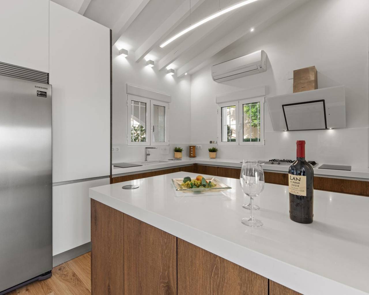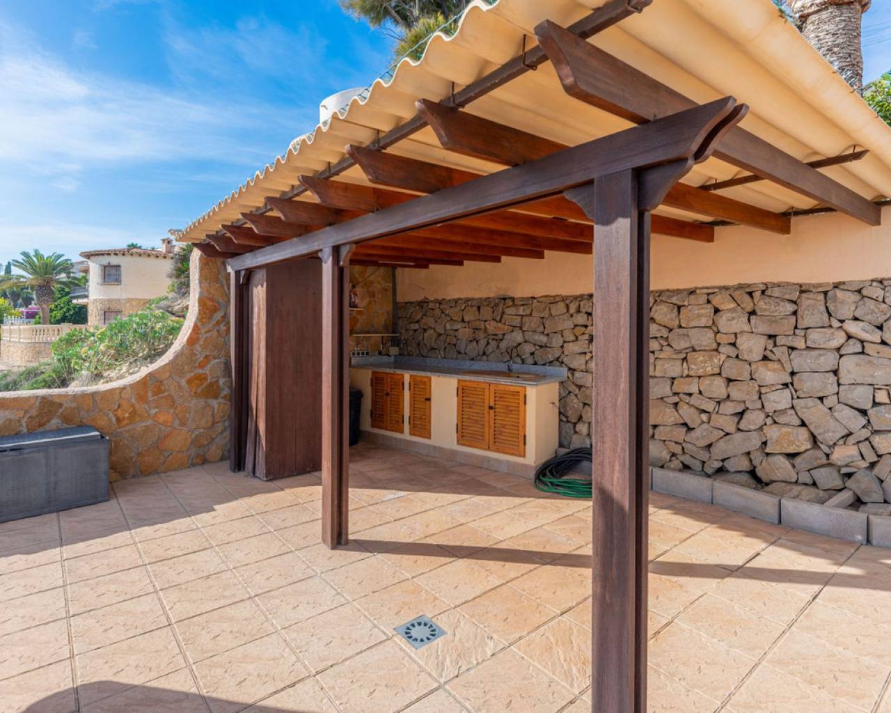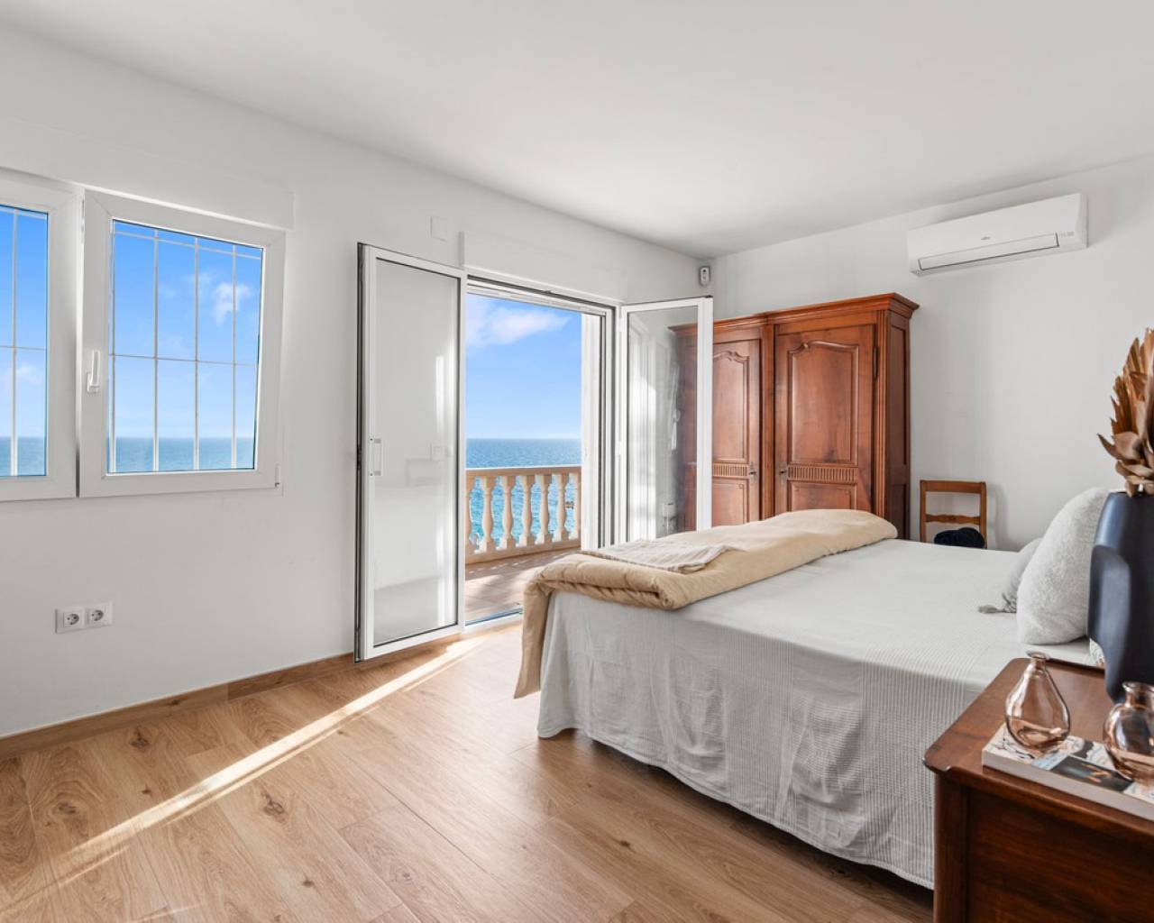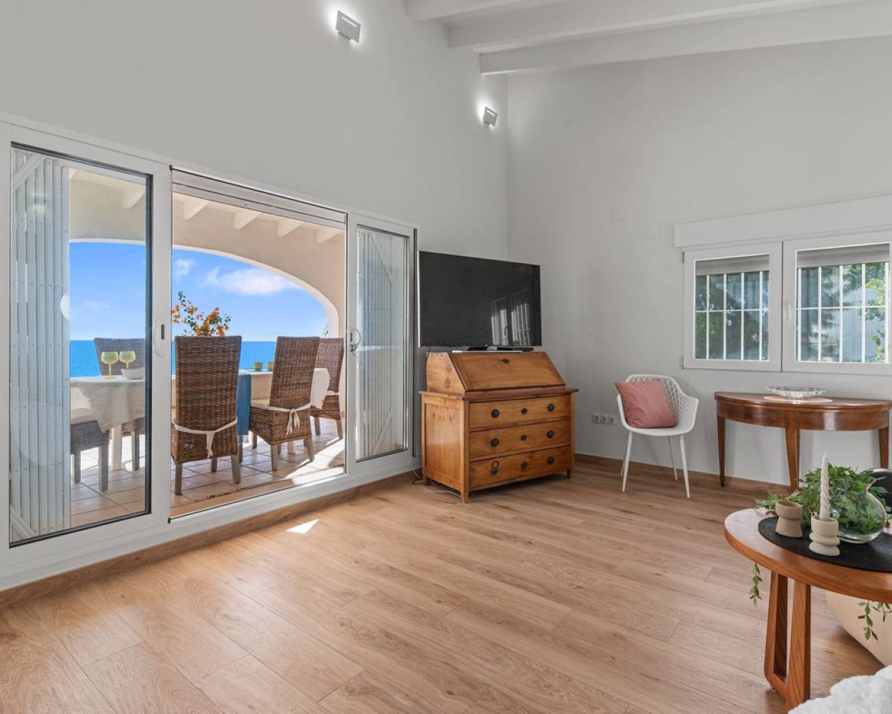 Frontline villa facing the Mediterranean, south facing, with direct access to a quiet cove and close to sandy beaches Just a short tram ride from the charming coastal town of El Campello, with its 7 km Blue Flag sandy beach, welcoming marina and the renowned archaeological site of La Illeta dels Banyets, lies this magnificent four bedroom residence offering breathtaking views of the Mediterranean Sea. Located on an elevated plot above the water in the peaceful residential neighbourhood of Venta Lanuza, the property enjoys exceptional convenience: 500 m from the tram stop (running every 30 minutes to Alicante, El Campello and Benidorm), 500 m from a sandy beach, two restaurants and a wellness centre, 850 m from a cafe grocery store offering fresh bread and pastries, 2.5 km from a medical centre, a pharmacy, a new supermarket open from 8 am to midnight, and several restaurants and shops. Alicante International Airport, the fifth busiest in Spain, is just 30 minutes away, with daily connections to major European cities. The region also enjoys a microclimate considered one of the best in Europe. A privileged and protected setting Access to the villa is via a quiet residential street. Built slightly below road level, the house is completely sheltered from traffic noise and from the inland winds. An automated gate opens onto a driveway leading to a 107 square metre parking area for several vehicles. South facing and originally built in 1985, the villa has been carefully maintained and completely renovated. Set on a private plot of 1,057 square metres, it offers 180 degree panoramic sea views, extending from Alicante northwards. The property also benefits from direct access to a very quiet pebble cove, almost private in nature. Main floor The front door opens into a bright living dining room with an open plan kitchen, where the Mediterranean sea views immediately catch the eye. A large picture window and double glass doors connect the interior with the partially covered terrace outside. The modern, fully equipped kitchen also enjoys the same spectacular views. The staircase to the lower floor is located on this level. Lower floor This level comprises three double bedrooms with fitted wardrobes and two bathrooms with showers, one of which is en suite to the spacious master bedroom. All rooms benefit from views of the sea and the pool, with direct access to the outdoor terrace. Pool level Outside, a 51 square metre pool is surrounded by a 162 square metre terrace ideal for sunbathing. The exterior also includes an outdoor shower, a barbecue area, a landscaped zone with fruit trees and palm trees (204 square metres), a lawn area (65 square metres) and a surrounding terrace (122 square metres). Additional features: PVC windows Electric shutters and security grilles Reinforced security doors (European grade 4) Verisure video alarm system with exterior surveillance cameras Fibre optic internet (new and rare in Venta Lanuza) Split air conditioning units throughout White interior carpentry South facing orientation Direct access to a cove A unique, modernised and private frontline villa in one of the most peaceful areas of El Campello, offering exceptional comfort, security and truly incomparable views.