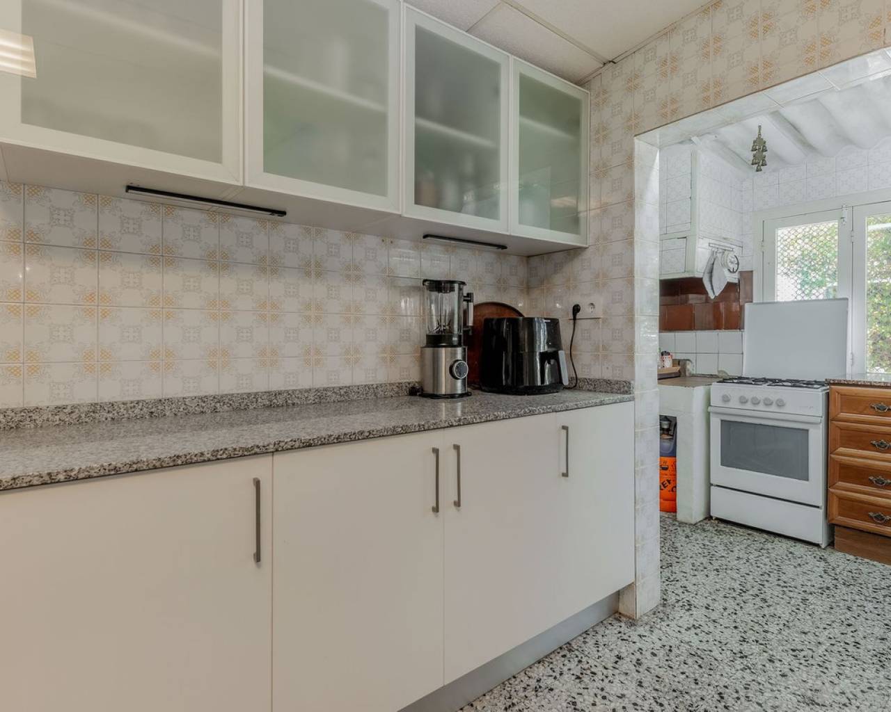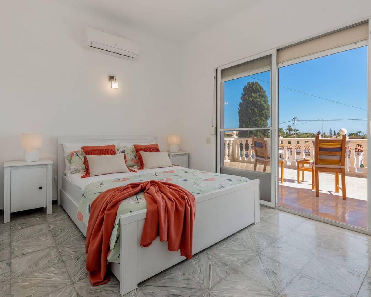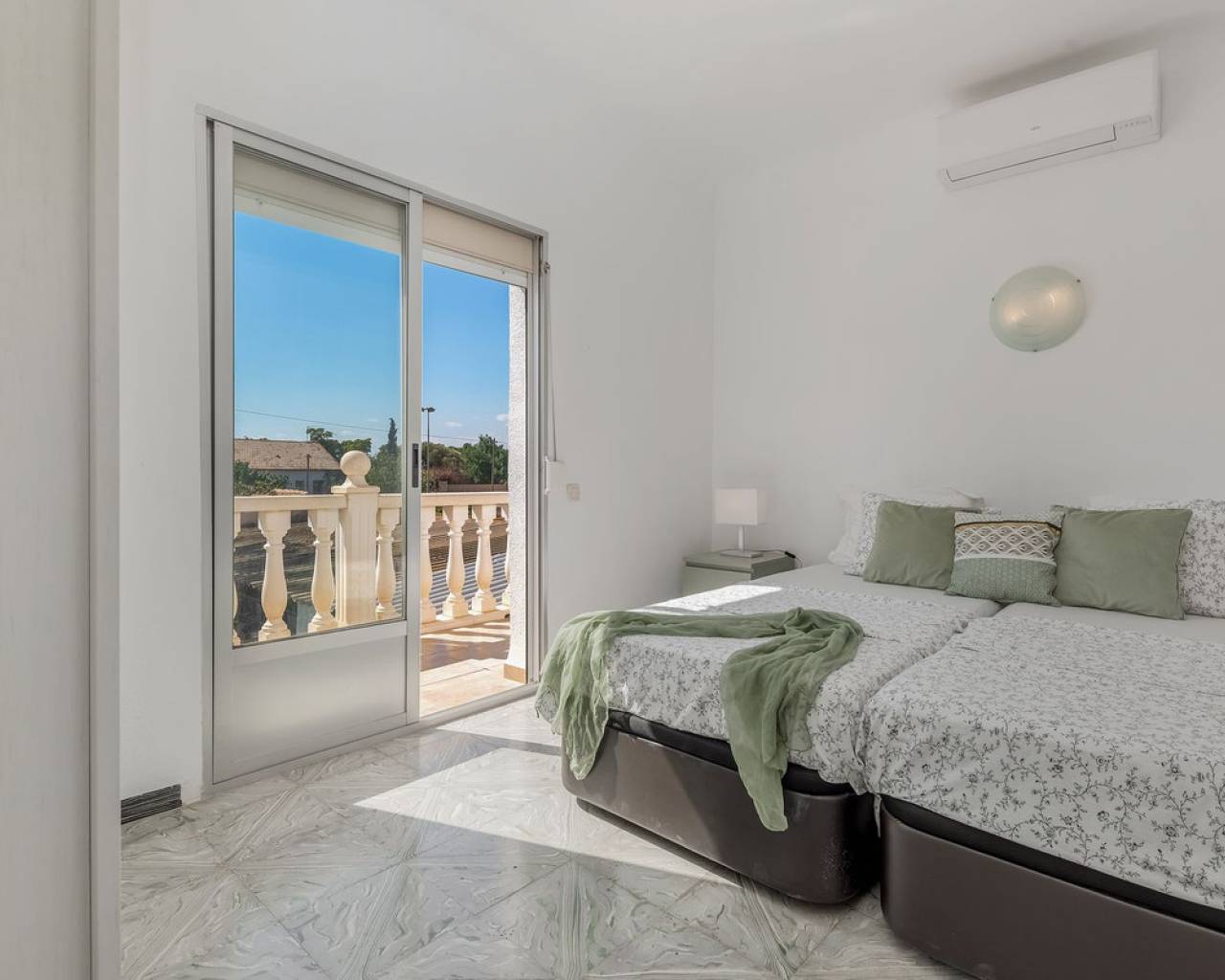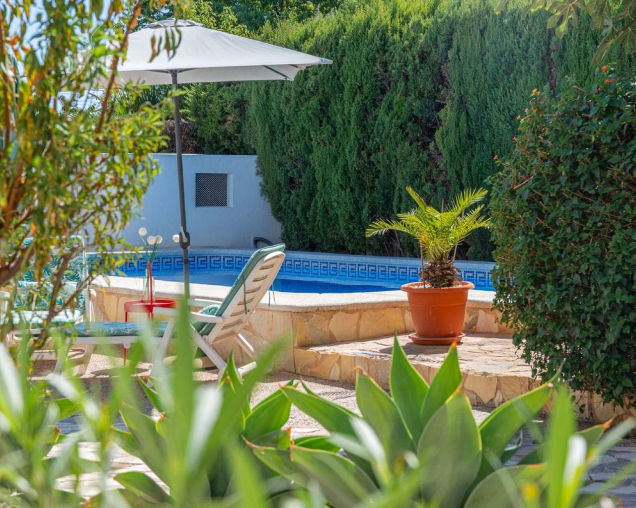 Located in a privileged area near El Campello and San Juan de Alicante, with easy access to the motorway towards Alicante, this villa is only 20 minutes from the city, 25 minutes from the international airport, and just 10 minutes by car from the beaches of El Campello, the Bonalba Golf Course, and the town of San Juan. With its classic Mediterranean style, the villa offers a relaxed and comfortable lifestyle. Built on a completely flat, square and private plot, almost three times the size of the house itself, this 360 m2 residence stands out for its location, privacy, spaciousness, and excellent state of preservation, while retaining all its Mediterranean charm. Thanks to its strategic location, traditional architecture, and excellent maintenance, the villa combines generous interior spaces with an attractive outdoor area featuring a swimming pool, garden, and several areas for relaxation and entertainment, making it a truly unique property. Access The property is situated on a quiet street within a small cluster of houses close to urban areas. Access is via a sliding gate for vehicles leading to a large entrance area and a private covered parking space with capacity for several cars. Main Floor Spacious living dining room with two separate areas, tastefully decorated, featuring a fireplace and direct access to a covered corner terrace with six arches and southeast orientation. Two kitchens, one modern and fully equipped, the other rustic in style. Study with two areas. Full bathroom with shower. Pantry and storage room. Upper Floor Four double bedrooms with built in wardrobes, all with direct access to a terrace. Full bathroom with double washbasin. Panoramic views of the surroundings and the mountains. Basement Storage area of approximately 16 m2, with direct access from inside the house. Exterior Rectangular swimming pool of 35 m2 with Roman steps and a surrounding terrace of 77 m2. Two garden areas with mature trees totalling around 200 m2. Paved area for parking and access of about 126 m2. Most of the plot is finished with terraces and gravel, offering multiple spaces to relax, entertain and enjoy outdoor living, including a charming gazebo and a covered outdoor kitchen barbecue area with a toilet. Features Air conditioning (split units) in all bedrooms and in the main living dining area, which also has an electric radiator. Wood burning cassette fireplace in the main living room. This beautiful Mediterranean villa combines all the ideal features for a comfortable family life all year round, an excellent location, space, privacy, charm, and functionality. A home full of character that you will instantly fall in love with and love even more with each passing day.