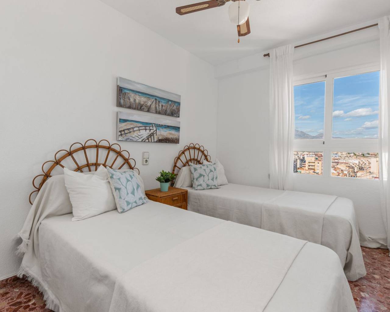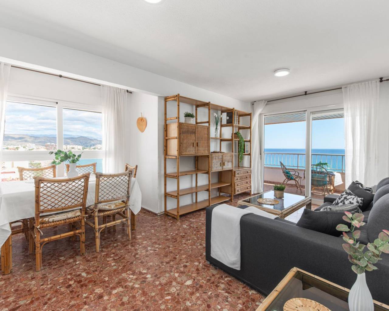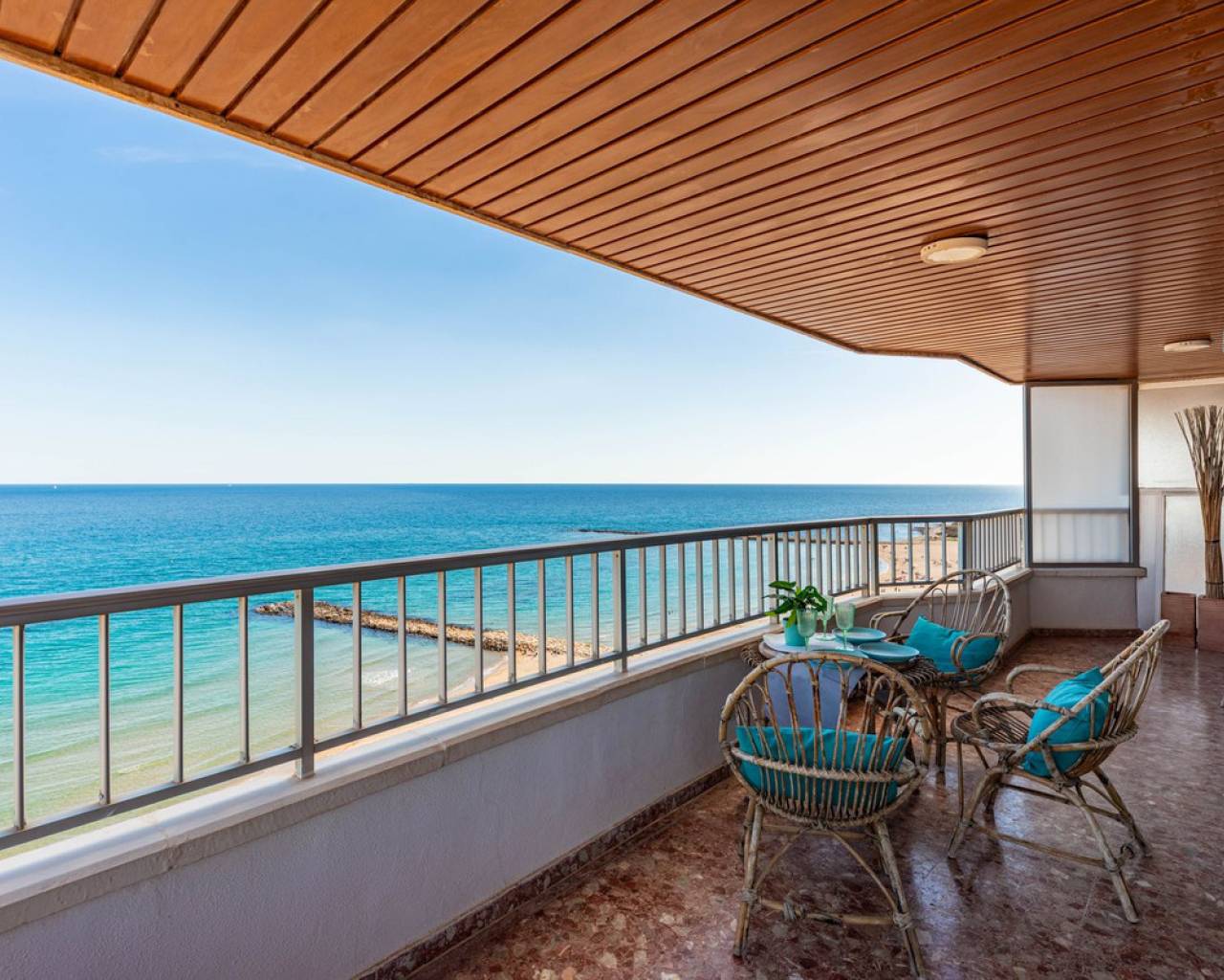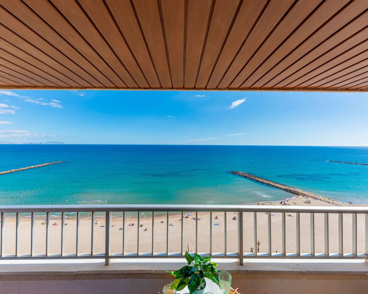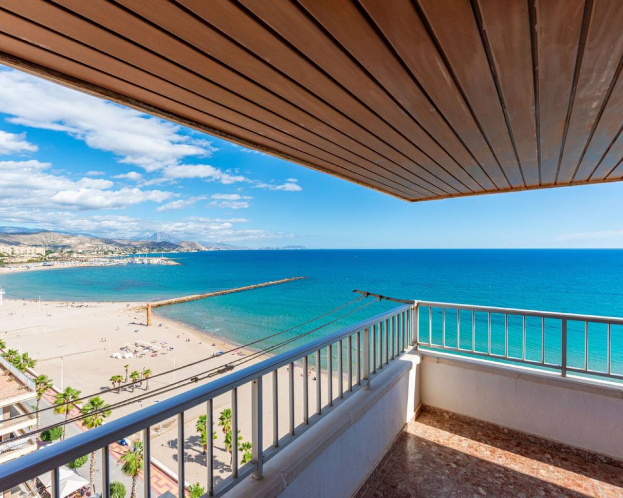Corner penthouse on the beachfront in El Campello (Alicante) In El Campello (Alicante), directly on the beachfront, lies this exclusive three-bedroom corner penthouse with stunning views of the beach and promenade. Its privileged location combines proximity to the sea with the convenience of being in the very heart of El Campello's beach area, with all services, shops, and transport within walking distance. It is just a 15-minute drive from Alicante city, a 5-minute walk from the well-established marina and fish market, 20 minutes by car from the colorful town of Villajoyosa, and 25 minutes from the international airport. This highly sought-after location, together with its spectacular corner terrace and east-facing orientation, makes this penthouse a truly unique offering. The building was constructed in 1979 and has been kept in perfect condition thanks to continuous updates. The staircase where the apartment is located has 12 floors, and this penthouse occupies the top one, offering maximum privacy and tranquility. Upon entering the building, two elevators lead directly to the apartment. The interior includes an entrance hall, a spacious double-aspect living-dining room with direct access to the terrace through double glazed doors, three double bedrooms, and two bathrooms (one with a bathtub and the other with a shower). The independent kitchen, located next to the living room, is complemented by a large adjoining utility room. The covered corner terrace measures more than 17 m² in an L-shape and offers breathtaking views of the sea, mountains, and coastline from the living room, terrace, and two of the bedrooms. This penthouse is ready to move into but also represents the perfect blank canvas for a personalized renovation, offering the opportunity to create the home of your dreams. The kitchen, adjacent to the living room, can easily be integrated into an open-plan design following current layout and décor trends. The building also features a communal parking area. A visit is highly recommended to avoid missing this excellent opportunity to live by the sea in one of El Campello's most desirable locations.